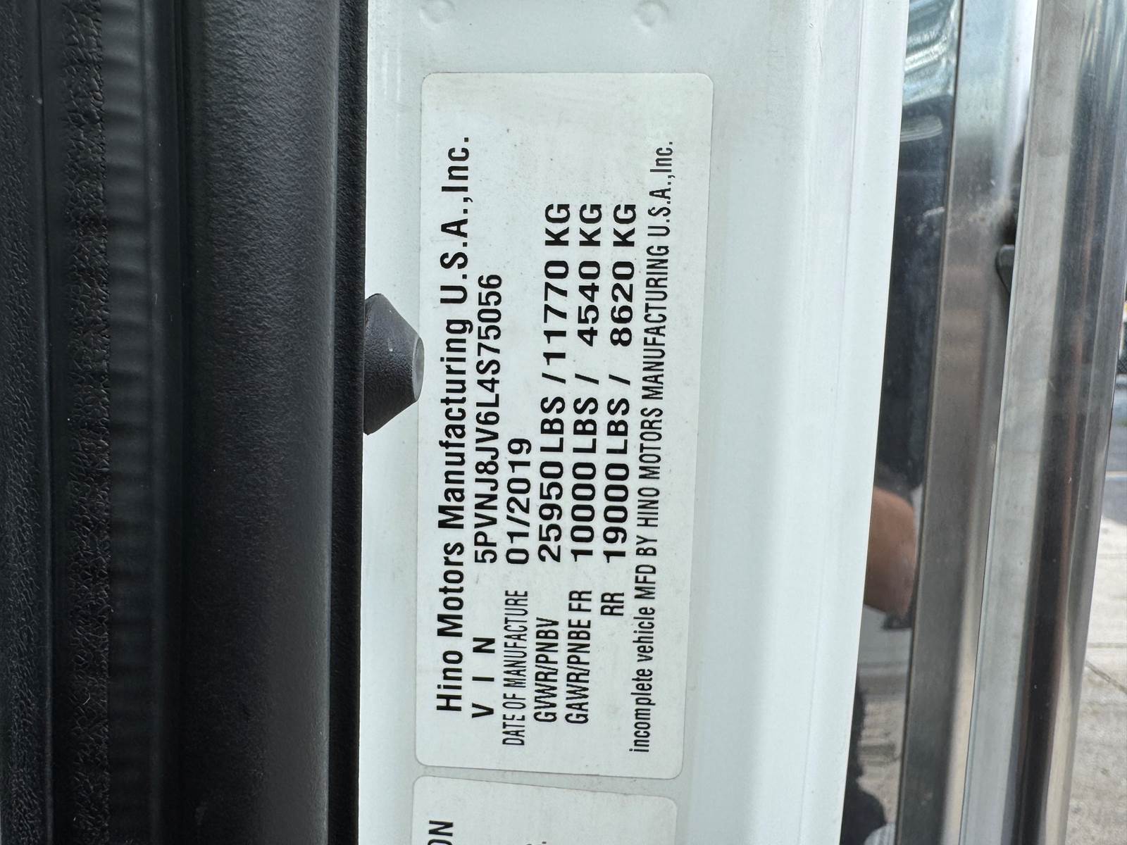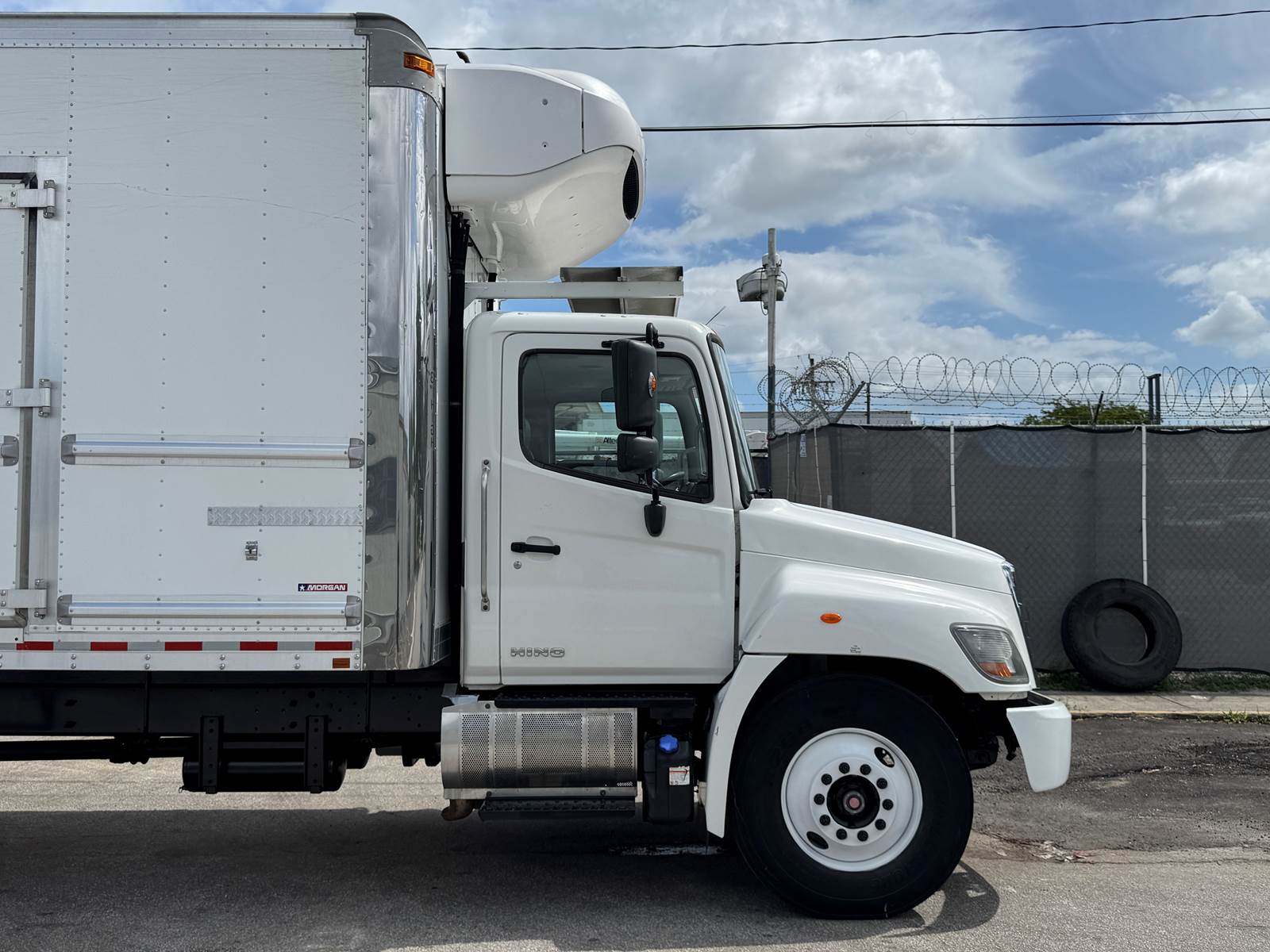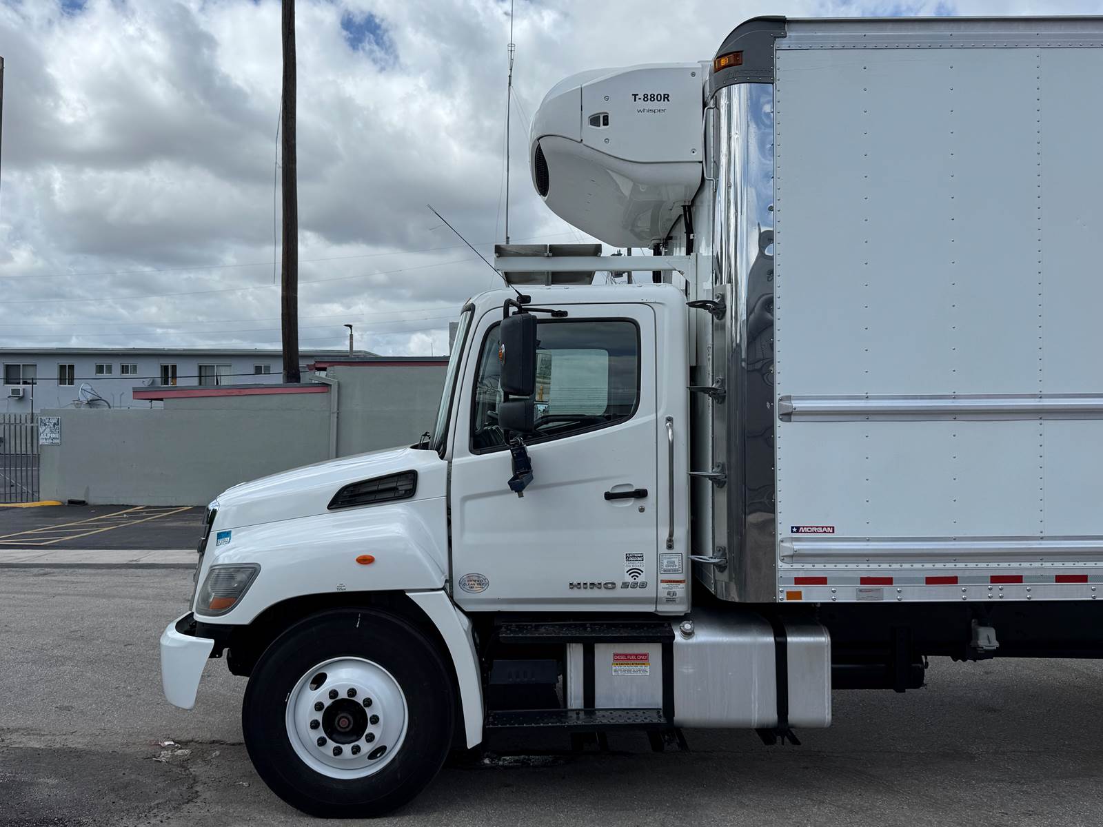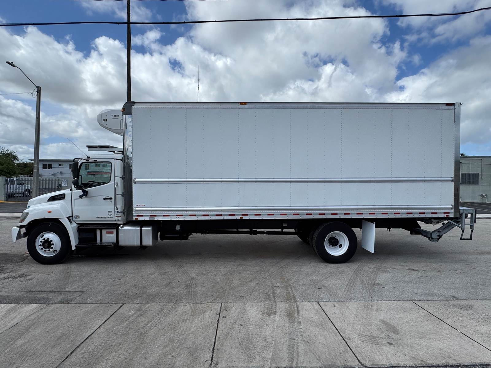 Offered for sale is a 2020 Hino 268 non-CDL refrigerated box truck equipped with a Thermo King T-880R-50 refrigeration unit with electric standby and a tuck-under liftgate, professionally configured for food distribution, cold-chain logistics, and temperature-sensitive freight operations. This Class 6 medium-duty truck is powered by a Hino J08E-WU 7.6L turbo diesel engine producing 260 horsepower and paired with an Allison 2200RDS 6-speed automatic transmission and 4x2 drivetrain. The engine features turbocharging and a 6-cylinder configuration and runs on diesel fuel with an 80-gallon fuel capacity. The truck is equipped with air brakes, air suspension, and a single rear axle configuration. It carries a GVWR of 25,950 lbs, supported by a 10,000 lb front axle rating and 19,000 lb rear axle rating, along with a 271-inch wheelbase and steel wheels.