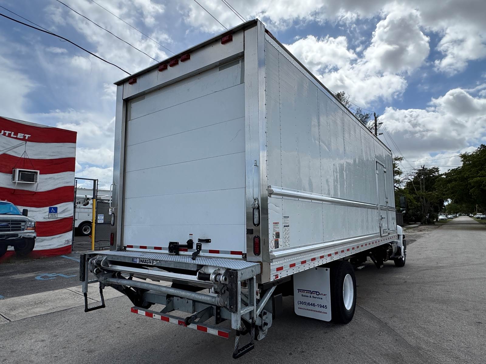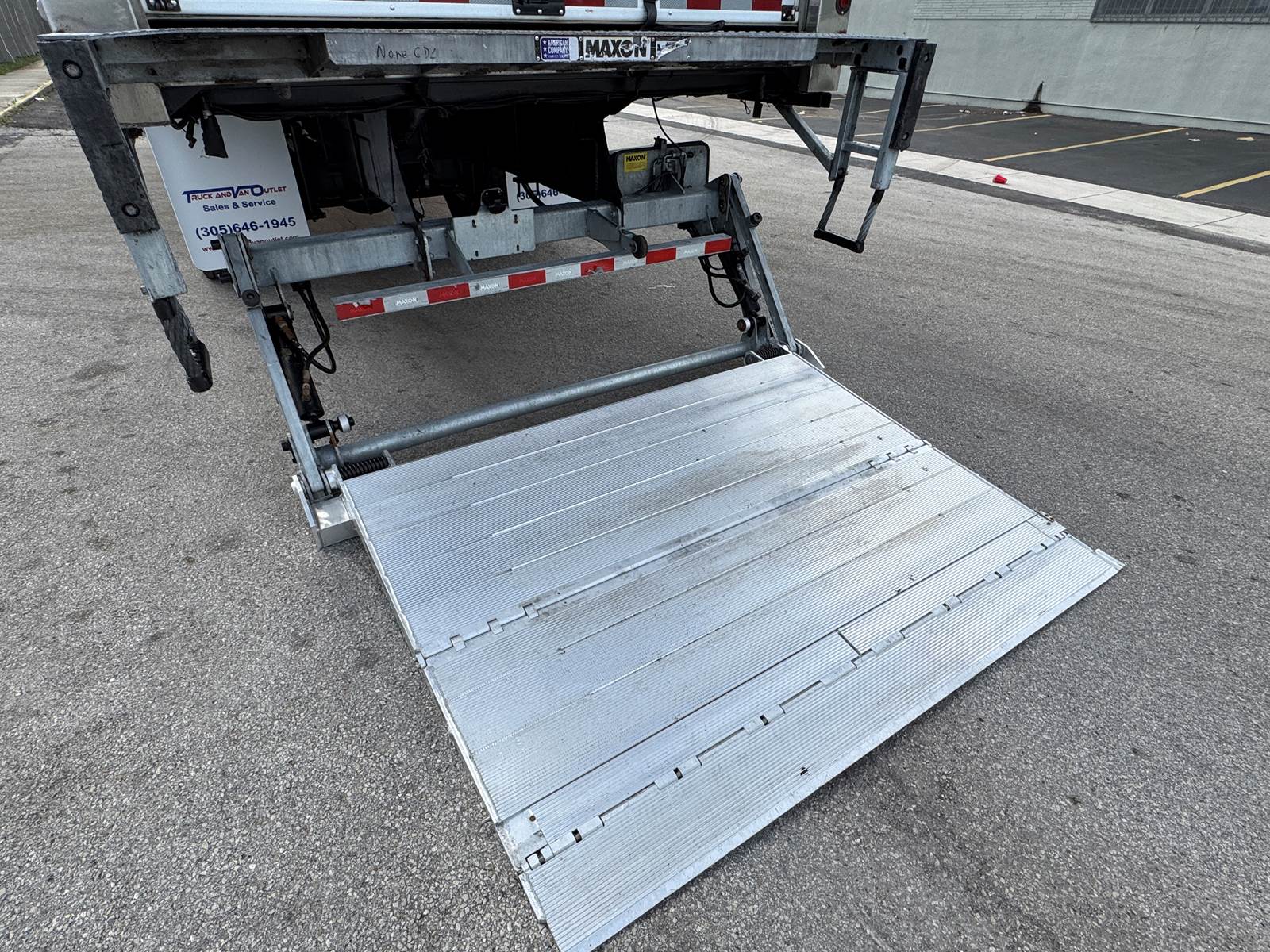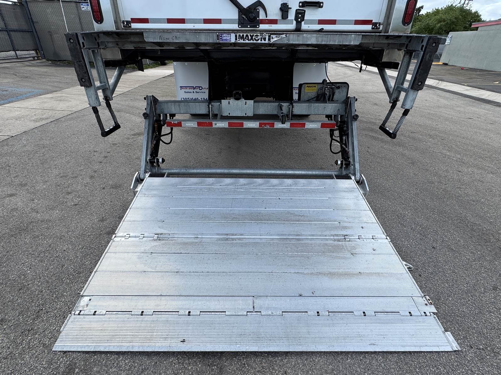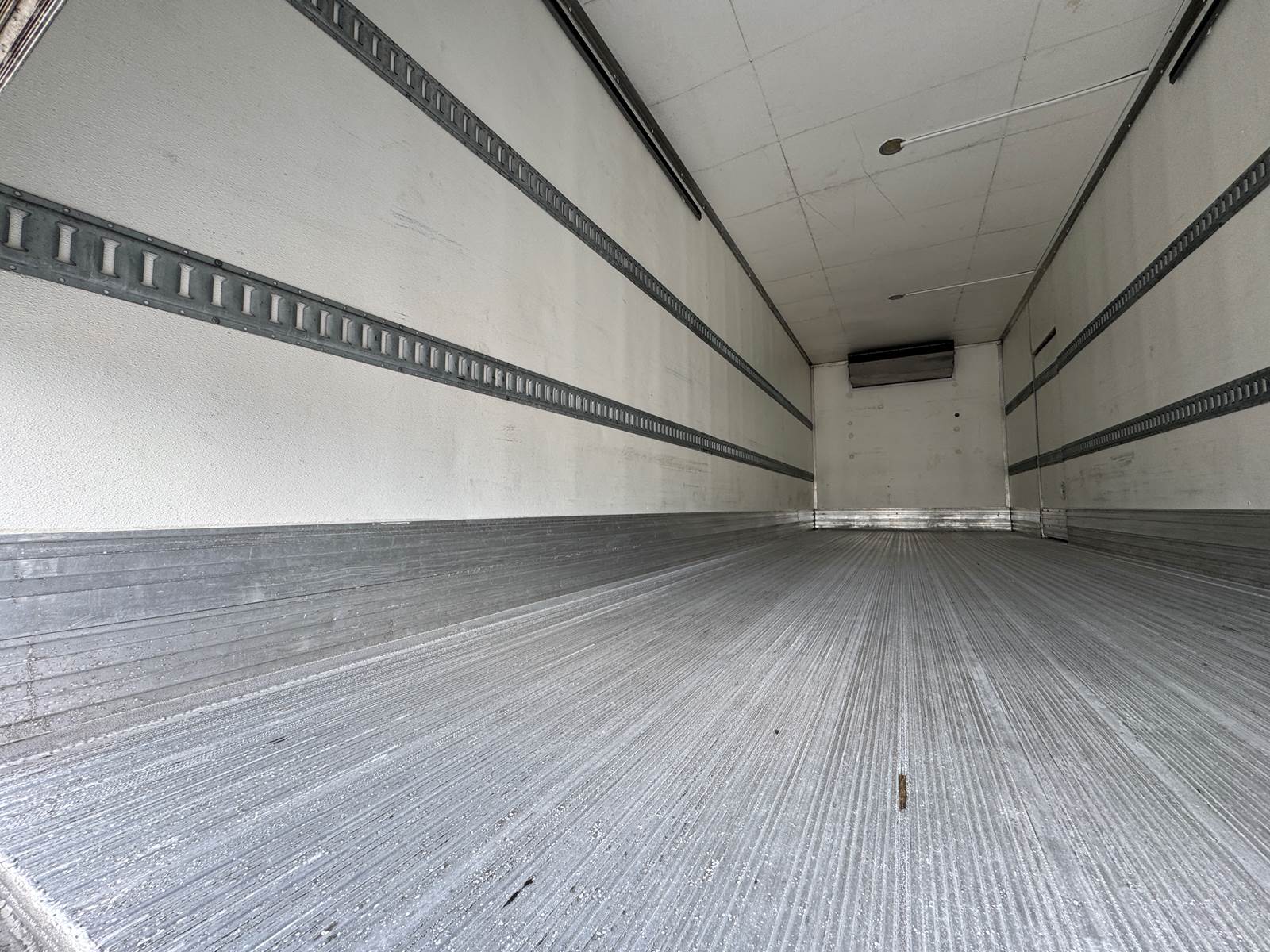 The refrigerated body is manufactured by Morgan (Model GVSR10326102) and measures 26 feet in length, 102 inches in width, and 103 inches in interior height. The cargo area is fully insulated and finished with Kemlite lining, aluminum construction, and two rows of aluminum E-track for load securement. The unit features a roll-up rear door and a curbside access door for convenient loading and unloading. The Thermo King T-880R-50 standalone refrigeration system includes electric standby capability and shows 7,123 reefer hours. Cargo handling is enhanced with a Maxon GTP-3000 tuck-under liftgate rated at 3,000 lbs capacity.