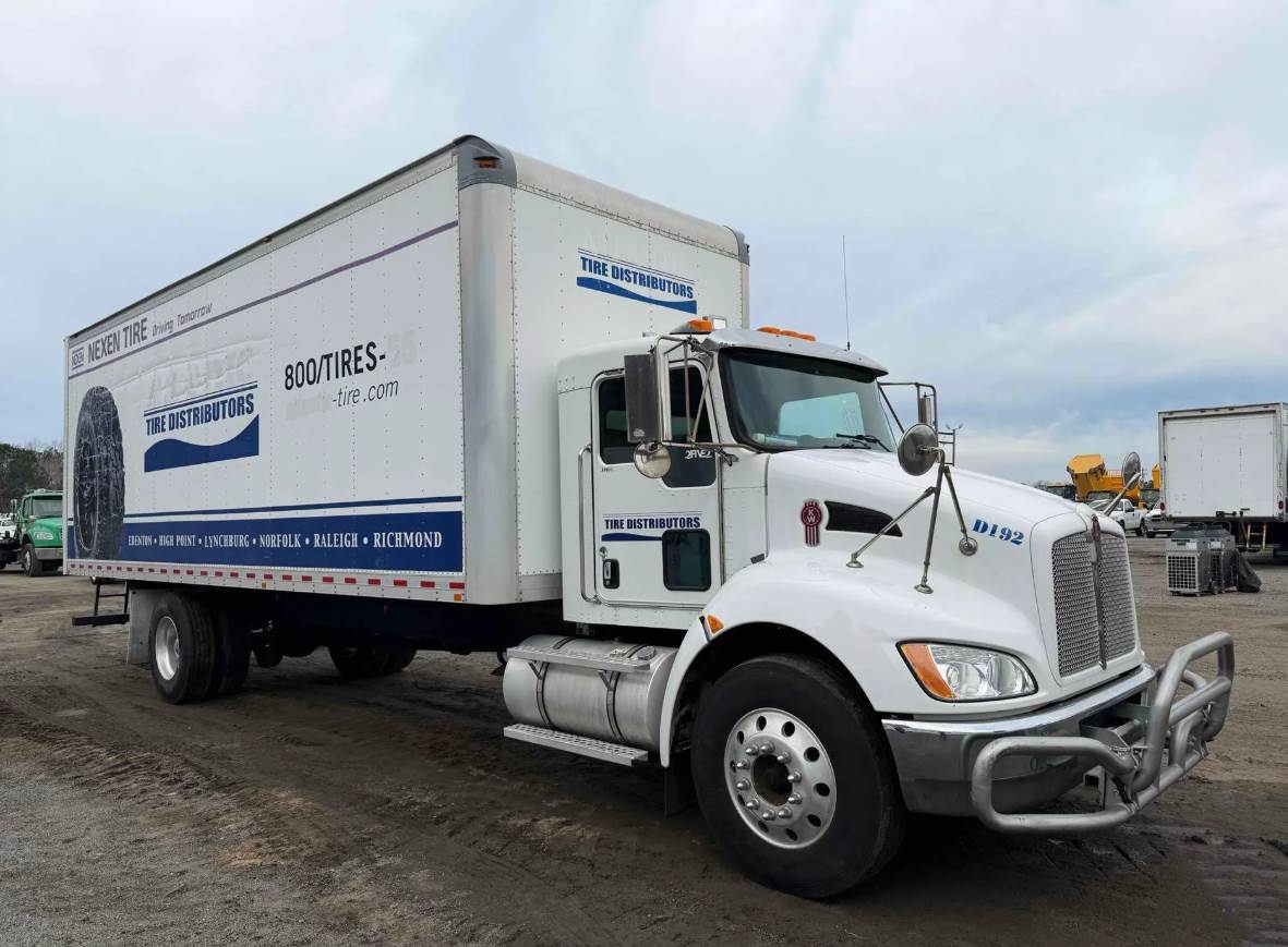 Offered for sale is a 2020 Kenworth T270 non-CDL 26-foot box truck, a dependable medium-duty delivery platform built for logistics, moving services, and commercial freight transport. This Class 6 medium-duty truck is powered by the reliable PACCAR PX-7 6.7L turbo diesel engine producing 260 horsepower and equipped with an engine brake, paired with an Allison 2500RDS 6-speed automatic transmission and a 4x2 drivetrain. The turbocharged 6-cylinder diesel engine operates on diesel fuel with a 70-gallon fuel capacity. The truck rides on Reyco spring suspension with air brakes and utilizes a single rear axle configuration. It carries a 26,000 lb GVWR, keeping it within non-CDL limits, and is supported by a 10,000 lb front axle rating and a 16,000 lb rear axle rating.