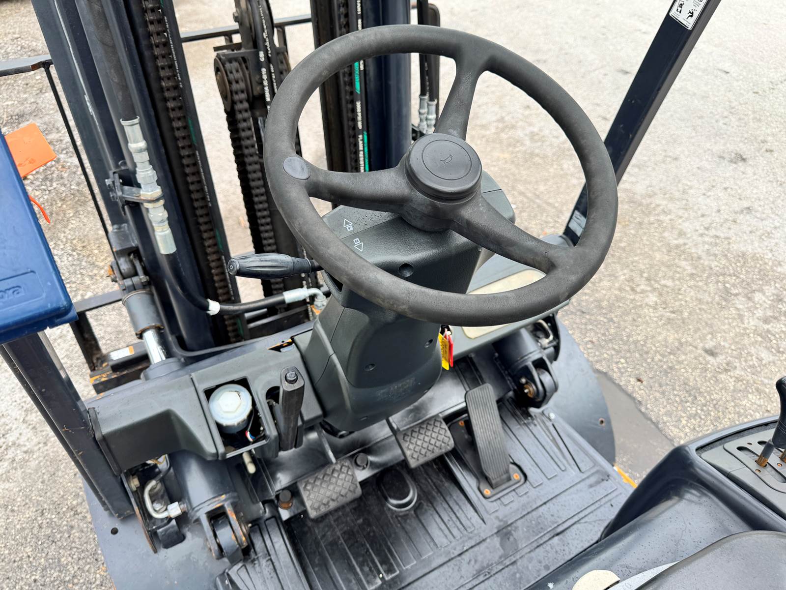 This 2007 Doosan D25S-5 is a heavy-duty diesel forklift, perfect for warehouse, yard, or construction material handling. It is powered by a Cummins 4-cylinder diesel engine producing 57 horsepower, offering dependable performance for a variety of industrial applications.
