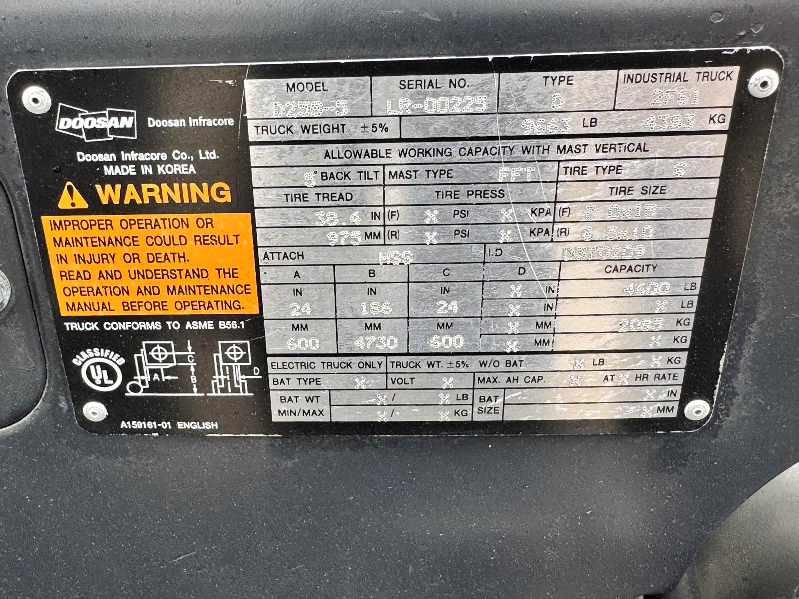 For Sale: 2007 Doosan D25S-5 Diesel Forklift – 4,600 lb Capacity, Cummins Powered