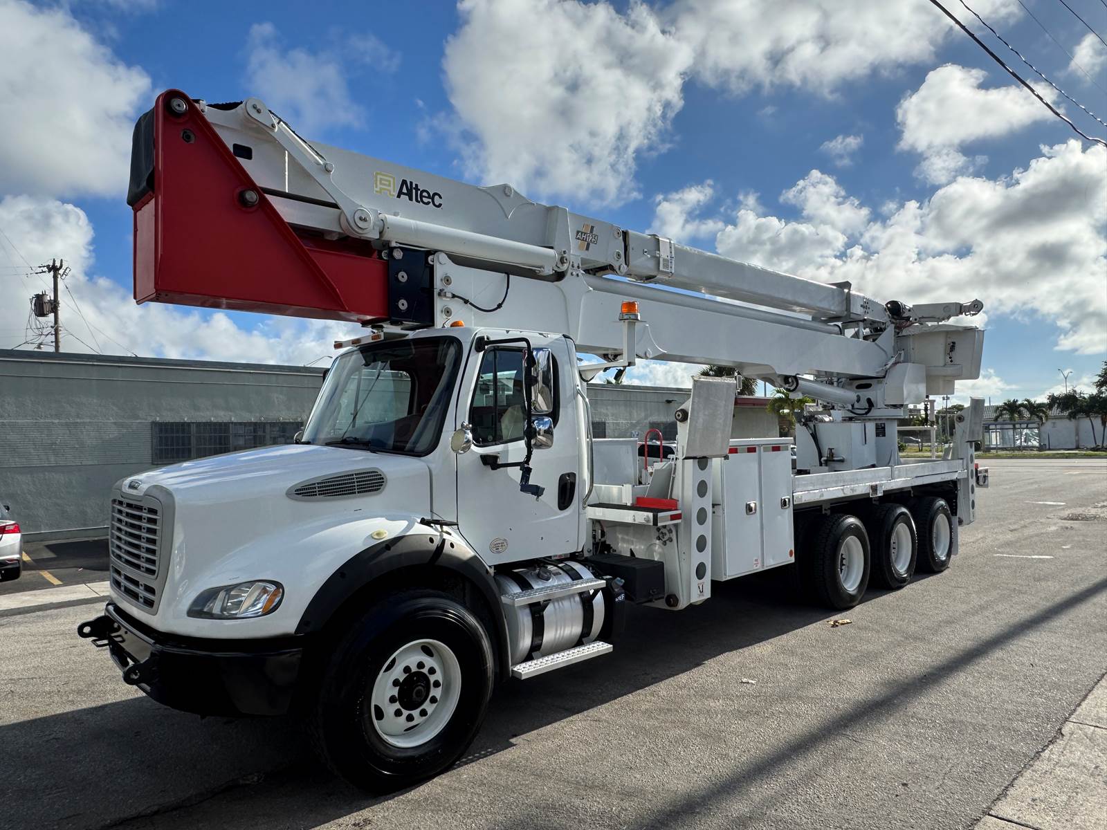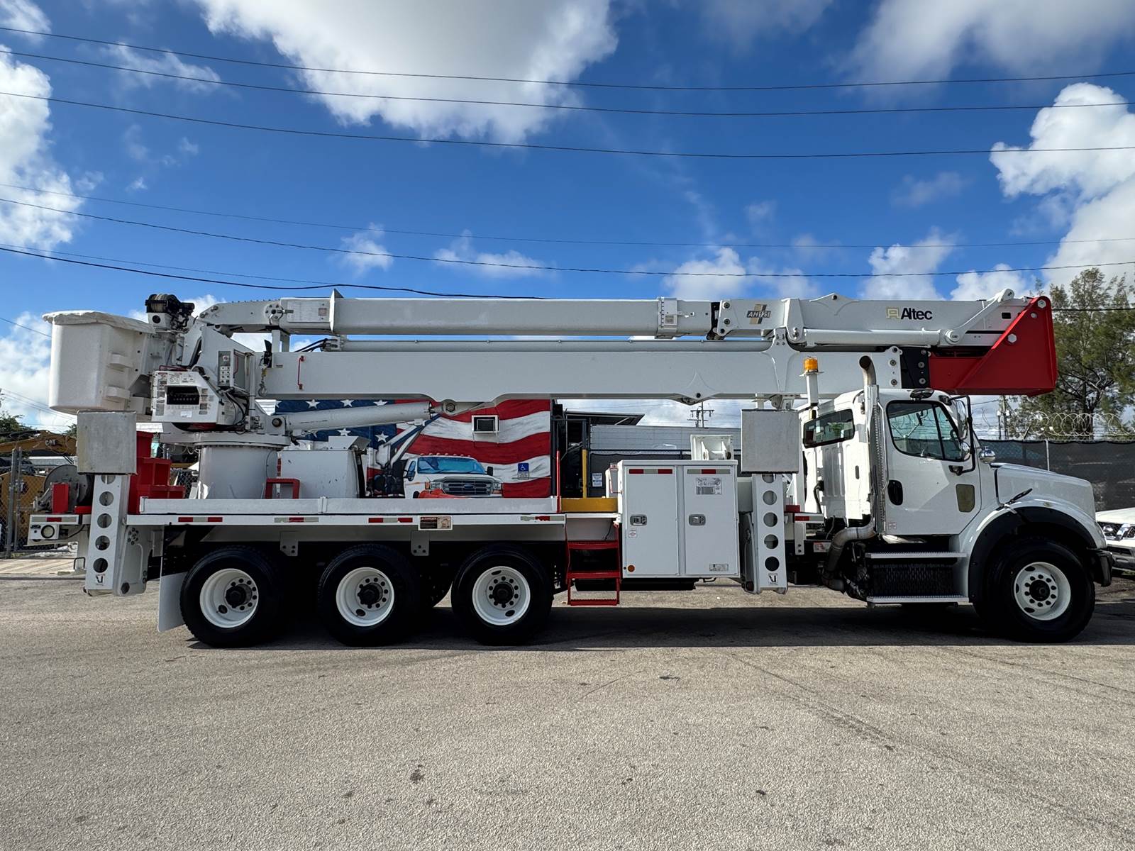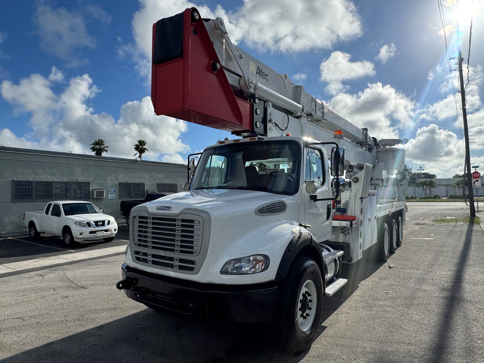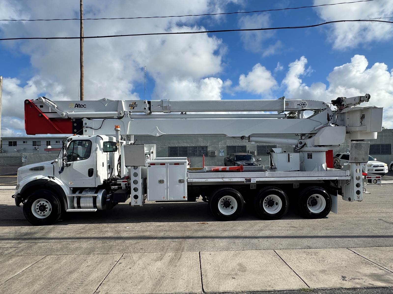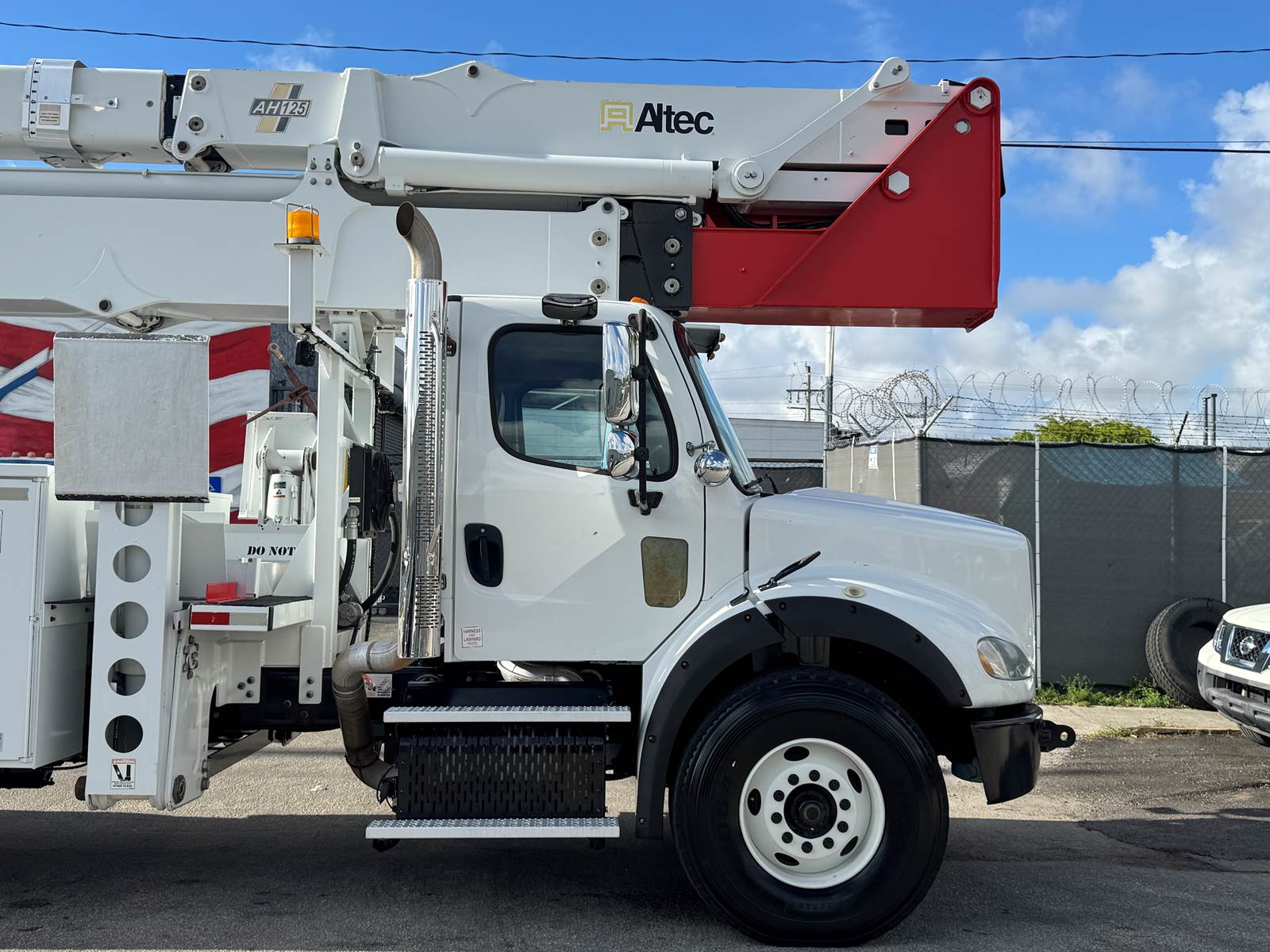 Offered for sale is a 2015 Freightliner M2-112 heavy-duty bucket truck equipped with an Altec AH125 articulating and telescopic aerial lift, a powerful and highly specialized configuration designed for transmission line construction, utility infrastructure work, and heavy-duty aerial applications requiring exceptional reach and lifting capability. This Class 8 truck is powered by a Detroit DD13 12.8L turbo diesel engine producing 410 horsepower and equipped with engine brake functionality, paired with an Allison 4500RDS 6-speed automatic transmission and an 8x6 drivetrain configuration for enhanced traction and off-road capability. The truck runs on diesel fuel with a 70-gallon fuel capacity and features differential lock. It rides on Freightliner AirLiner air suspension with air brakes and a tri-axle configuration, delivering a 77,000 lb GVWR supported by a 20,000 lb front axle rating and 57,000 lb rear axle capacity. The chassis rides on a 276-inch wheelbase with steel wheels and a 5.63 gear ratio.