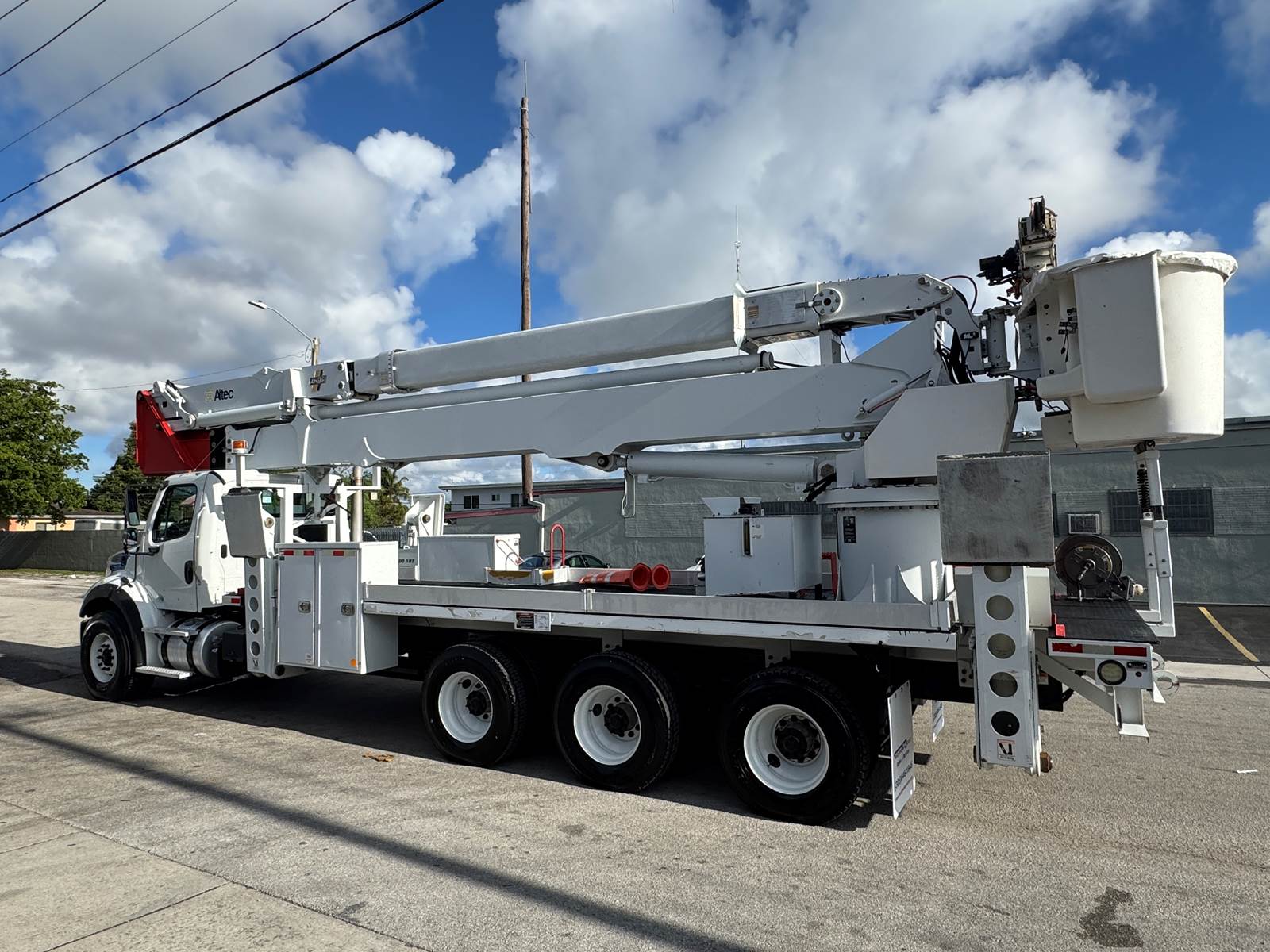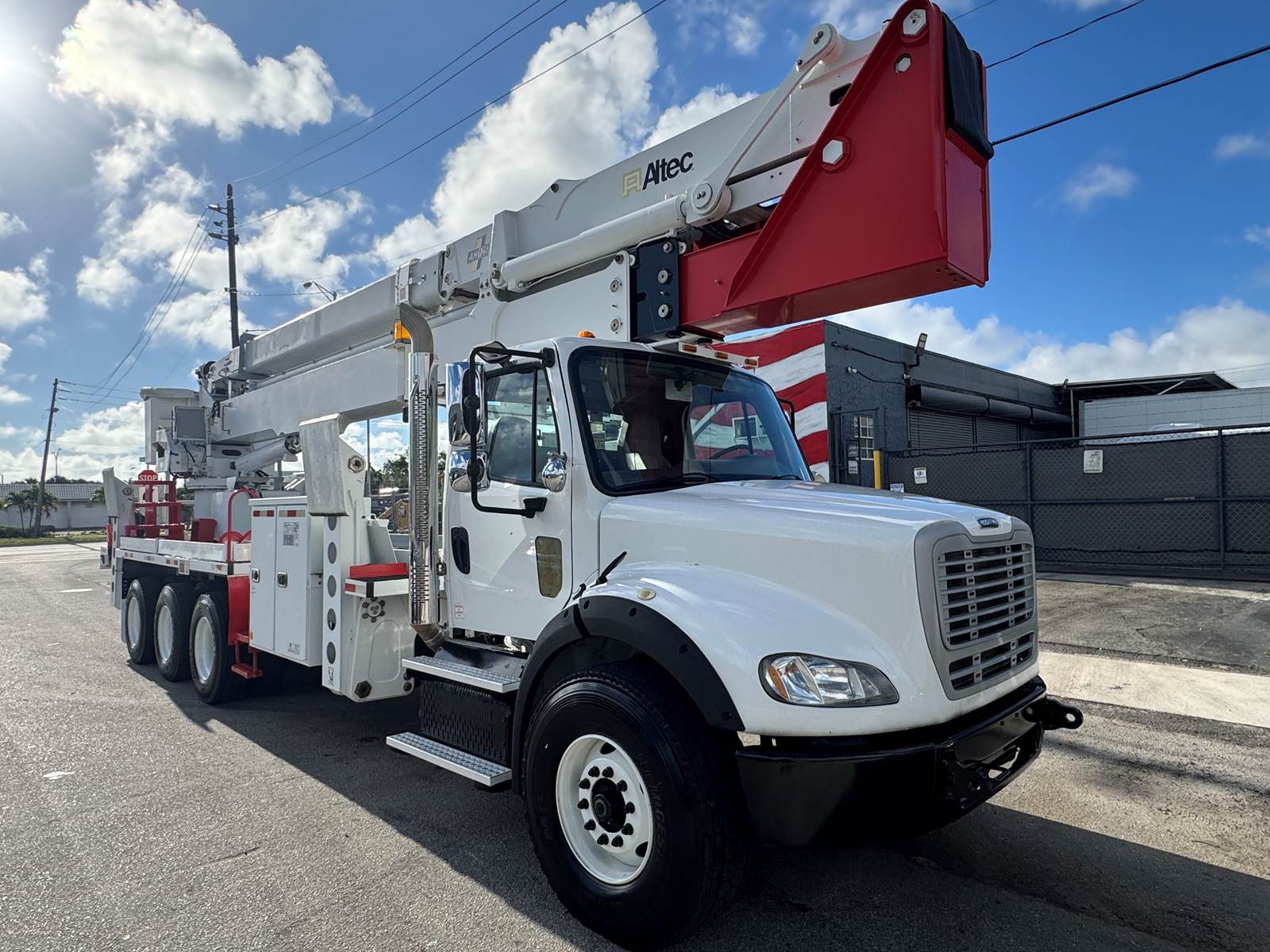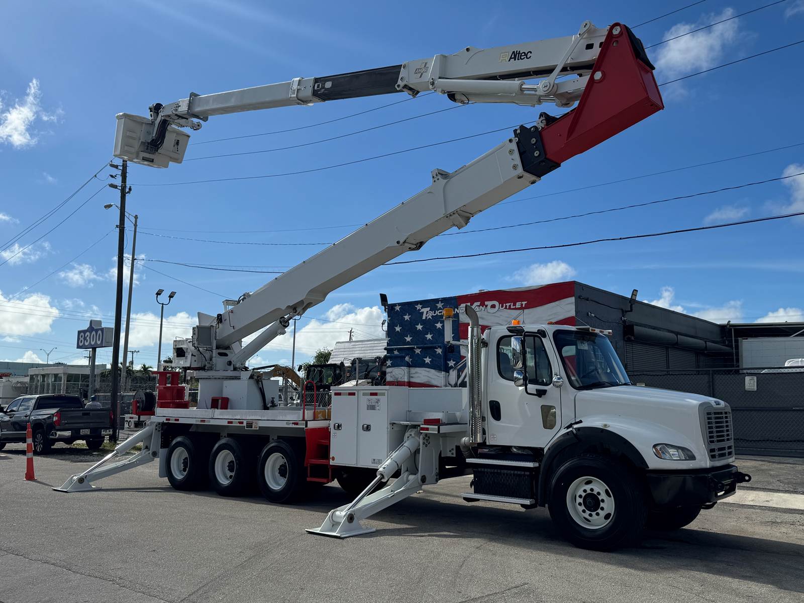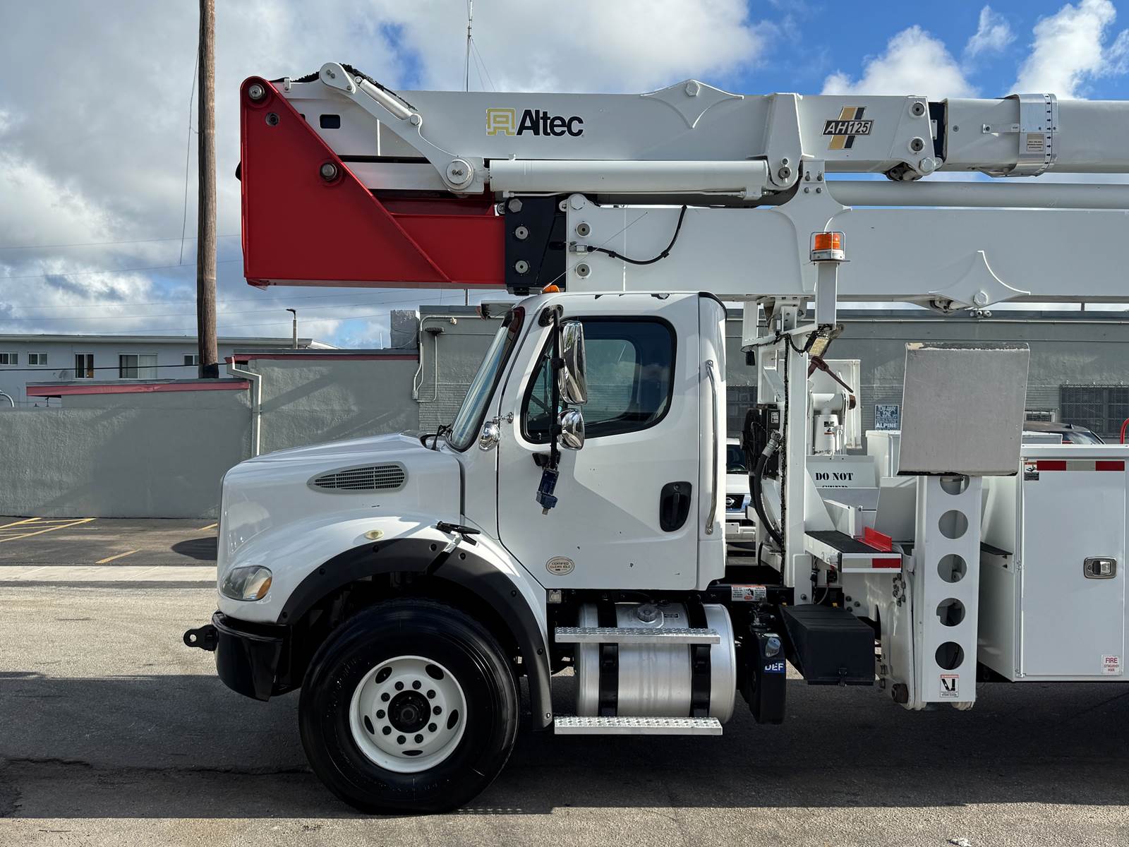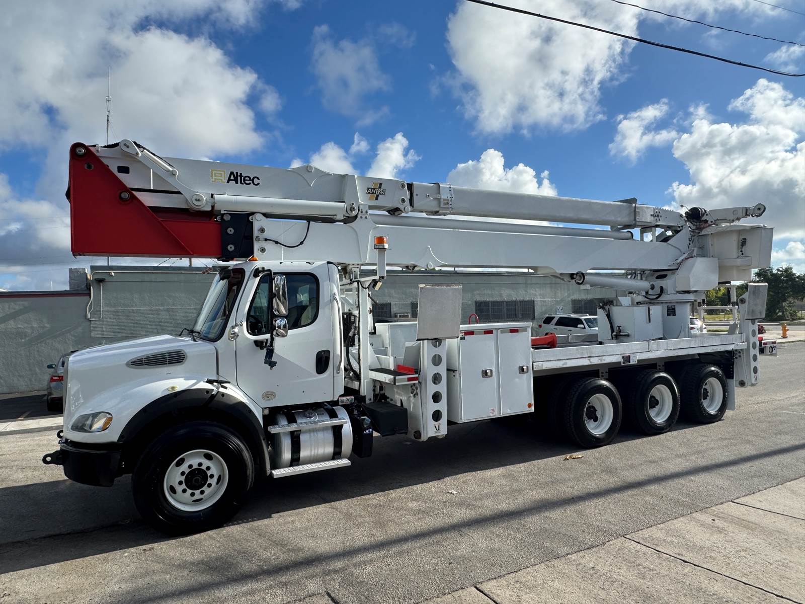 Offered for sale is a 2015 Freightliner M2-112 heavy-duty bucket truck equipped with an Altec AH125 articulating and telescopic aerial lift, a powerful and highly specialized configuration designed for transmission line construction, utility infrastructure work, and heavy-duty aerial applications requiring exceptional reach and lifting capability. This Class 8 truck is powered by a Detroit DD13 12.8L turbo diesel engine producing 410 horsepower and equipped with engine brake functionality, paired with an Allison 4500RDS 6-speed automatic transmission and an 8x6 drivetrain configuration for enhanced traction and off-road capability. The truck runs on diesel fuel with a 70-gallon fuel capacity and features differential lock. It rides on Freightliner AirLiner air suspension with air brakes and a tri-axle configuration, delivering a 77,000 lb GVWR supported by a 20,000 lb front axle rating and 57,000 lb rear axle capacity. The chassis rides on a 276-inch wheelbase with steel wheels and a 5.63 gear ratio.