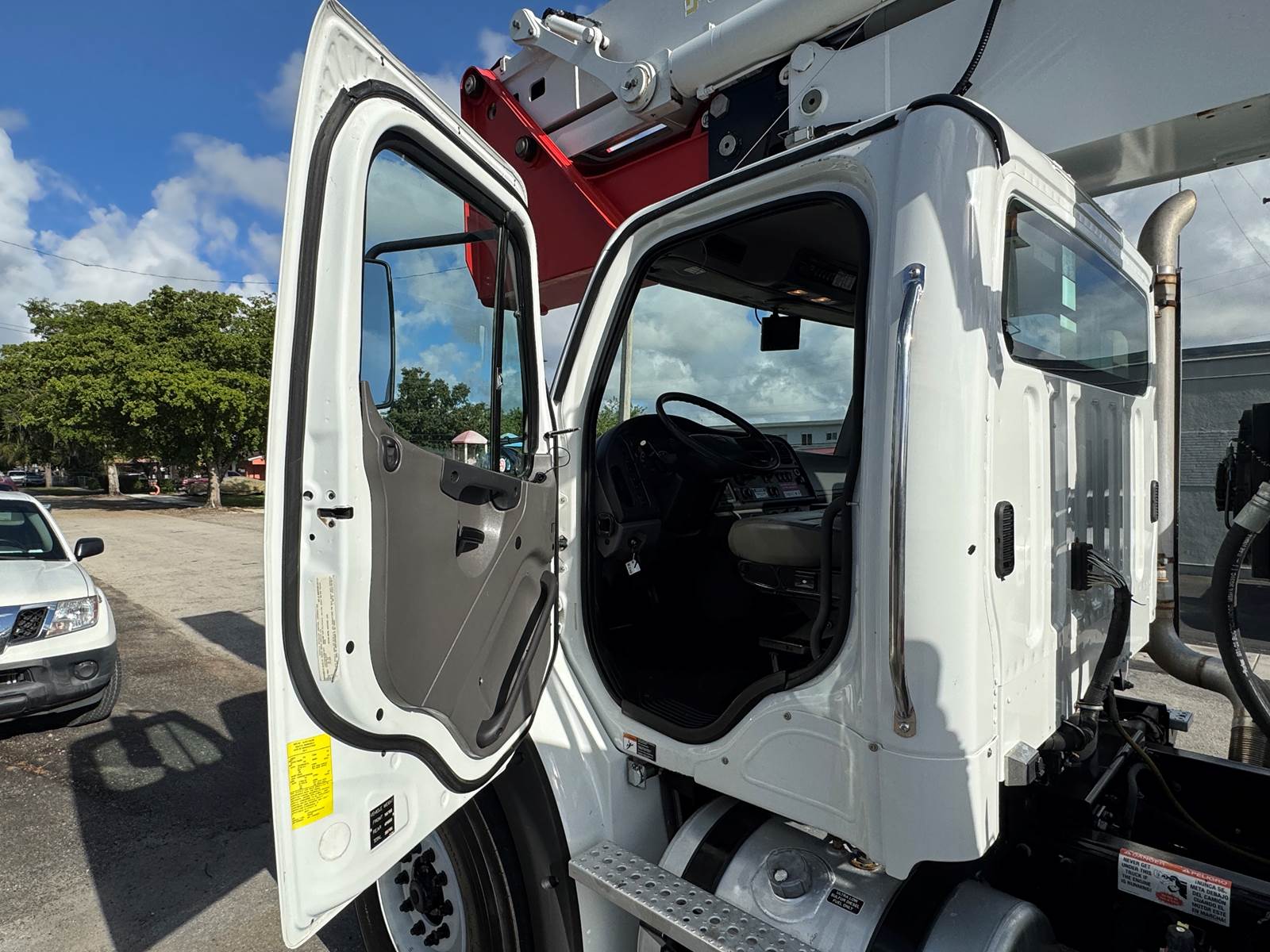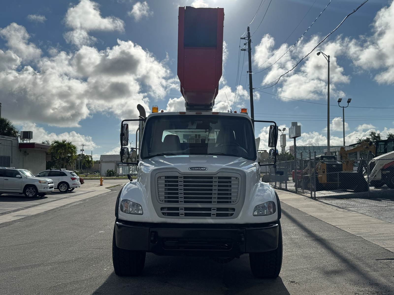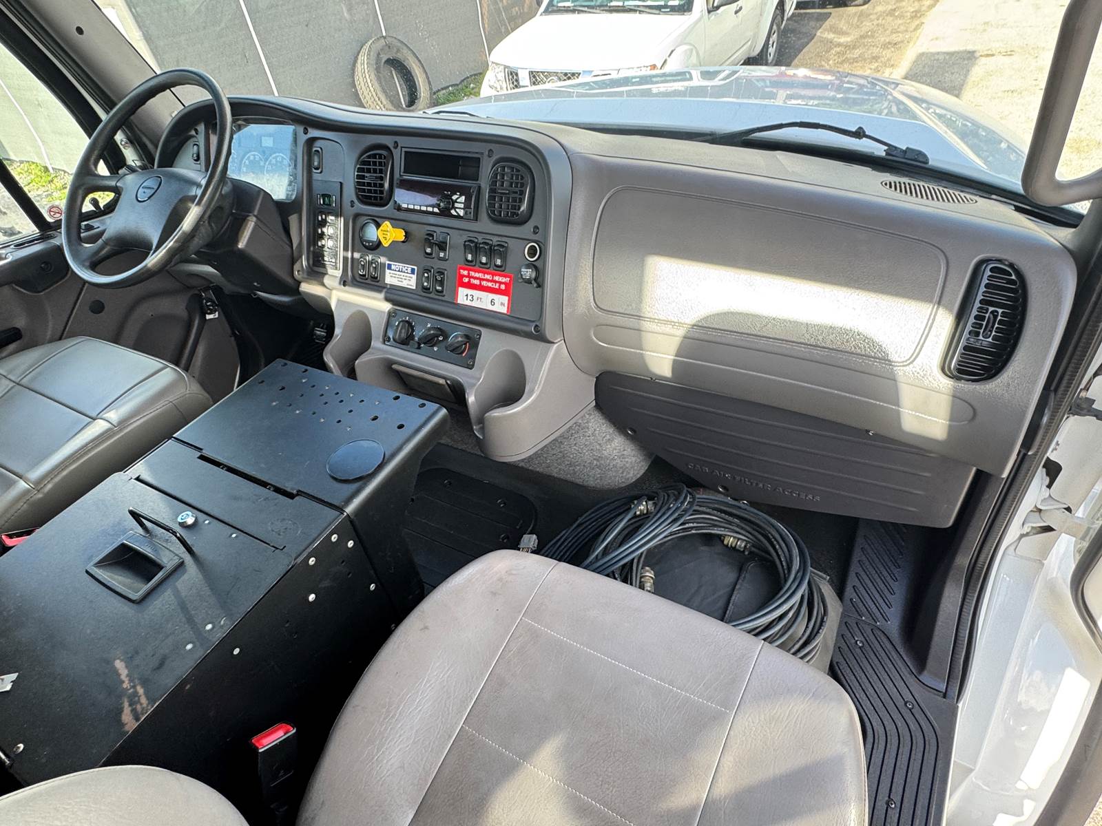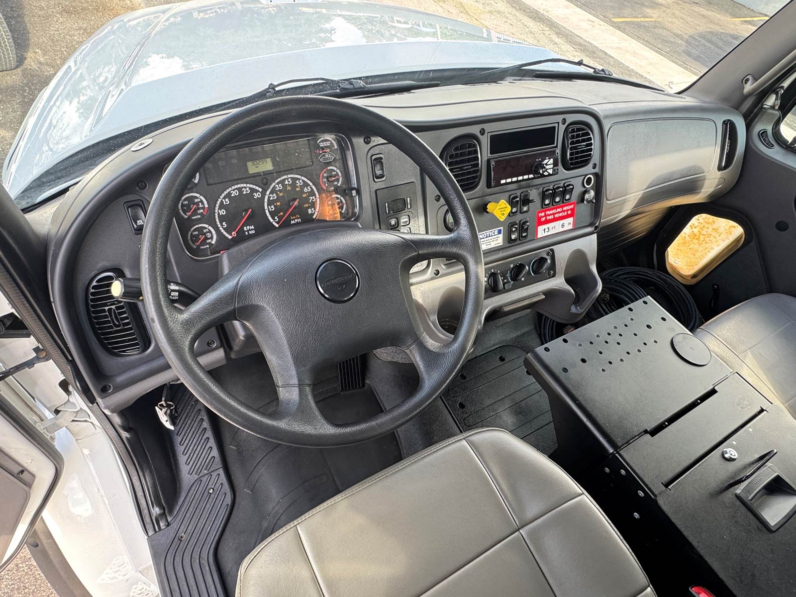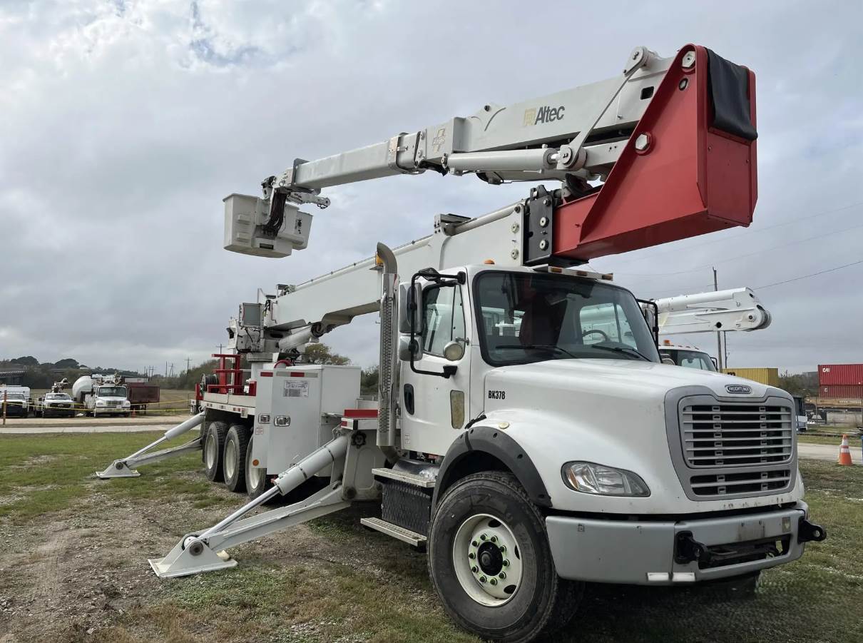 Offered for sale is a 2015 Freightliner M2-112 heavy-duty bucket truck equipped with an Altec AH125 articulating and telescopic aerial lift, a powerful and highly specialized configuration designed for transmission line construction, utility infrastructure work, and heavy-duty aerial applications requiring exceptional reach and lifting capability. This Class 8 truck is powered by a Detroit DD13 12.8L turbo diesel engine producing 410 horsepower and equipped with engine brake functionality, paired with an Allison 4500RDS 6-speed automatic transmission and an 8x6 drivetrain configuration for enhanced traction and off-road capability. The truck runs on diesel fuel with a 70-gallon fuel capacity and features differential lock. It rides on Freightliner AirLiner air suspension with air brakes and a tri-axle configuration, delivering a 77,000 lb GVWR supported by a 20,000 lb front axle rating and 57,000 lb rear axle capacity. The chassis rides on a 276-inch wheelbase with steel wheels and a 5.63 gear ratio.