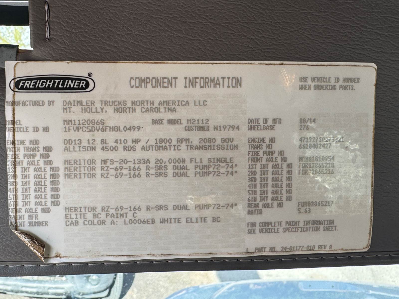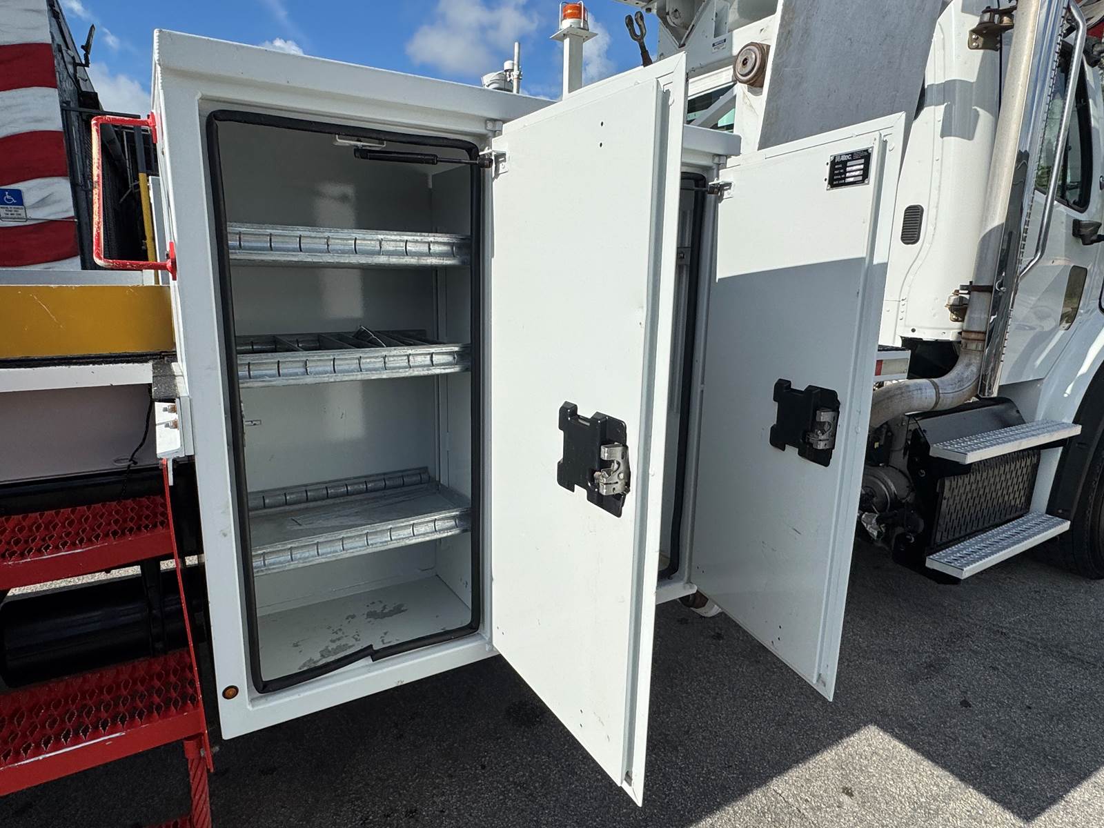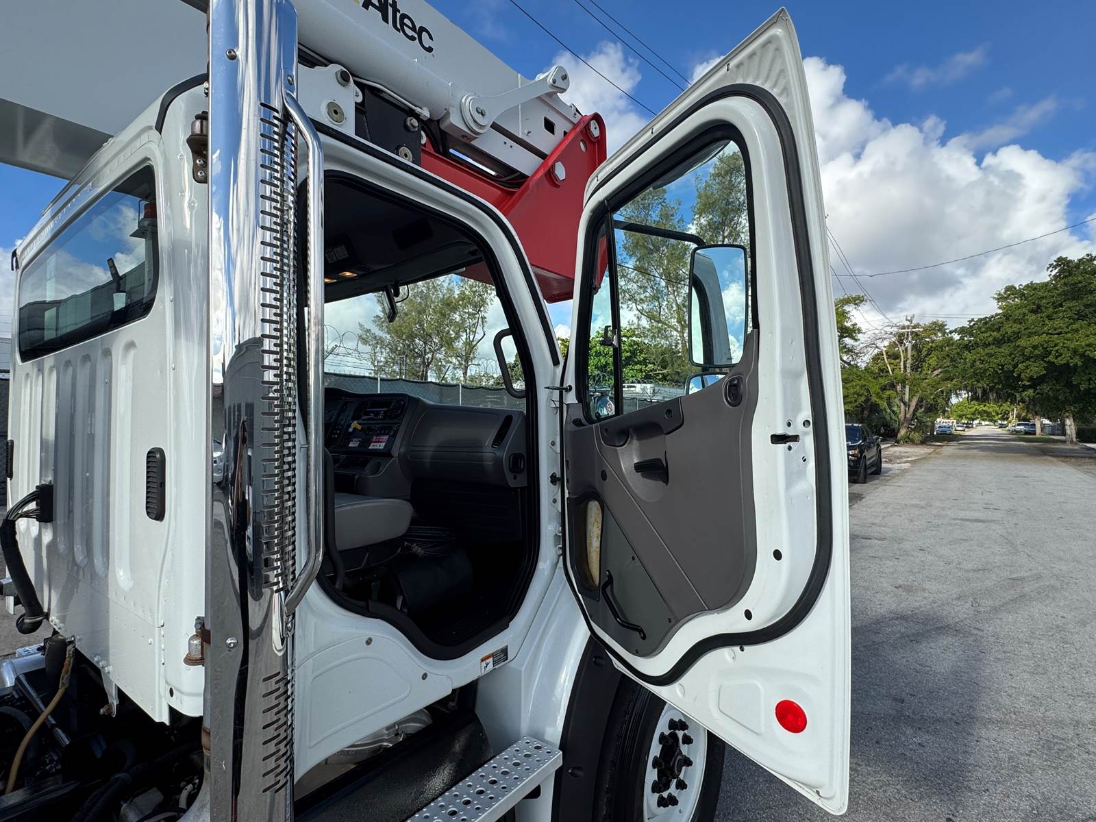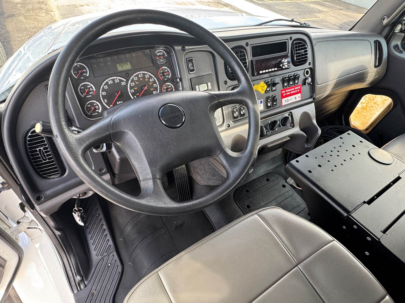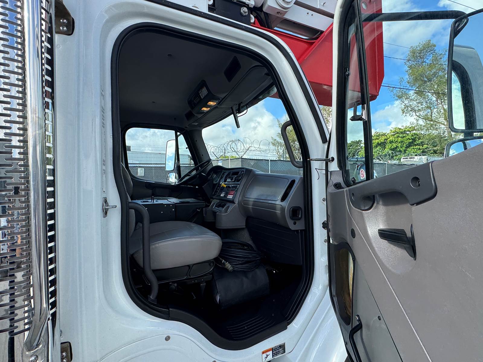 Offered for sale is a 2015 Freightliner M2-112 heavy-duty bucket truck equipped with an Altec AH125 articulating and telescopic aerial lift, a powerful and highly specialized configuration designed for transmission line construction, utility infrastructure work, and heavy-duty aerial applications requiring exceptional reach and lifting capability. This Class 8 truck is powered by a Detroit DD13 12.8L turbo diesel engine producing 410 horsepower and equipped with engine brake functionality, paired with an Allison 4500RDS 6-speed automatic transmission and an 8x6 drivetrain configuration for enhanced traction and off-road capability. The truck runs on diesel fuel with a 70-gallon fuel capacity and features differential lock. It rides on Freightliner AirLiner air suspension with air brakes and a tri-axle configuration, delivering a 77,000 lb GVWR supported by a 20,000 lb front axle rating and 57,000 lb rear axle capacity. The chassis rides on a 276-inch wheelbase with steel wheels and a 5.63 gear ratio.