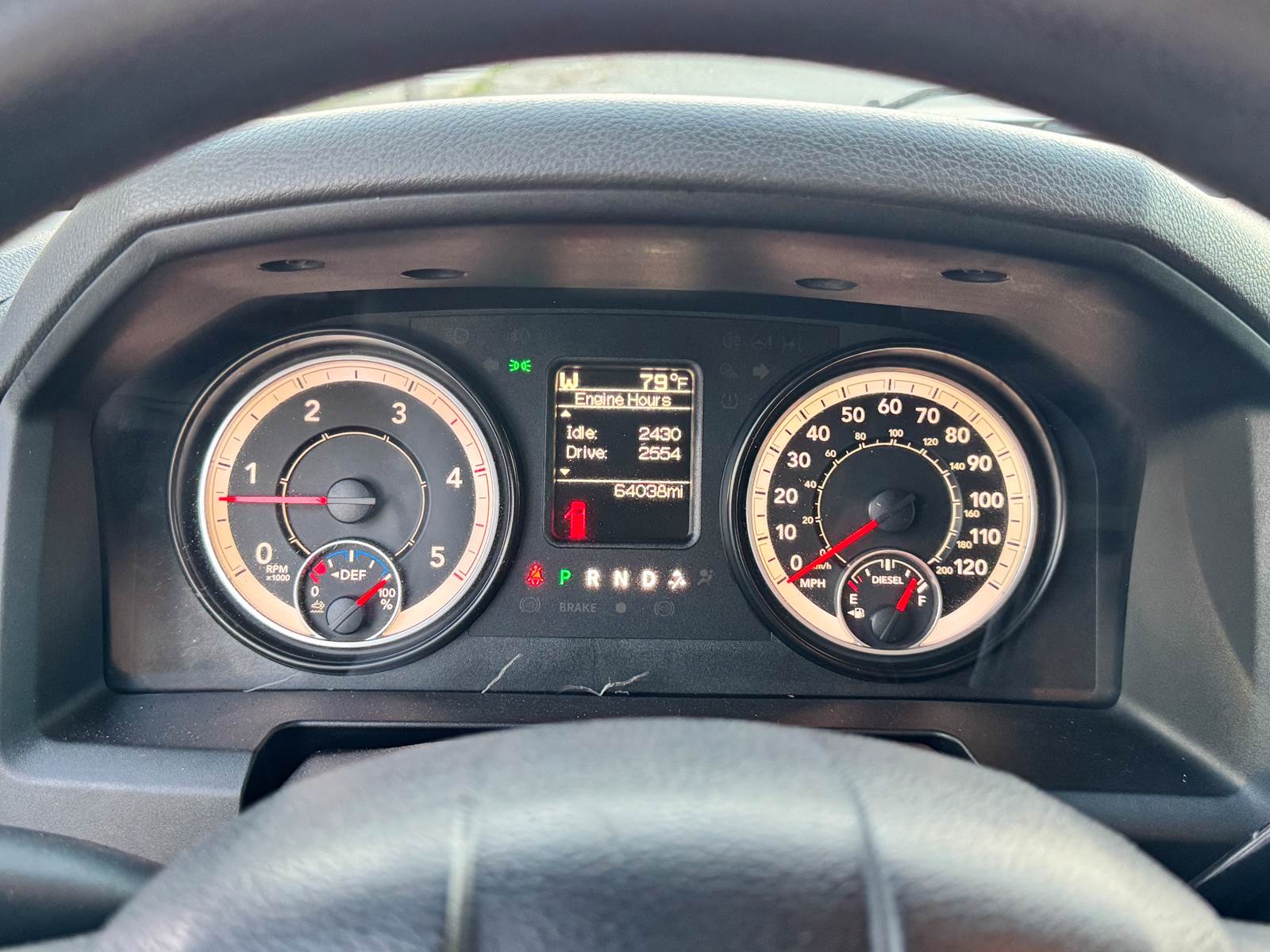 With a GVWR of 19,500 lbs, a front axle rating of 7,250 lbs, a rear axle rating of 13,500 lbs, a 197-inch wheelbase, and a 52-gallon diesel fuel tank, this RAM 5500 offers strong payload capacity and extended operating range. Additional equipment includes exhaust brake, electric trailer brake controller, A/C, cruise control, power windows, and power locks.