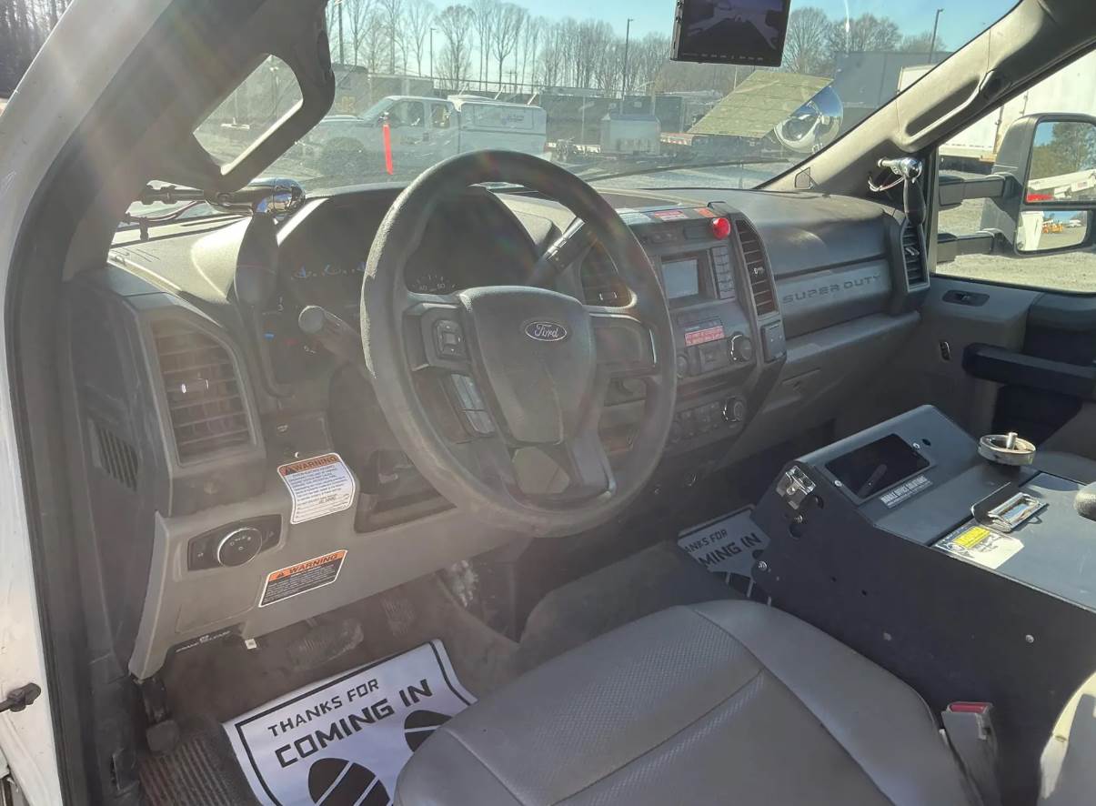 Offered for sale is a 2017 Ford F-550 Super Duty 4x4 bucket truck equipped with an Altec AT41M articulating and telescopic aerial lift, professionally configured for utility, electrical, signage, and heavy-duty field service applications. This Class 5 medium-duty truck is powered by the Ford 6.7L PowerStroke turbo diesel engine producing 330 horsepower and equipped with exhaust brake functionality, paired with a Ford TorqShift 6-speed automatic transmission and true 4x4 drivetrain with mechanical shift-on-the-fly transfer case. The truck operates on diesel fuel with a 40-gallon fuel capacity and is equipped with differential lock. It rides on spring suspension with hydraulic brake system and features a single rear axle configuration. The chassis carries a 19,500 lb GVWR, supported by a 7,500 lb front axle rating and 14,706 lb rear axle rating, along with a 169-inch wheelbase and steel wheels. The cab is finished in gray with a regular cab configuration and includes A/C, cruise control, power windows, and power locks. Collision mitigation is not equipped.