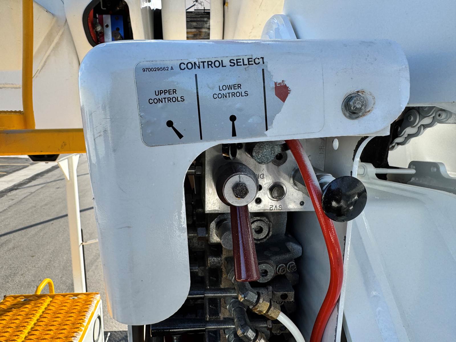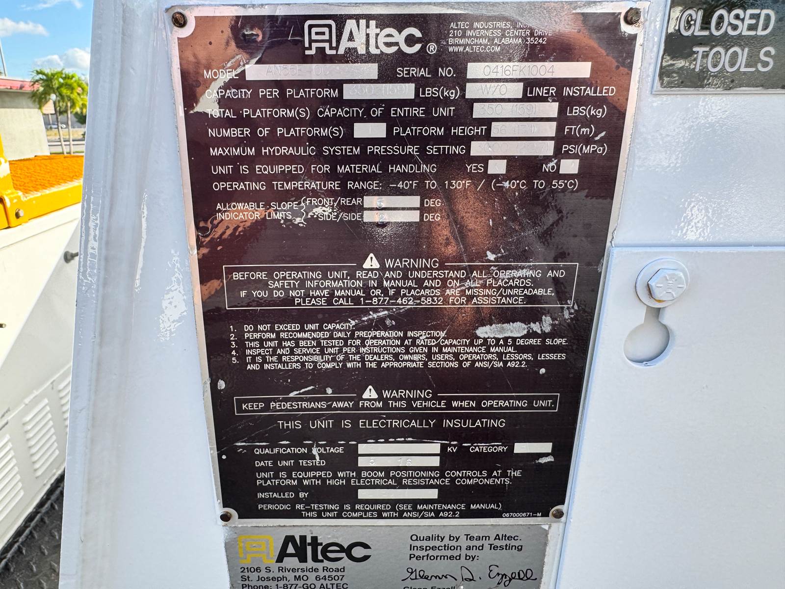 The Altec AN55E-OC articulating, over-center boom provides a 61.5-foot working height, 56.5-foot platform height, and 50.3-foot side reach. The platform includes a 350 lb rated capacity and a 700 lb material-handling jib for lifting poles, transformers, and heavy components. The boom system features Category D (46kV) insulation, continuous rotation, hydraulic leveling, and Altec’s ISO-Grip control system for smooth, precise movements. Additional features include a phase-lifting jib attachment, heel winch, power inverter, and low-range transfer case.