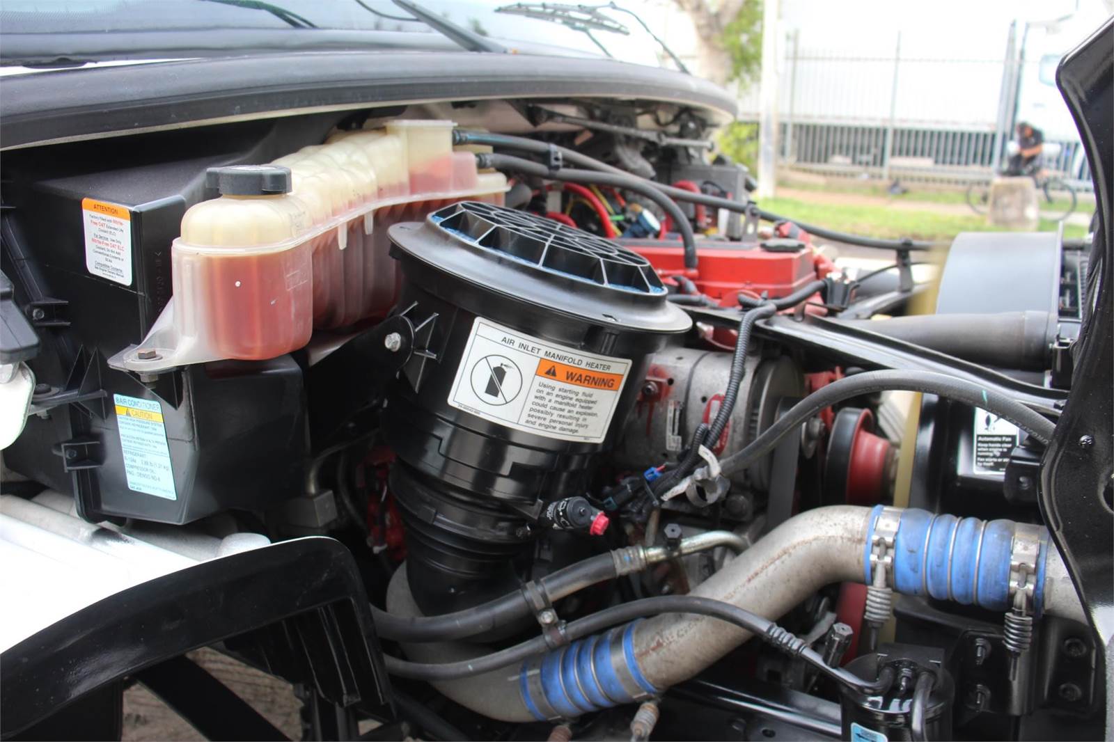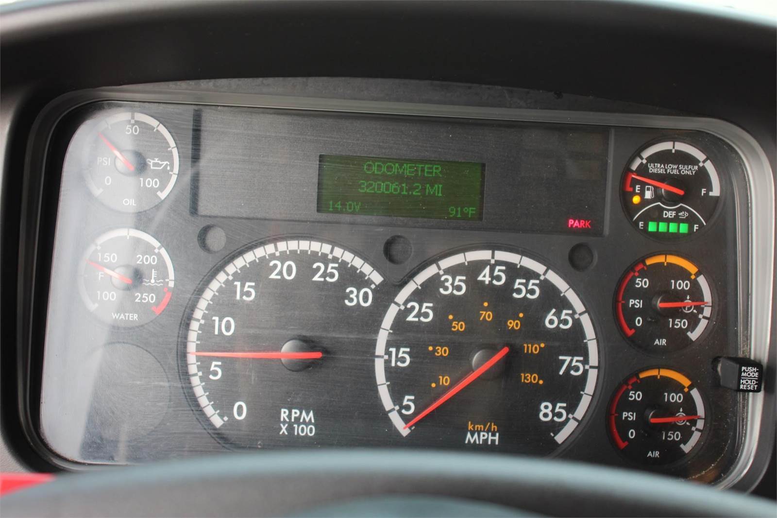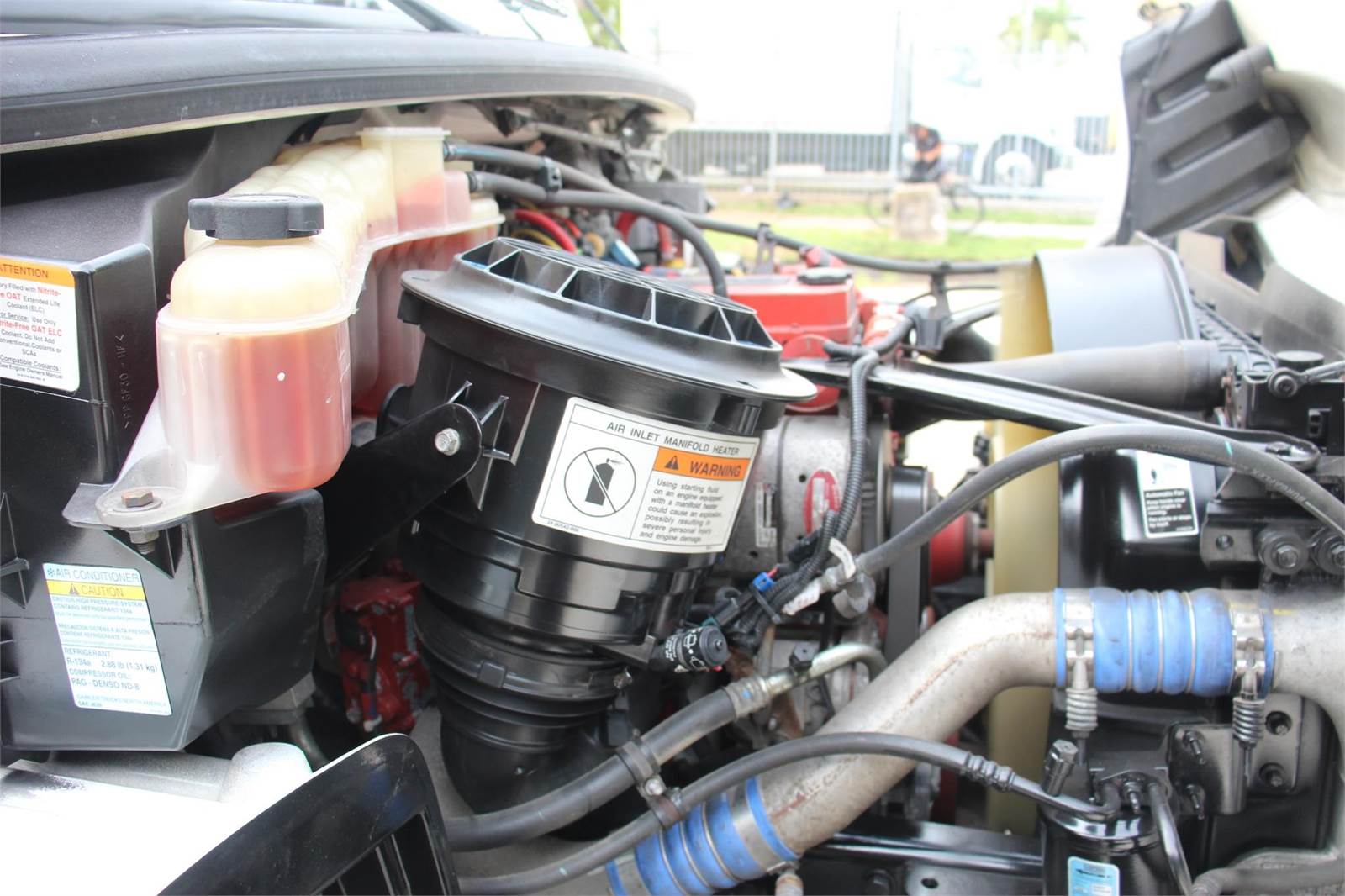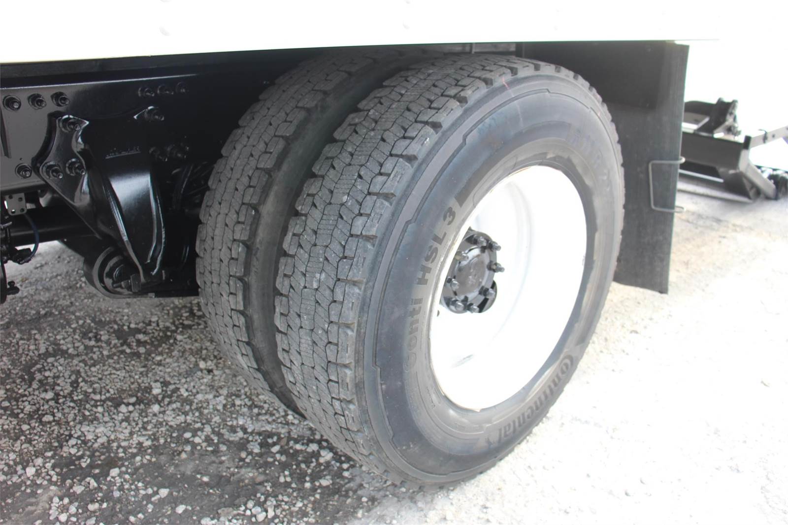 Outfitted with a 26-foot Supreme dry van body, this truck includes a roll-up rear door, hardwood floor, and translucent aluminum roof for bright interior lighting and durability. The box measures 102” wide by 103” high, providing generous cargo capacity. A Waltco HLF30 tuck-under liftgate rated for 3,000 lbs ensures safe and efficient loading for pallets and heavy goods. The chassis features air suspension and air brakes for improved ride comfort and stopping performance, while dual aluminum fuel tanks with an 80-gallon total capacity allow for extended driving range.