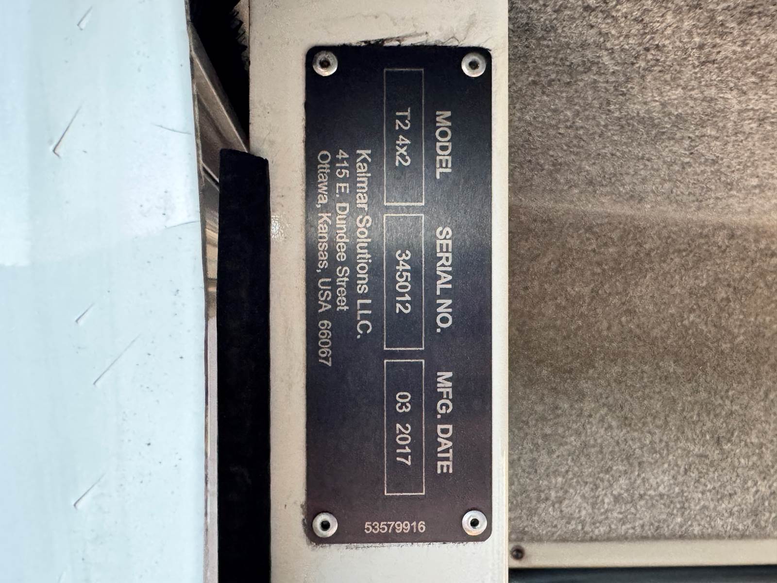 The 2017 Kalmar Ottawa T2 is a dependable yard spotter engineered for industrial-grade performance and efficiency in distribution yards, terminals, and warehouse operations. It is powered by a Cummins ISB 6.7L turbo diesel engine rated at 200 horsepower, paired with an Allison 3500RDS 6-speed automatic transmission for smooth and reliable shifting. The single rear axle configuration and spring suspension provide excellent stability and maneuverability under frequent trailer movement.