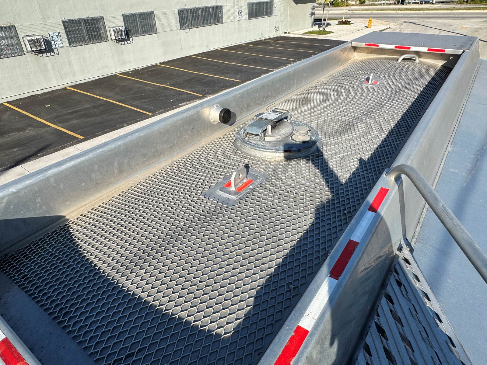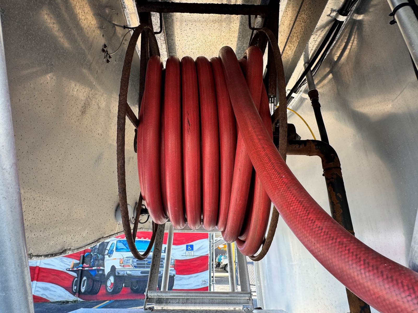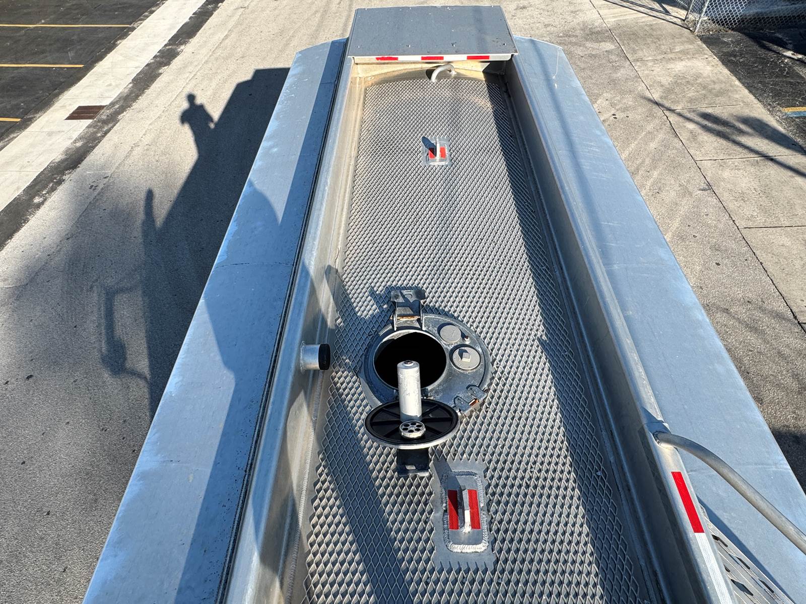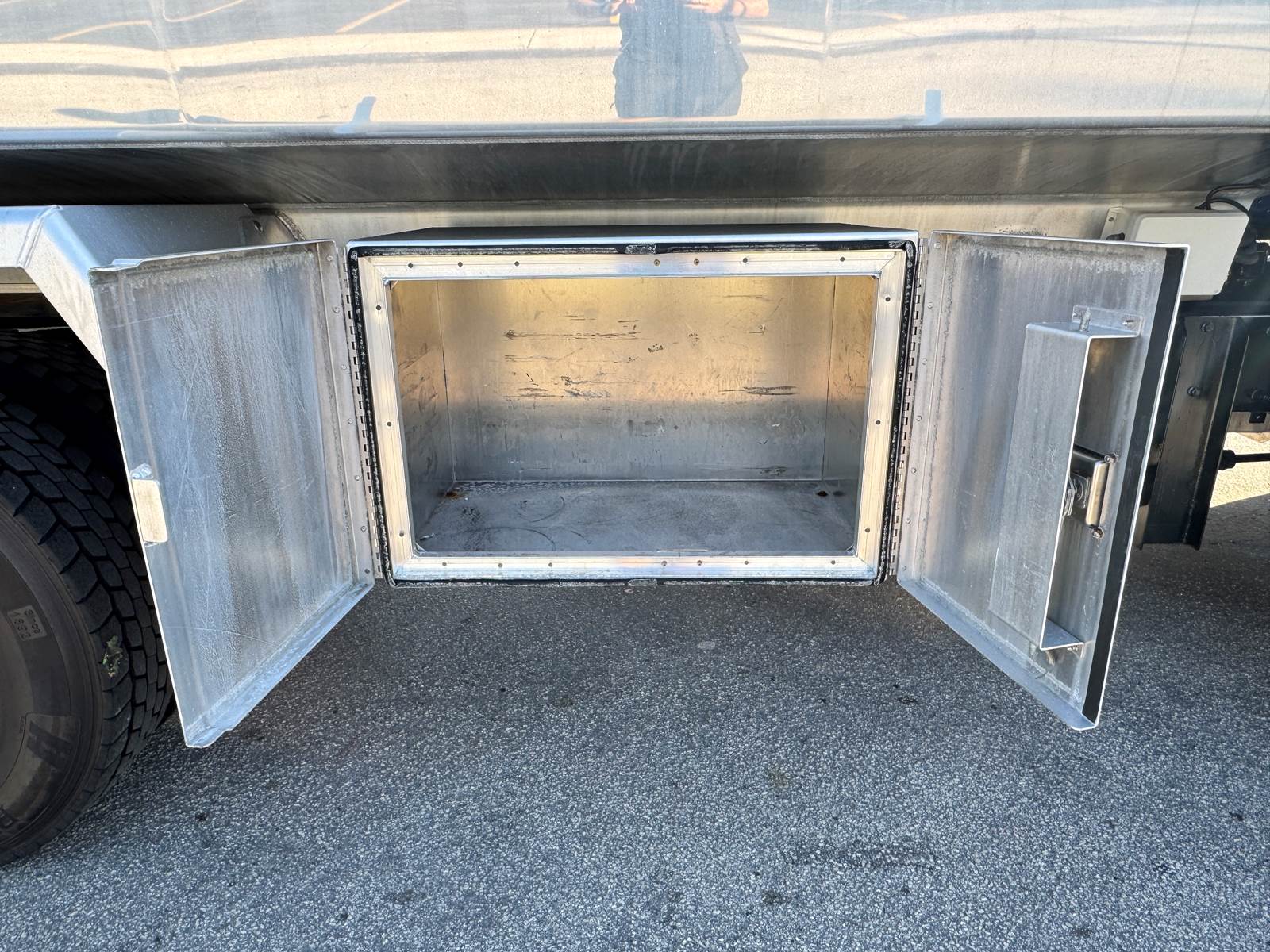 The truck is fitted with a Trans-Tech AB16-8678 aluminum tank body rated at 2,800 gallons and constructed to DOT 406 specifications. The single-compartment design is equipped with an M7 meter system, SCUL flow nozzle, and integrated liquid control system for precise fueling and fluid delivery. The tank features top access, a 19.2-inch steel frame, and air spring suspension for a smooth, stable ride even when fully loaded.
