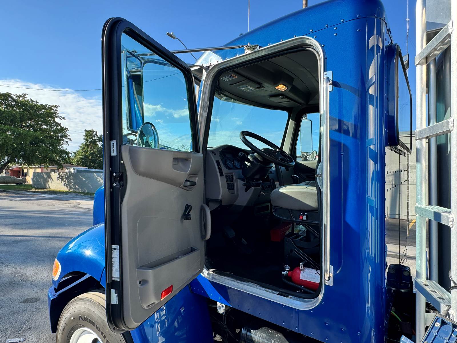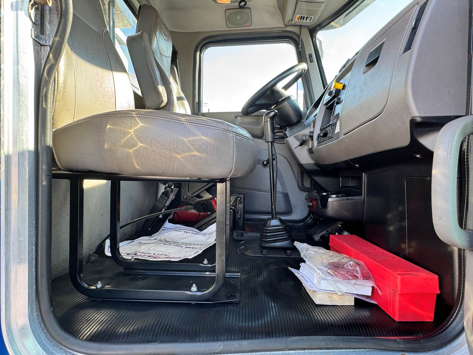 Additional features include a 3.91 gear ratio, air brakes, and 12,000 lb front / 21,000 lb rear axles. The unit is finished in gray and presents as a one-owner, fleet-maintained truck with a clean Carfax and excellent condition throughout.