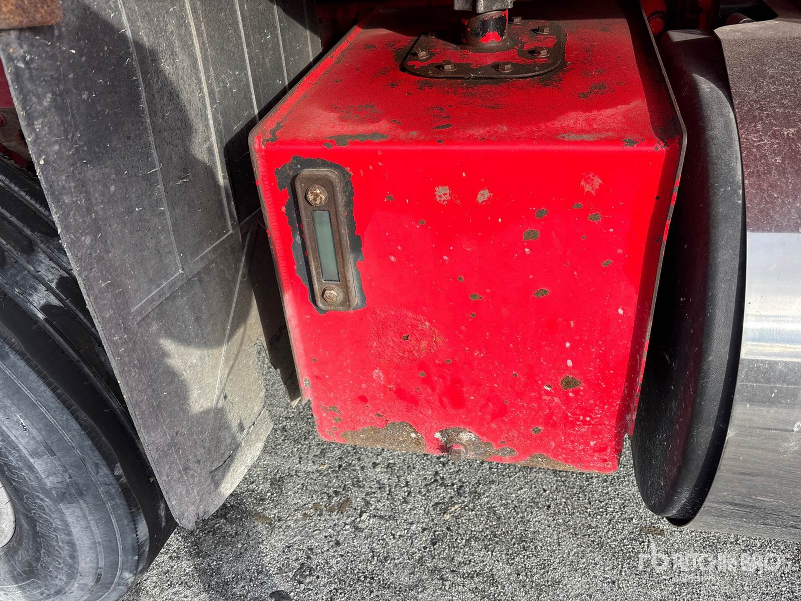 Finished in red, the truck is equipped with aluminum wheels, an air-ride cab, and a black regular interior. With a GVWR of 80,000 lbs, a front axle rating of 20,000 lbs, rear axle ratings totaling 66,000 lbs, and a 238-inch wheelbase, this Peterbilt 567 is engineered for maximum payload and long-term reliability. Additional features include dual steering boxes, steering-wheel controls, A/C, cruise control, power windows, and power locks. This unit is well-equipped and ready for heavy hauling operations.
