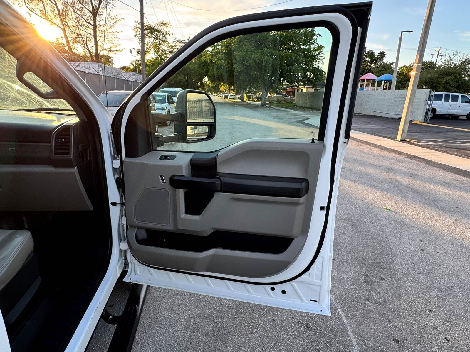 The truck includes key work-ready options such as the Power Equipment Group, trailer brake controller, towing package, and electric shift-on-the-fly transfer case. With a 14,000 lb GVWR and total curb weight of 10,040 lbs, the F-350 offers excellent payload and towing capability for maintenance fleets, utility contractors, and municipal service operations.
