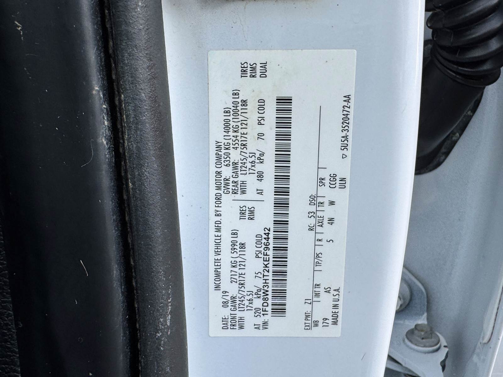VIN: 1FD8W3HT2KEF96442