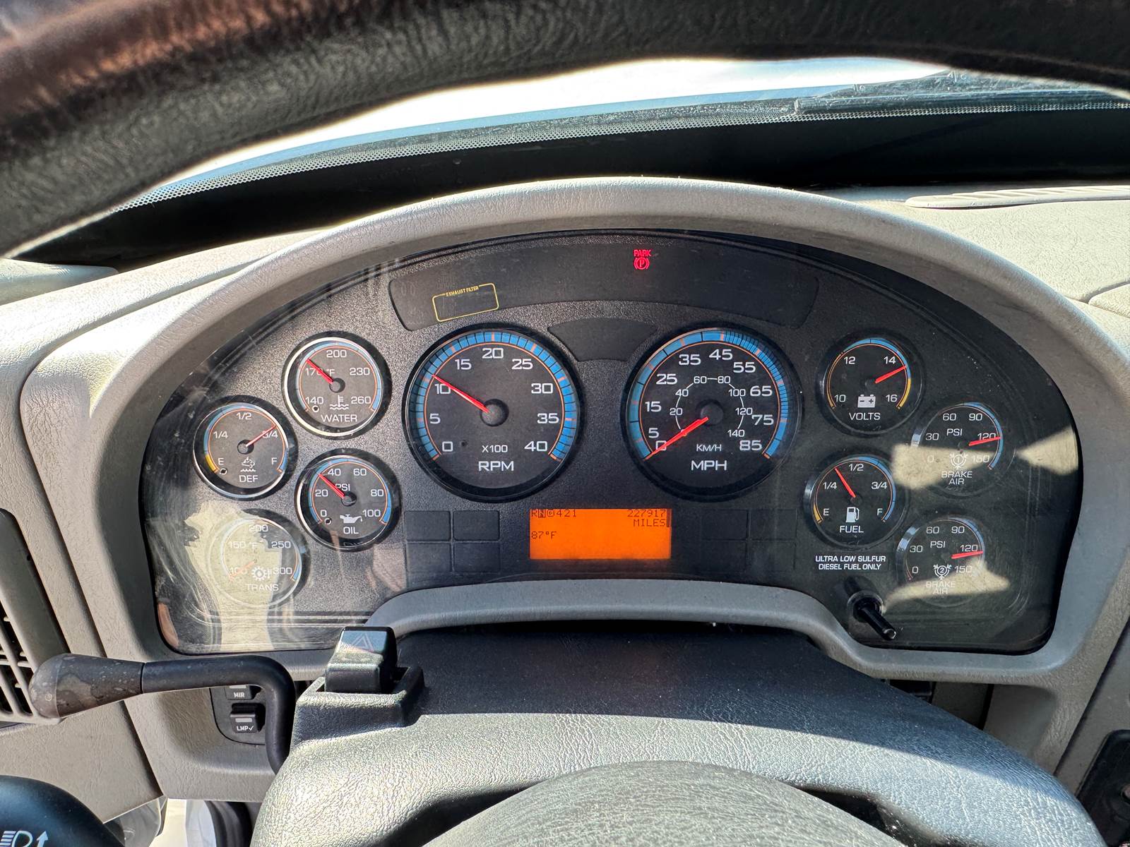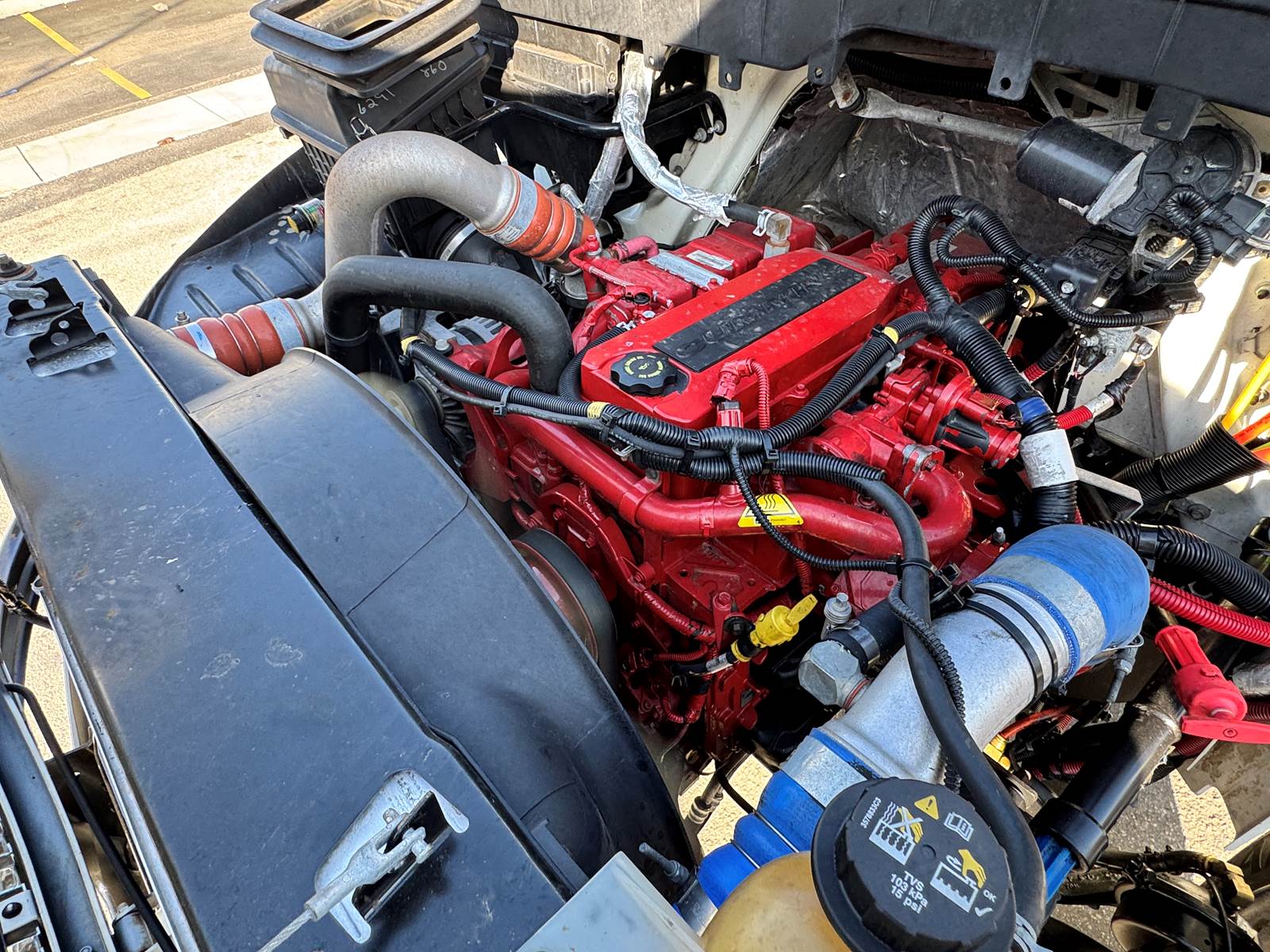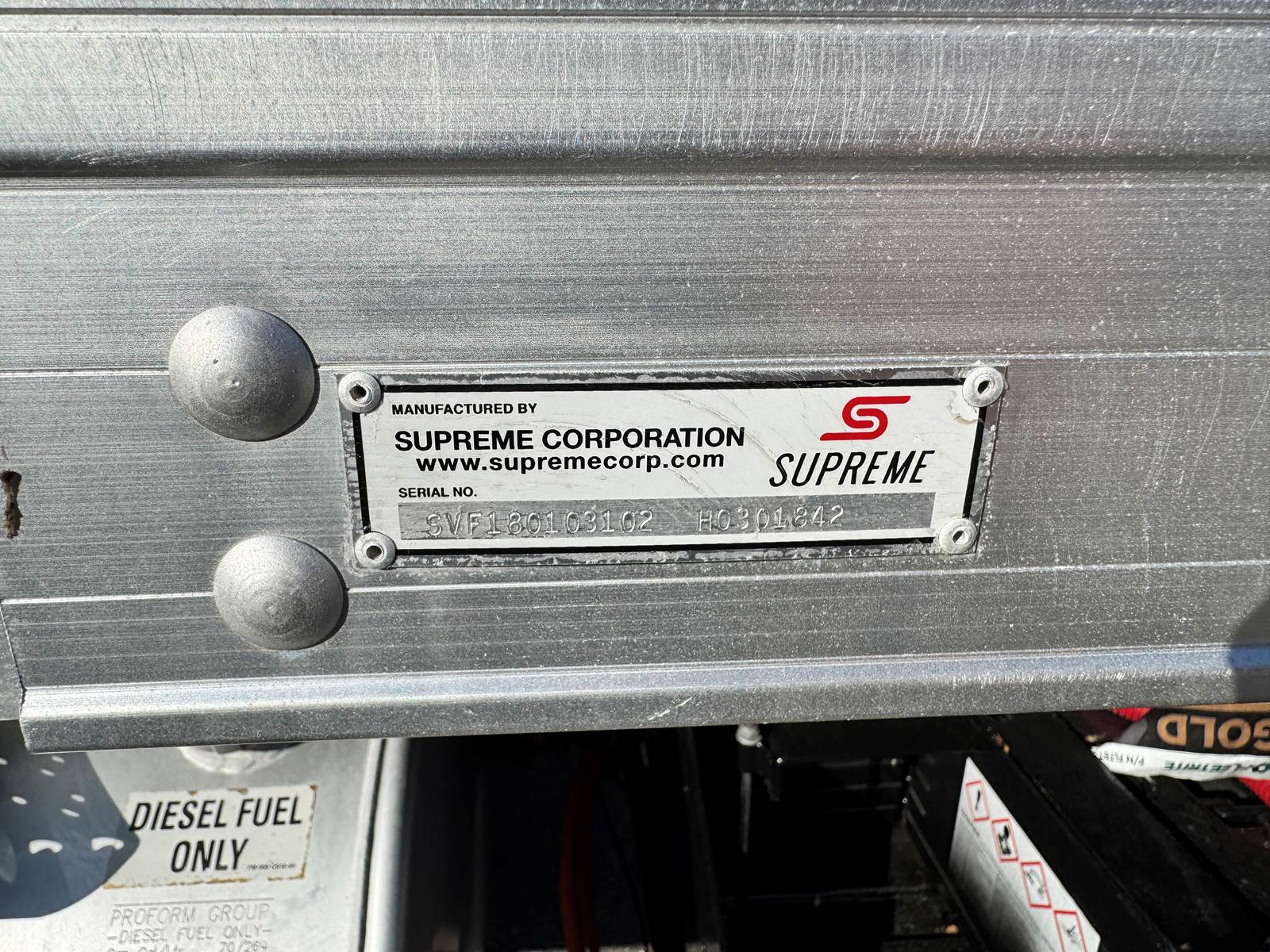 Equipped with an 18-foot Supreme dry van body (Model SVF18103102), this truck features a hardwood floor, roll-up rear door, and Kemlite translucent roof panels that allow natural lighting throughout the cargo area. The box measures 102” wide by 103” high, providing ample cargo capacity for local and regional delivery routes. Air brakes and air suspension enhance safety and ride comfort, while the 90-gallon fuel tank ensures extended range between refueling stops.