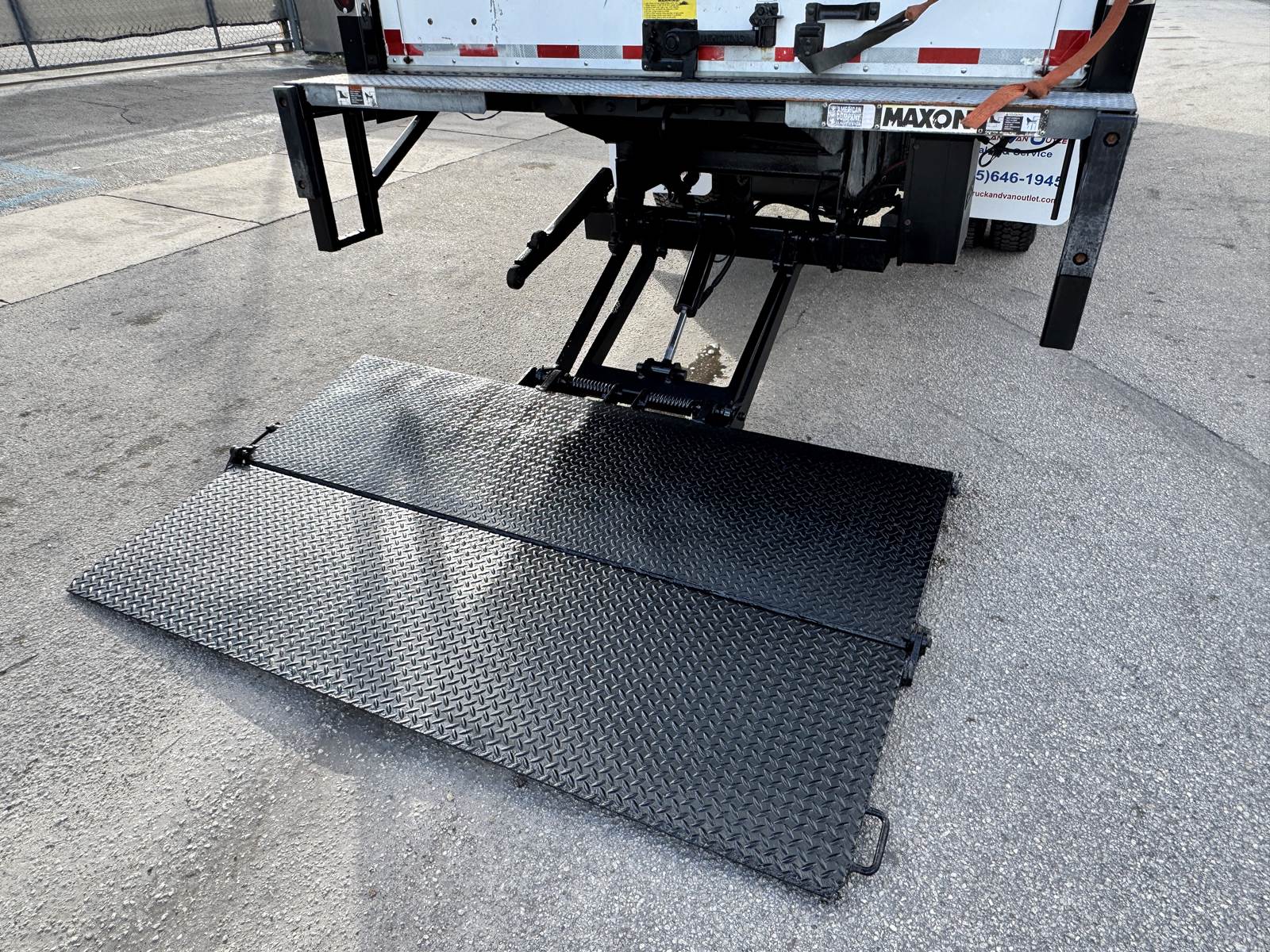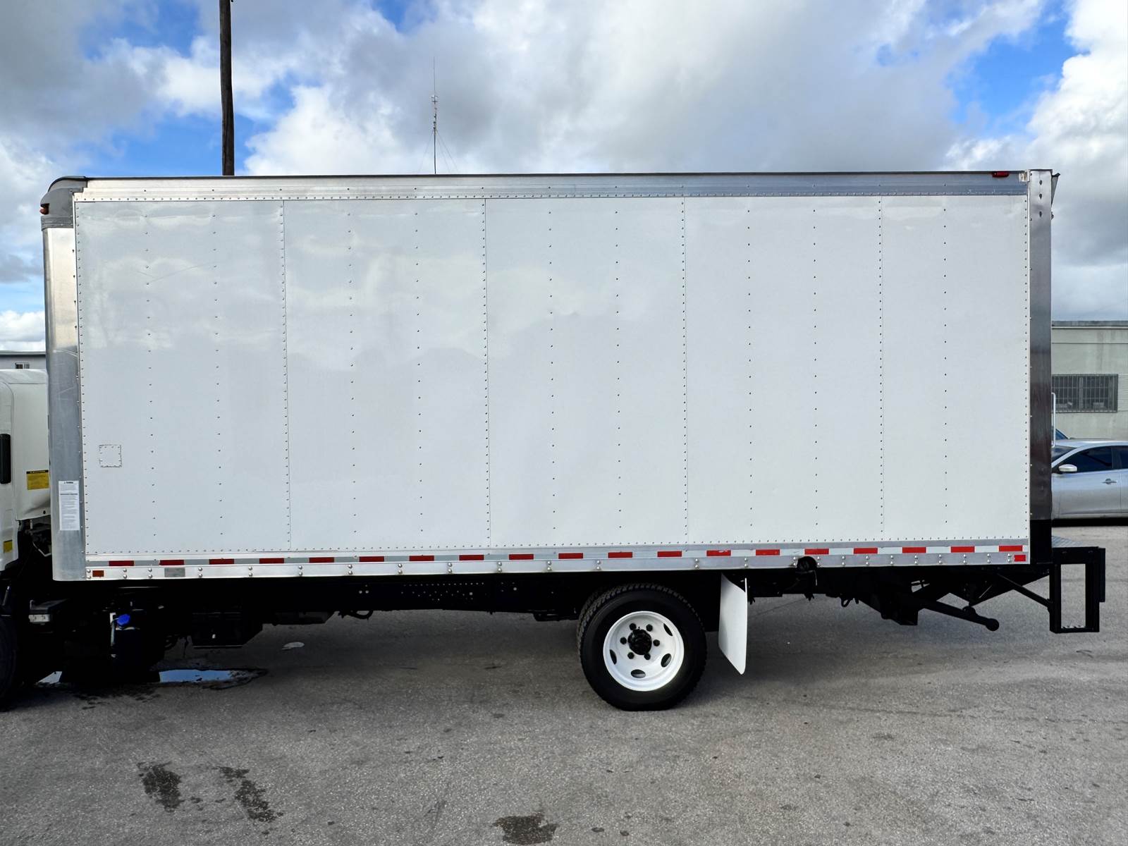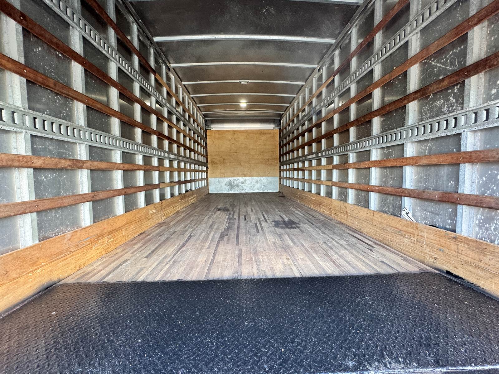Outfitted with a 20-foot Morgan dry van body, the truck features a hardwood floor, roll-up rear door, and translucent roof for interior illumination. The cargo area measures 102” wide by 91” high, offering ample space for a wide range of freight and equipment. A Maxon TE-25 tuck-under liftgate rated for 2,500 lbs ensures efficient and safe loading operations. The unit rides on spring suspension and is equipped with aluminum wheels for reduced weight and improved durability.