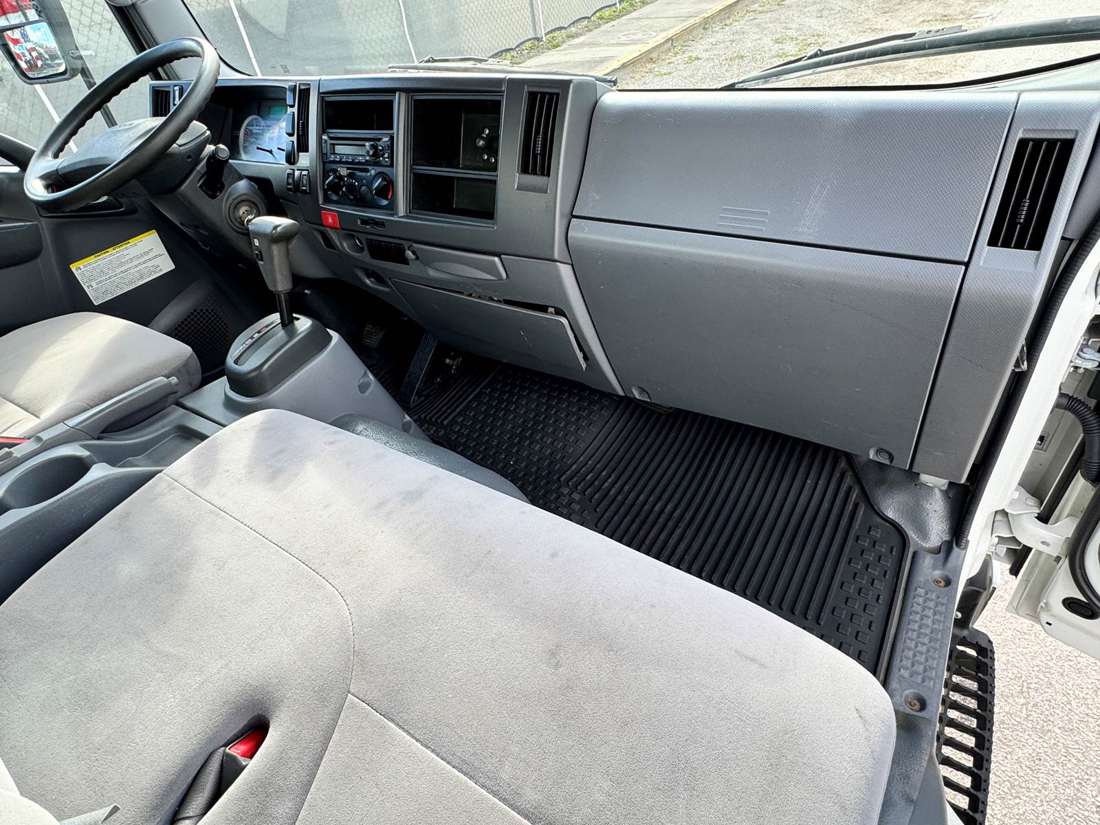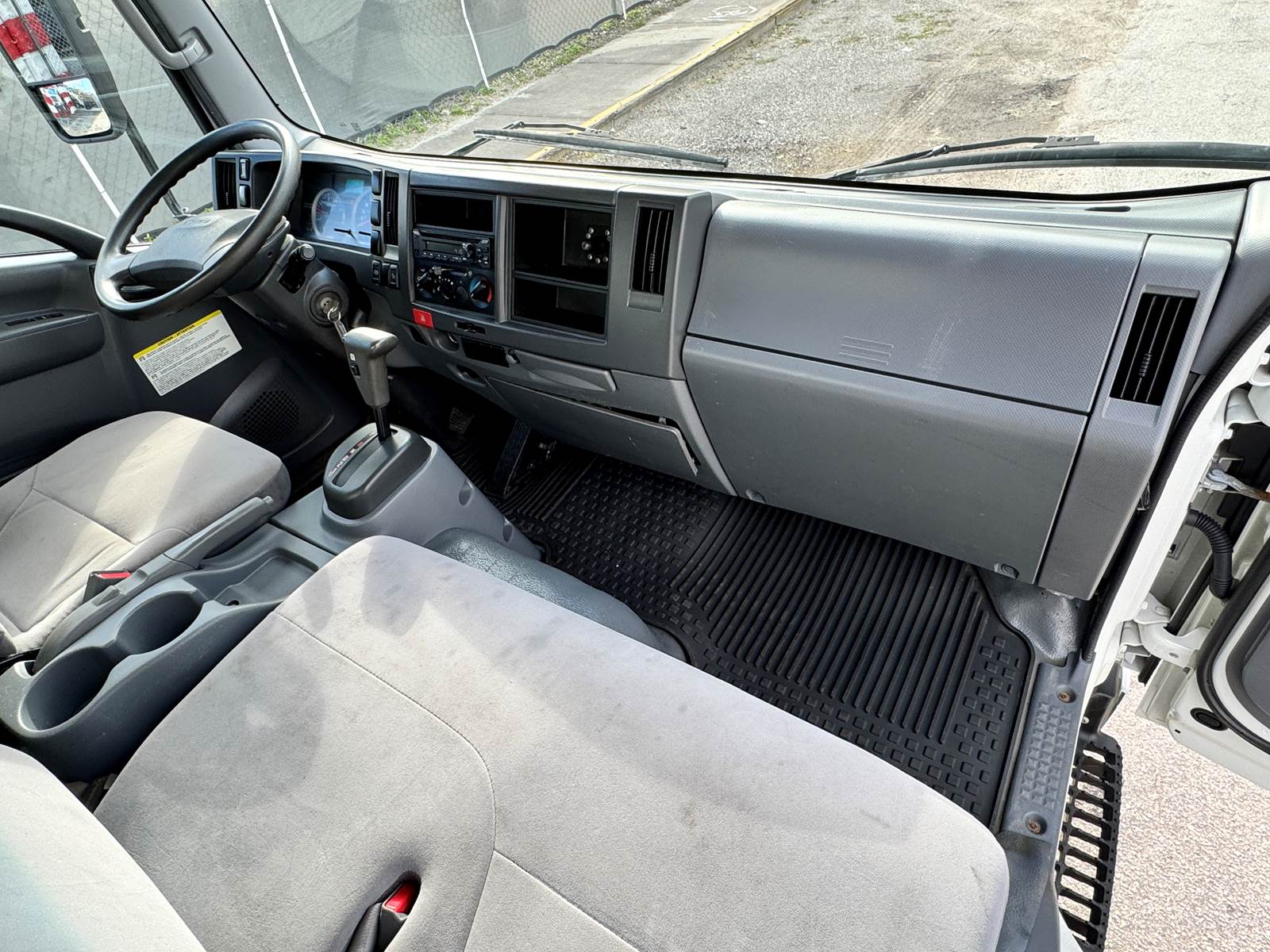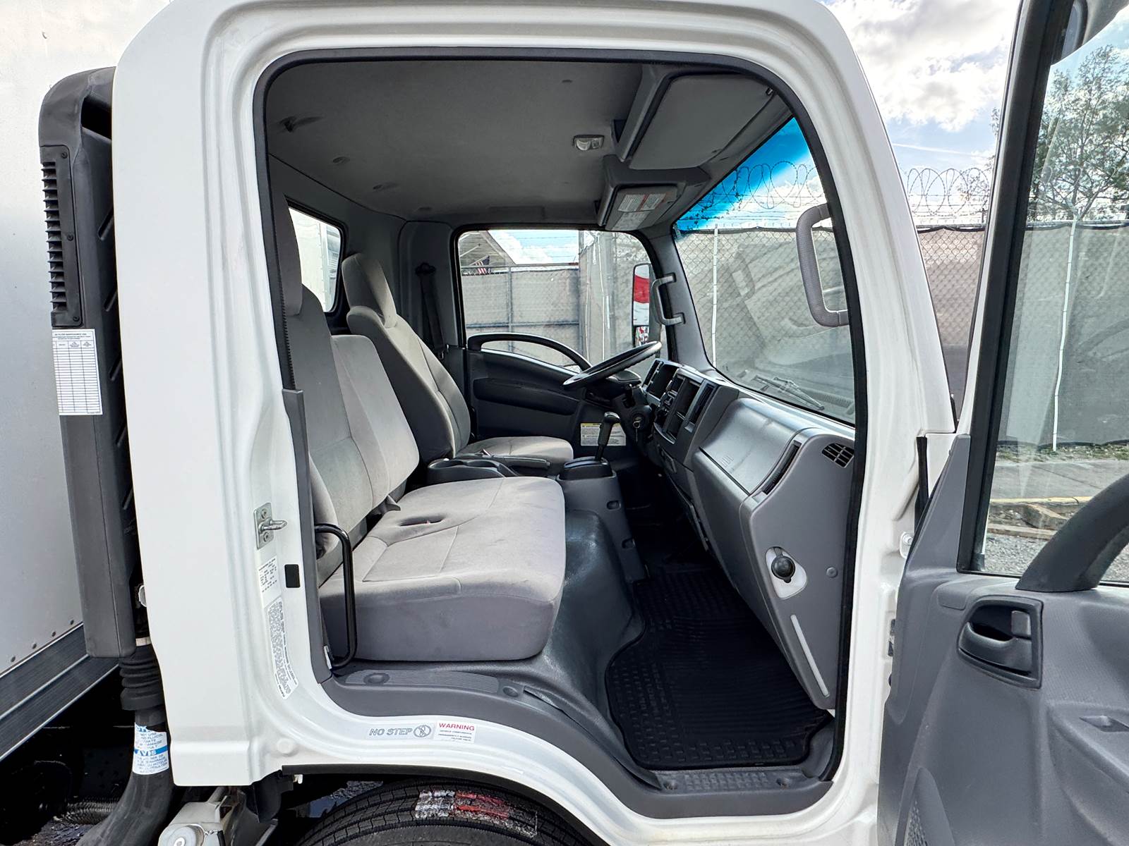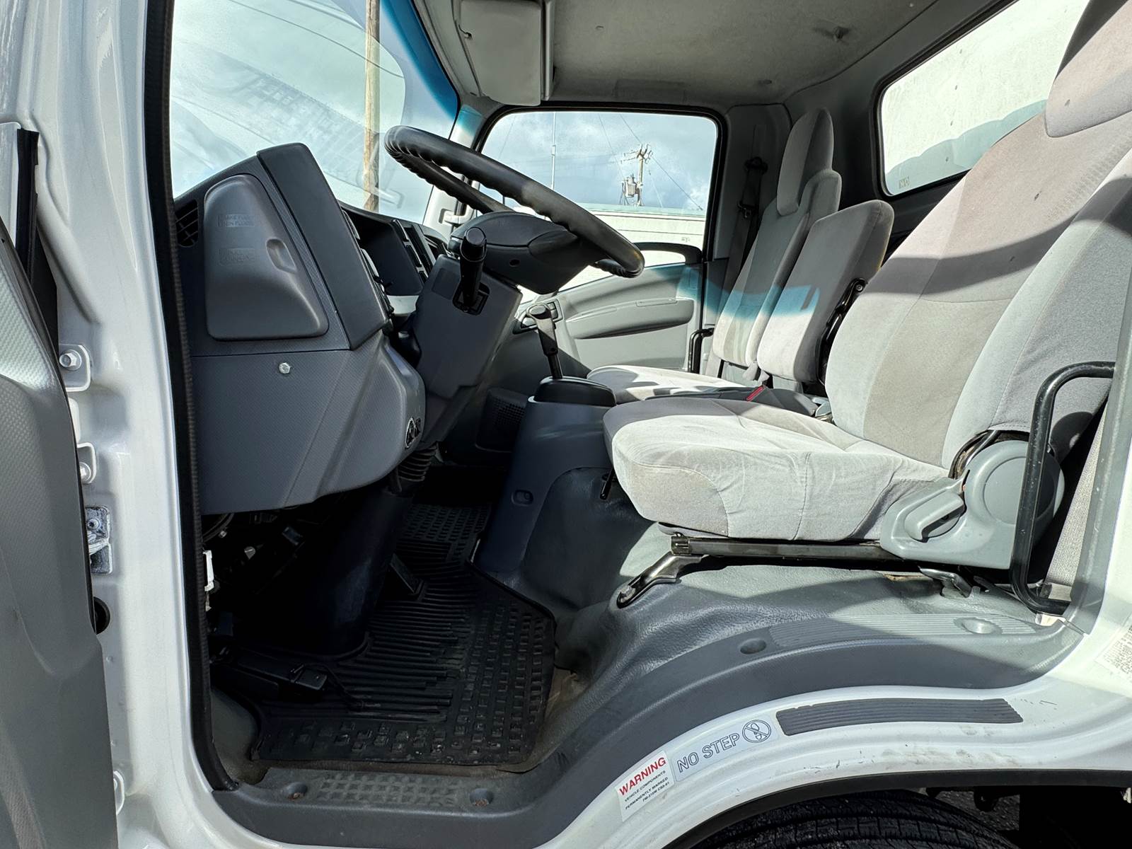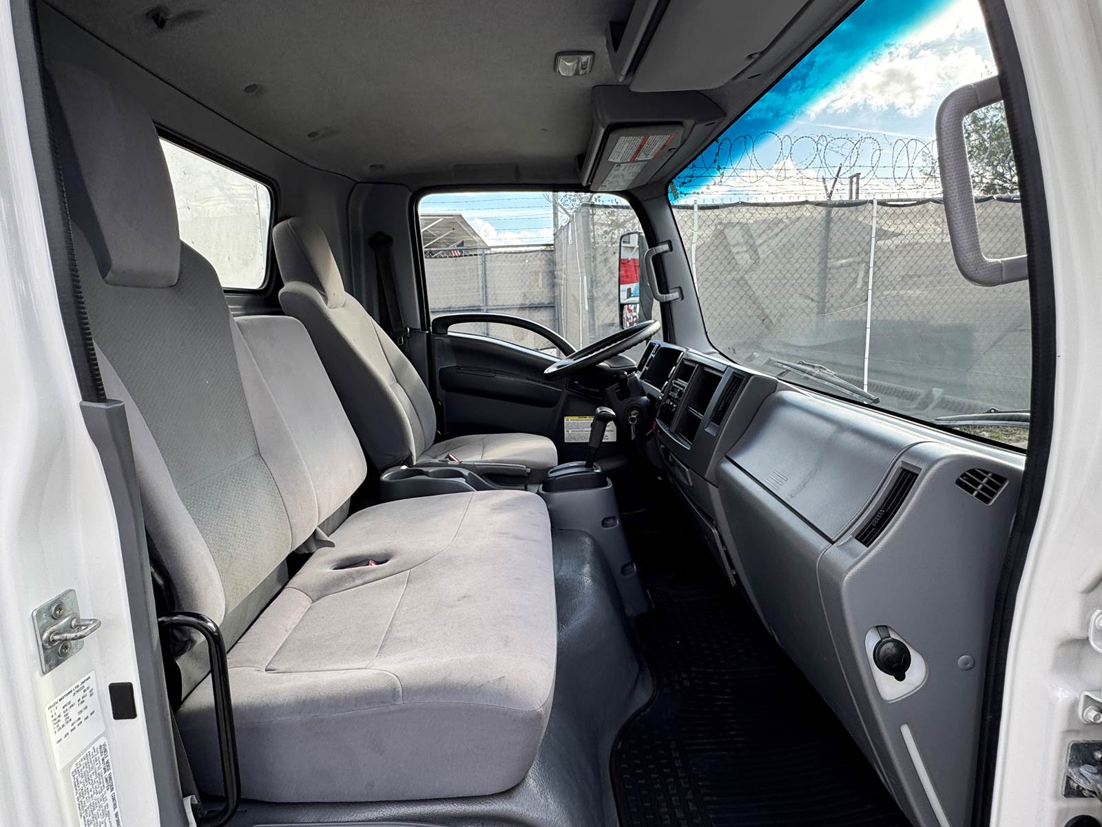 This one-owner, fleet-maintained truck is in excellent condition with full service records available. Finished in white with a gray interior, it presents a professional, ready-to-work appearance suitable for delivery, moving, or equipment transport operations.