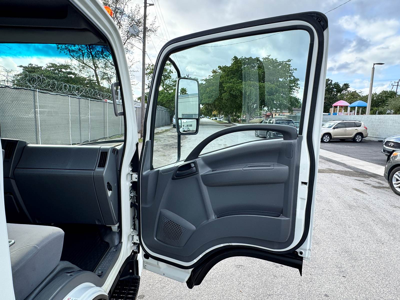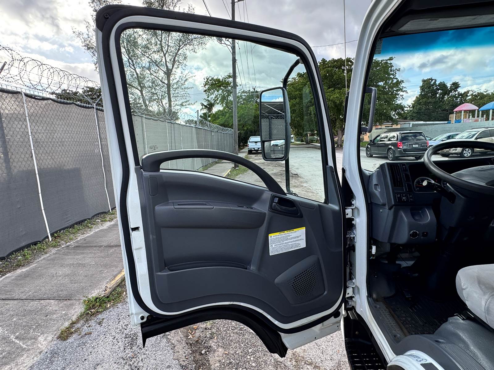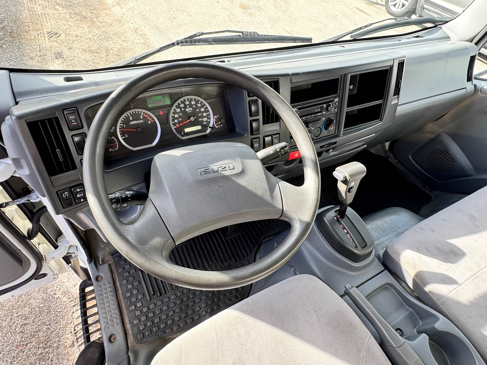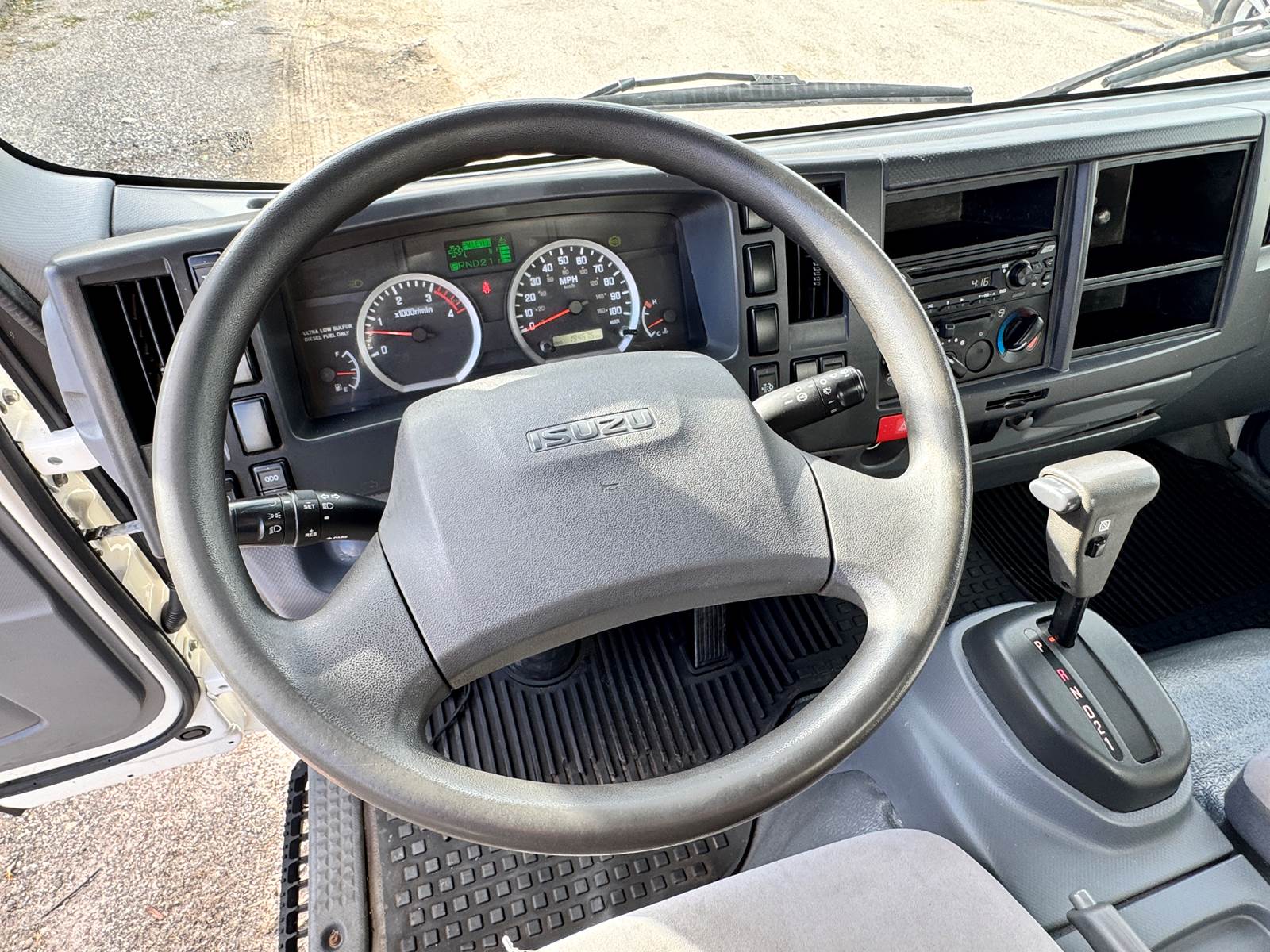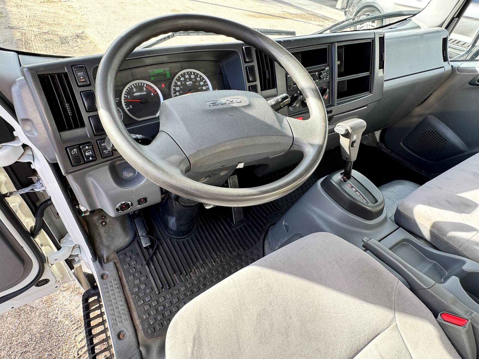 This one-owner, fleet-maintained truck is in excellent condition with full service records available. Finished in white with a gray interior, it presents a professional, ready-to-work appearance suitable for delivery, moving, or equipment transport operations.