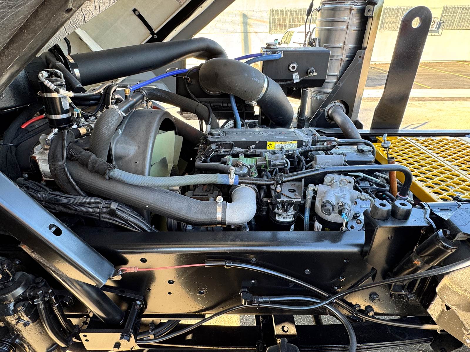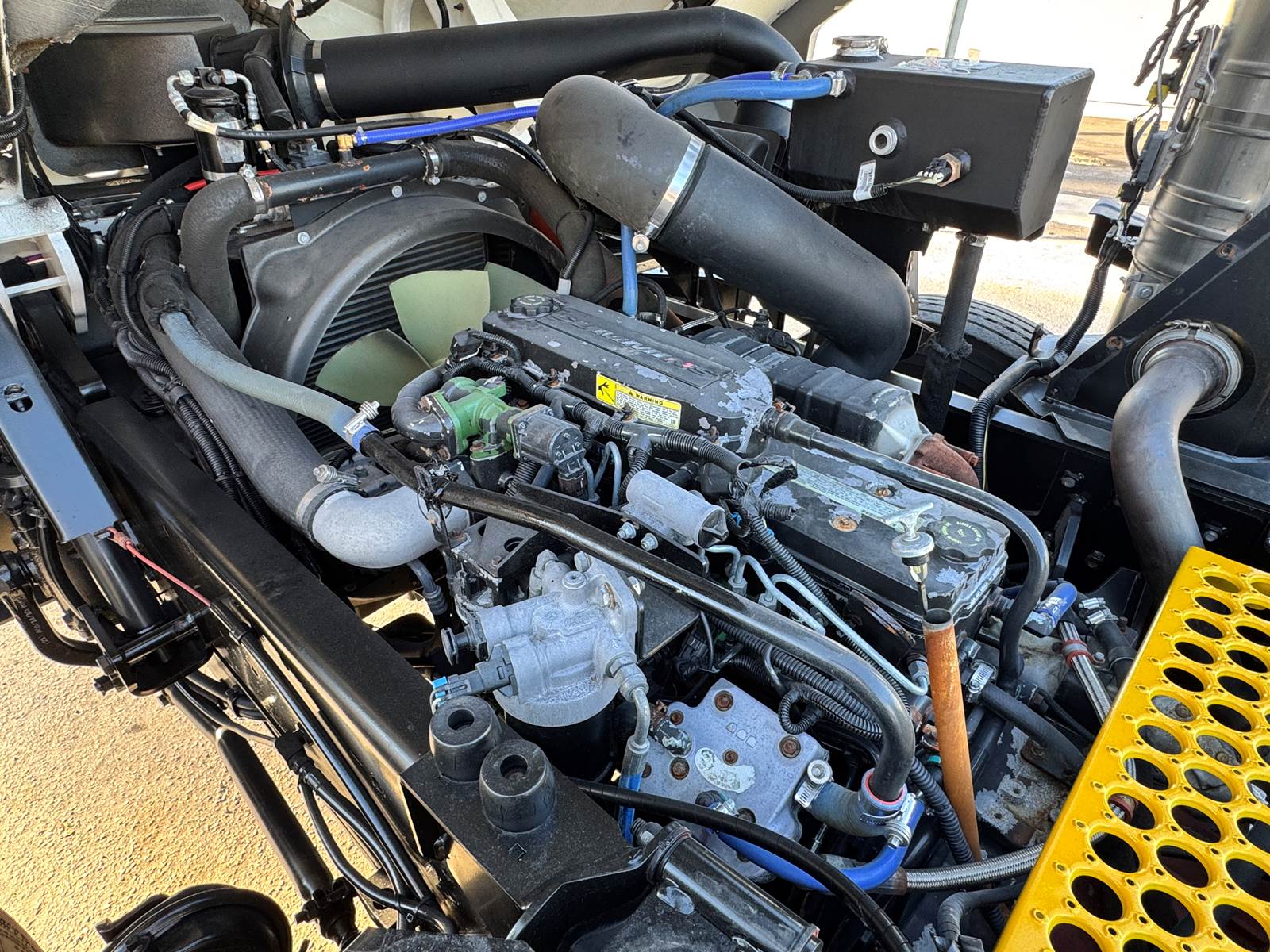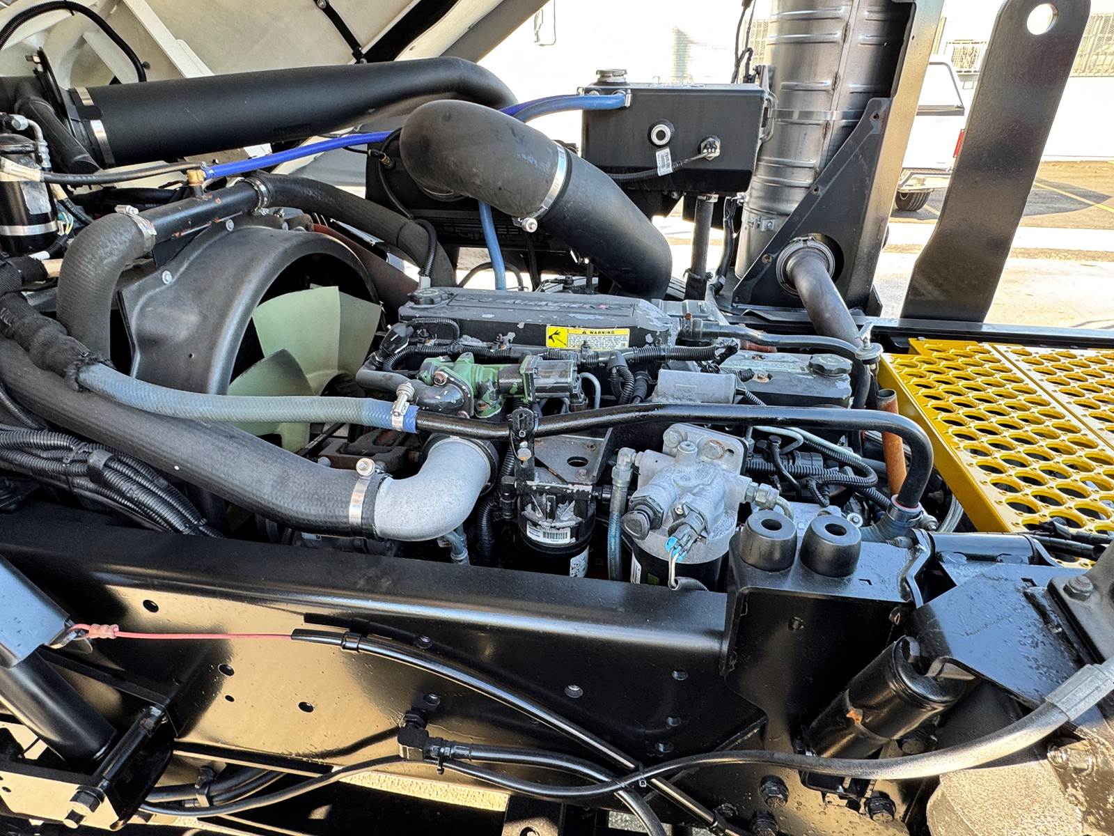 This model features a hydraulic fifth wheel plate for effortless trailer connection, a 50-gallon aluminum fuel tank, and an ergonomic cab with wide visibility and easy access for operators. Maintenance is simplified through a hydraulic cab tilt system and centralized service points, minimizing downtime.