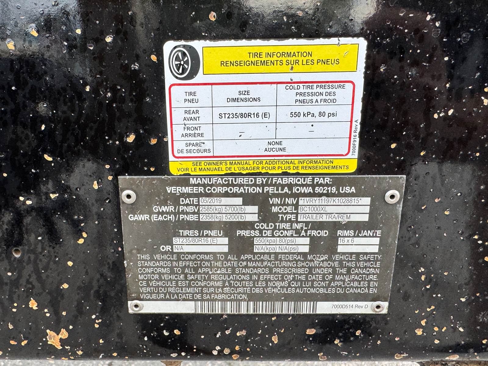 FOR SALE: 2019 VERMEER BC1000XL – 12” TOWABLE WOOD CHIPPER, 89 HP PSI EFI GAS ENGINE
