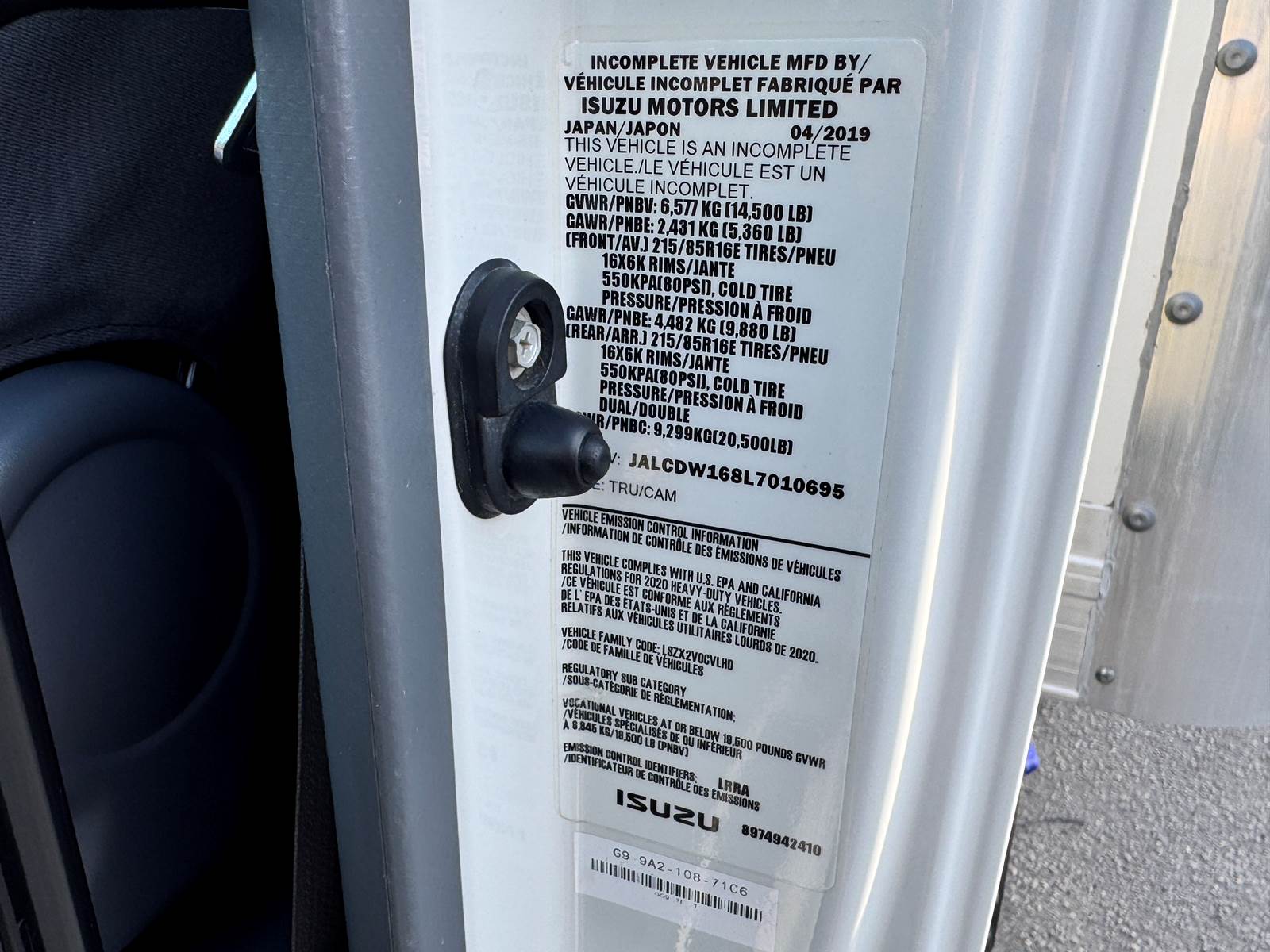The 2020 Chevrolet LCF 4500HD is a versatile medium-duty delivery truck offering durability, maneuverability, and efficiency. Powered by an Isuzu 4HK1-TC 5.2L turbo diesel engine rated at 215 horsepower and mated to an Aisin A465 6-speed automatic transmission, it delivers consistent torque and smooth operation ideal for delivery and commercial transport applications. With a 14,500 lb GVWR and 4x2 drivetrain, it combines payload capacity with ease of handling, especially in tight urban environments.