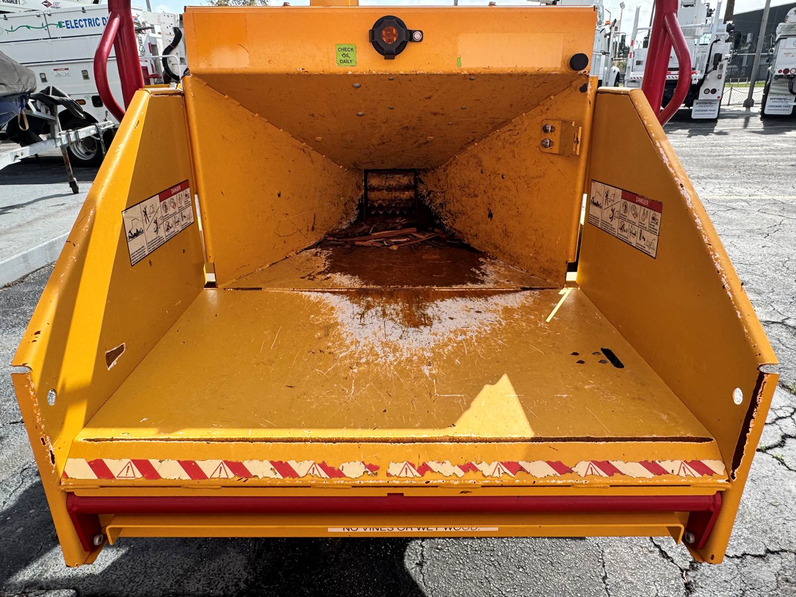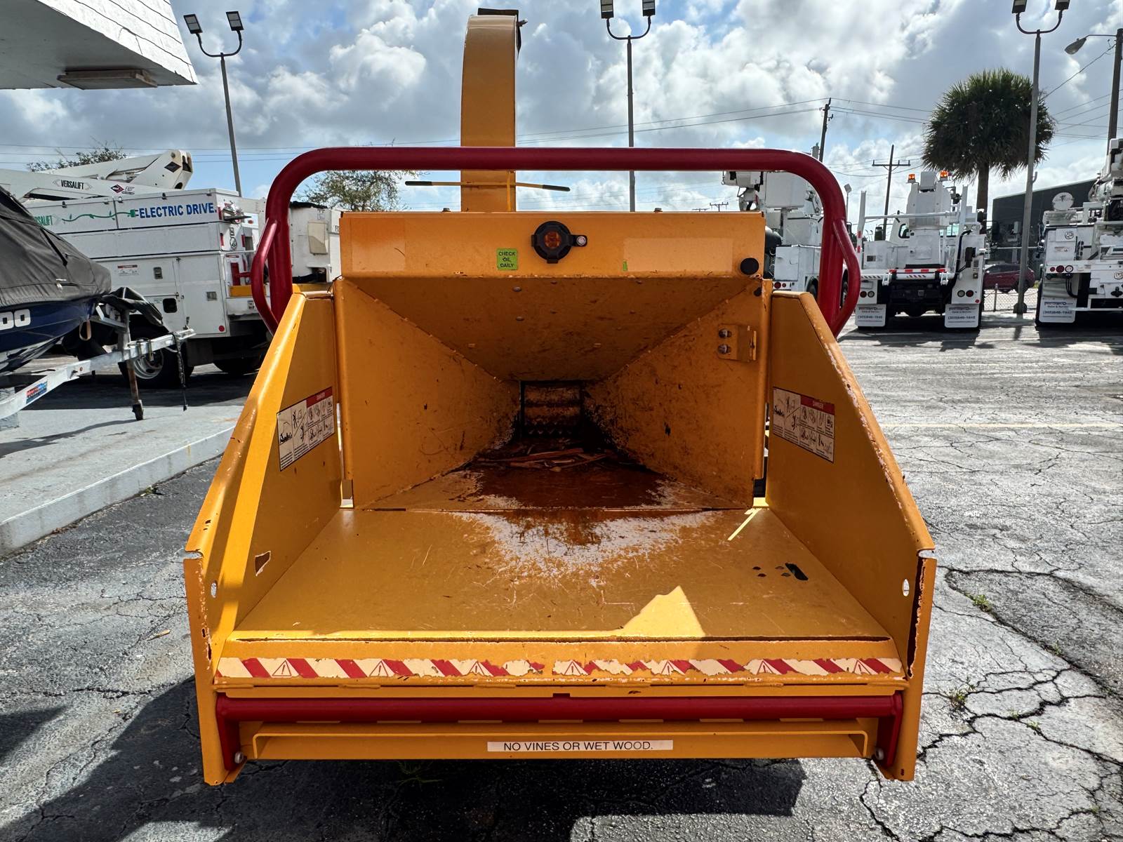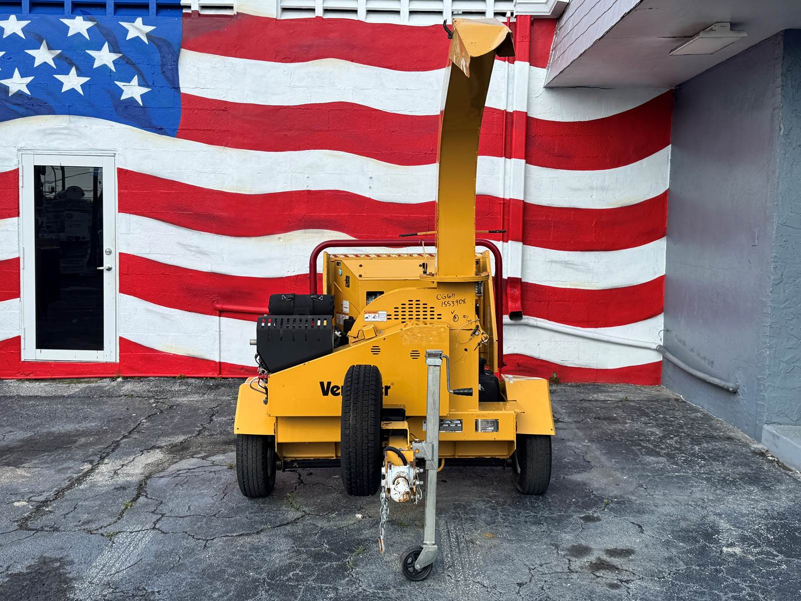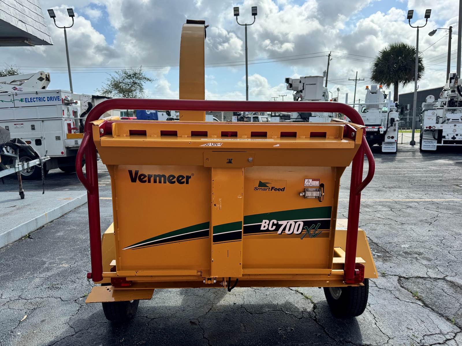 Its compact transport profile—115” length, 71” width, and 71” height—makes it ideal for contractors needing a high-performance chipper that fits into tight spaces and small jobsite footprints. Finished in Vermeer yellow, the unit offers a professional and clean presentation suitable for any fleet.