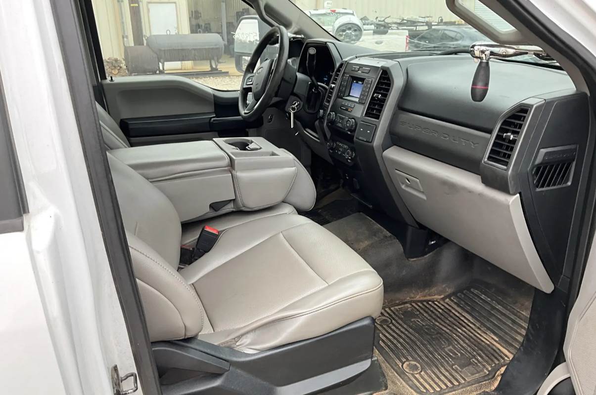 Finished in white, the truck features a white regular cab interior and steel wheels. With a GVWR of 19,500 lbs, a front axle rating of 7,500 lbs, a rear axle rating of 14,706 lbs, a 169-inch wheelbase, and a 40-gallon diesel fuel tank, this F-550 delivers dependable performance and capacity for demanding aerial work.