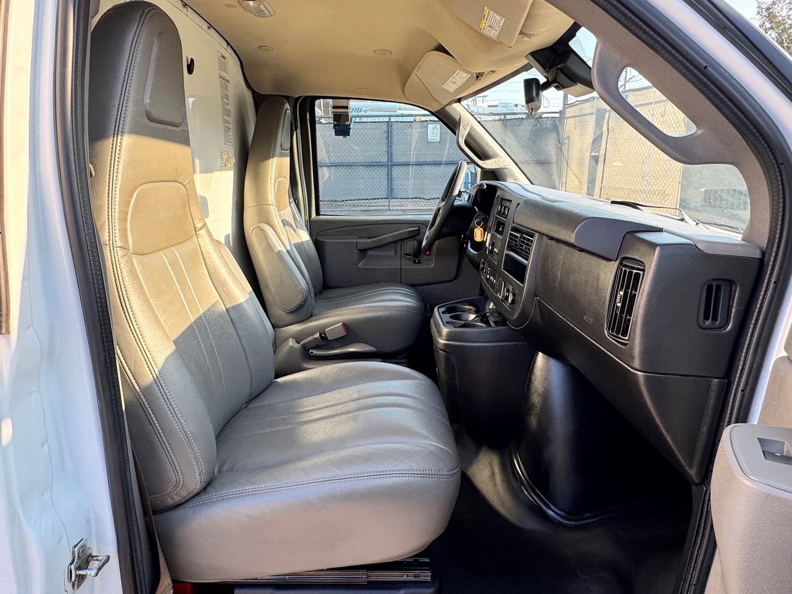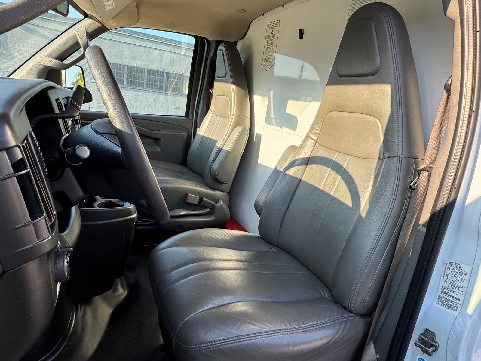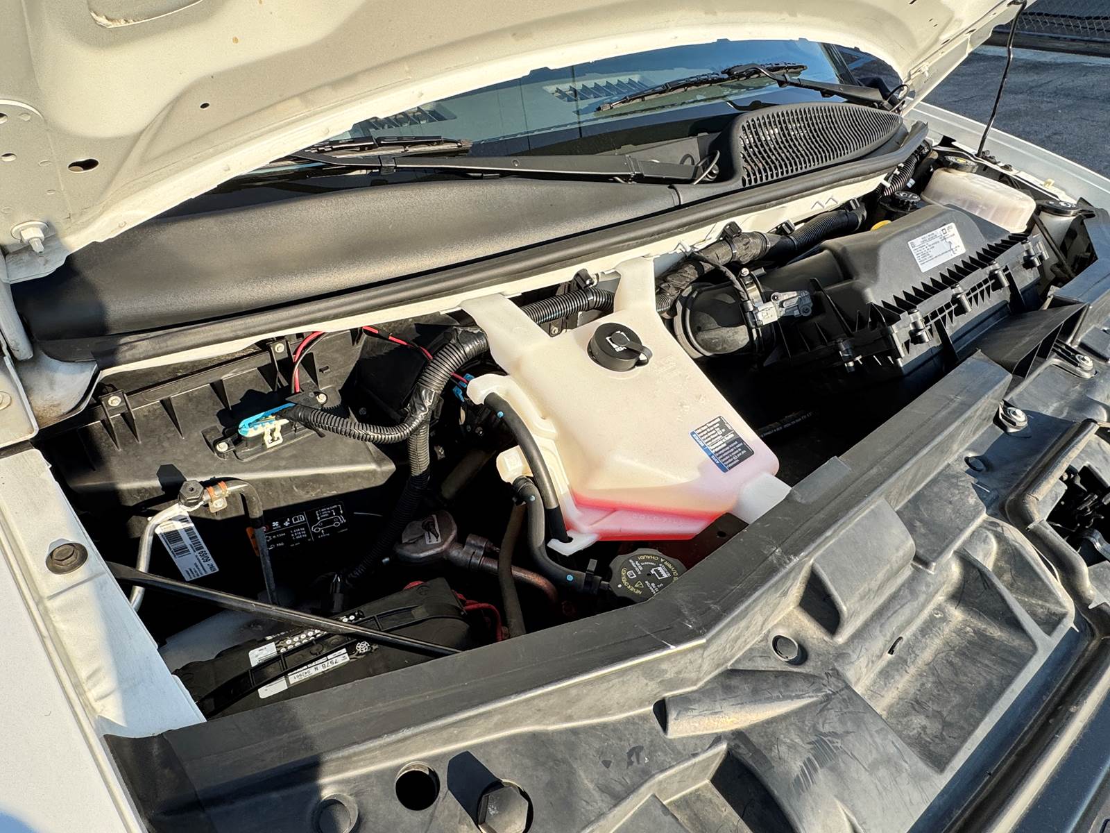 With a GVWR of 9,900 lbs, a front axle rating of 4,100 lbs, a rear axle rating of 6,084 lbs, a 139-inch wheelbase, and a 25-gallon gasoline fuel tank, this Savana 3500 offers efficient payload capacity in a compact box configuration. Additional equipment includes Stabilitrak, rearview camera, OnStar services with 4G LTE Wi-Fi, Power Convenience Package, Driver Convenience Package, forward collision alert, lane departure warning, A/C, cruise control, power windows, and power locks. This unit is a one-owner, fleet-maintained vehicle with a clean CARFAX history.