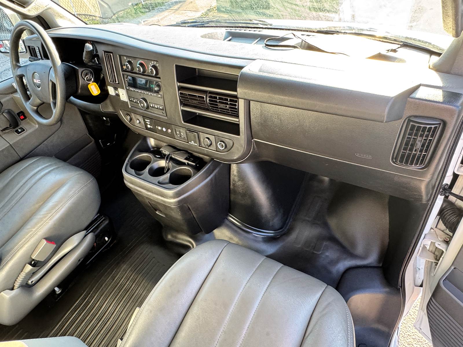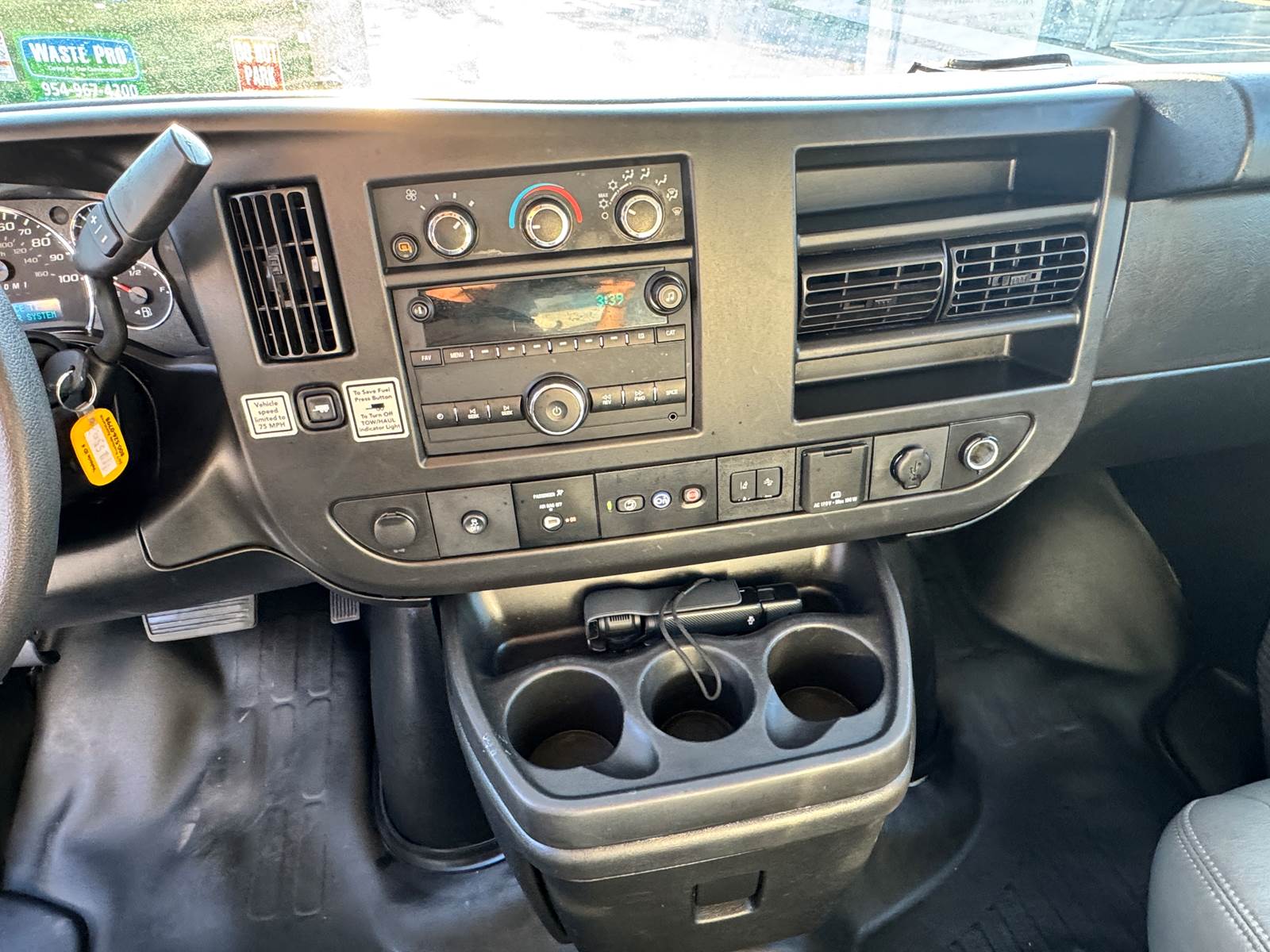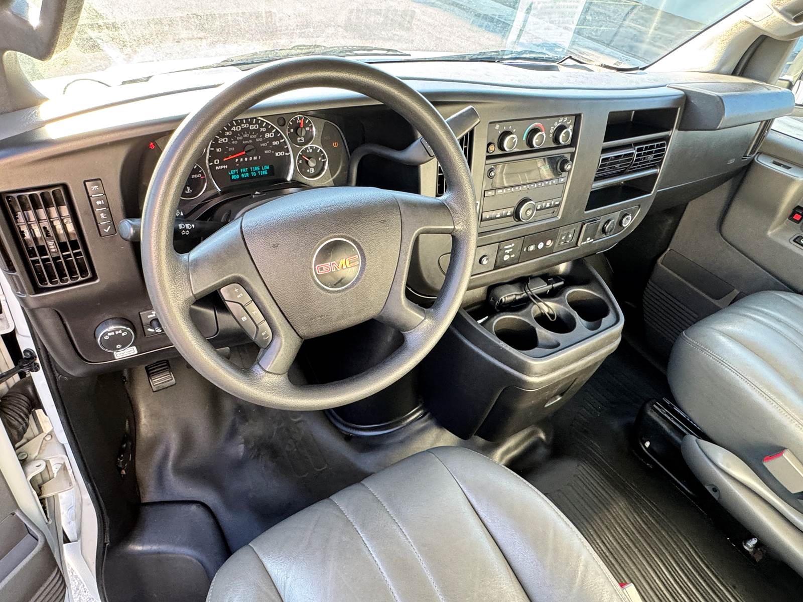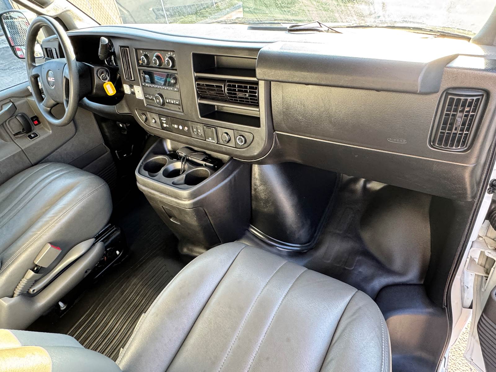 With a GVWR of 9,900 lbs, a front axle rating of 4,100 lbs, a rear axle rating of 6,084 lbs, a 139-inch wheelbase, and a 25-gallon gasoline fuel tank, this Savana 3500 offers efficient payload capacity in a compact box configuration. Additional equipment includes Stabilitrak, rearview camera, OnStar services with 4G LTE Wi-Fi, Power Convenience Package, Driver Convenience Package, forward collision alert, lane departure warning, A/C, cruise control, power windows, and power locks. This unit is a one-owner, fleet-maintained vehicle with a clean CARFAX history.