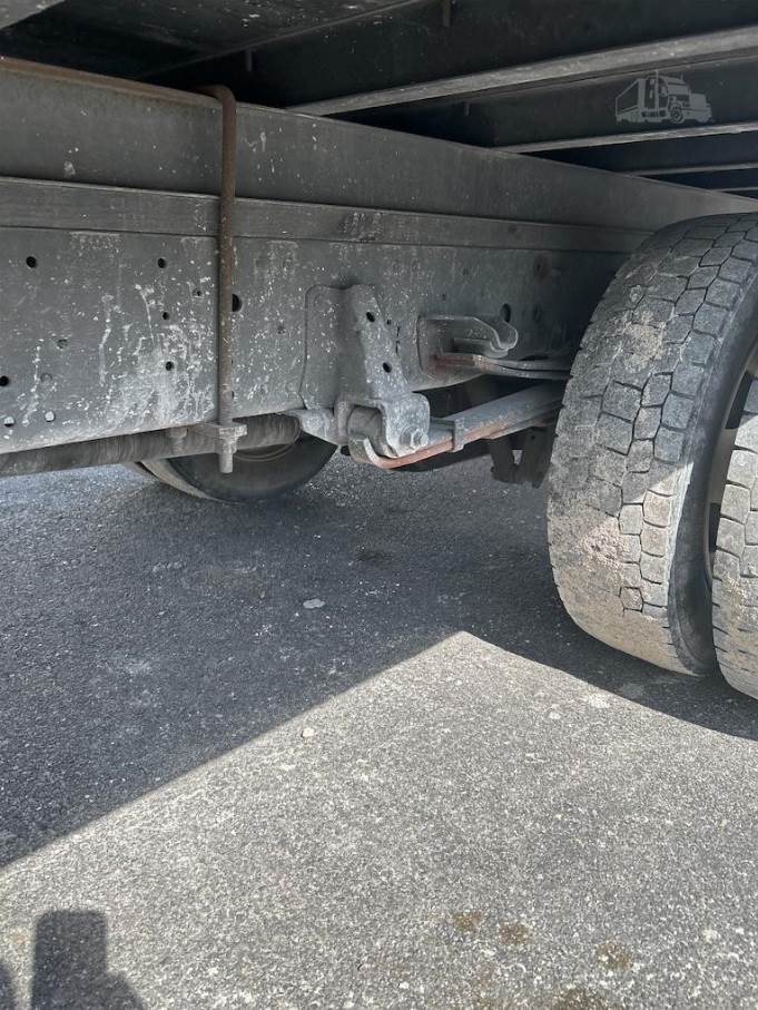 The truck rides on a spring suspension system with hydraulic brakes and utilizes a single rear axle configuration. It carries an 18,000 lb GVWR supported by a 6,630 lb front axle rating and an 11,020 lb rear axle rating, along with a 176-inch wheelbase and all-steel construction, providing a stable and capable platform for both crew transport and cargo hauling.