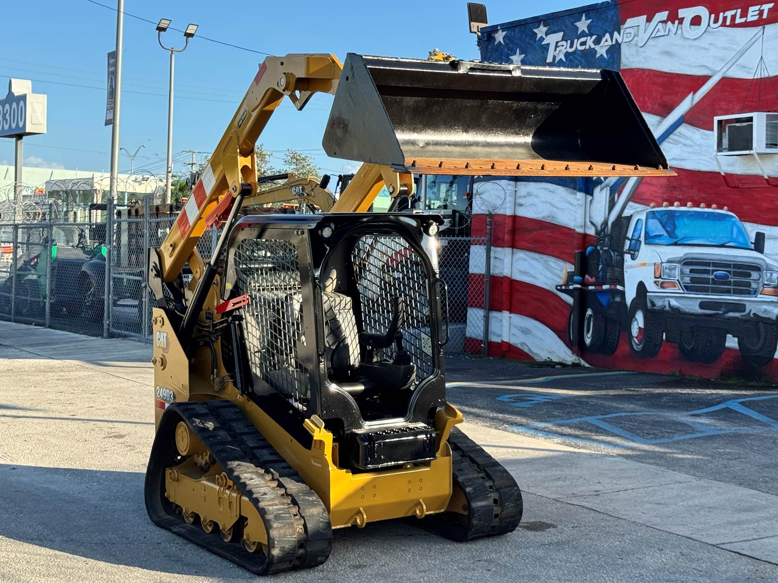 Built with Caterpillar’s suspended undercarriage, the 249D3 maintains strong traction and stability across uneven terrain, reducing operator fatigue and enhancing daily productivity. The open-cab configuration provides clear visibility around the machine, while the joystick controls offer precise handling for detailed work. A general-purpose bucket accompanies the loader, giving it the flexibility needed for earthmoving, cleanup, and site-preparation tasks.