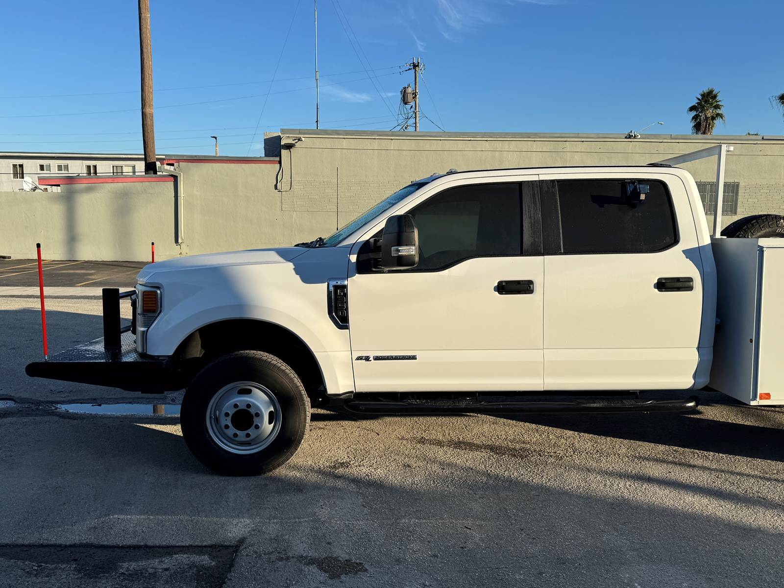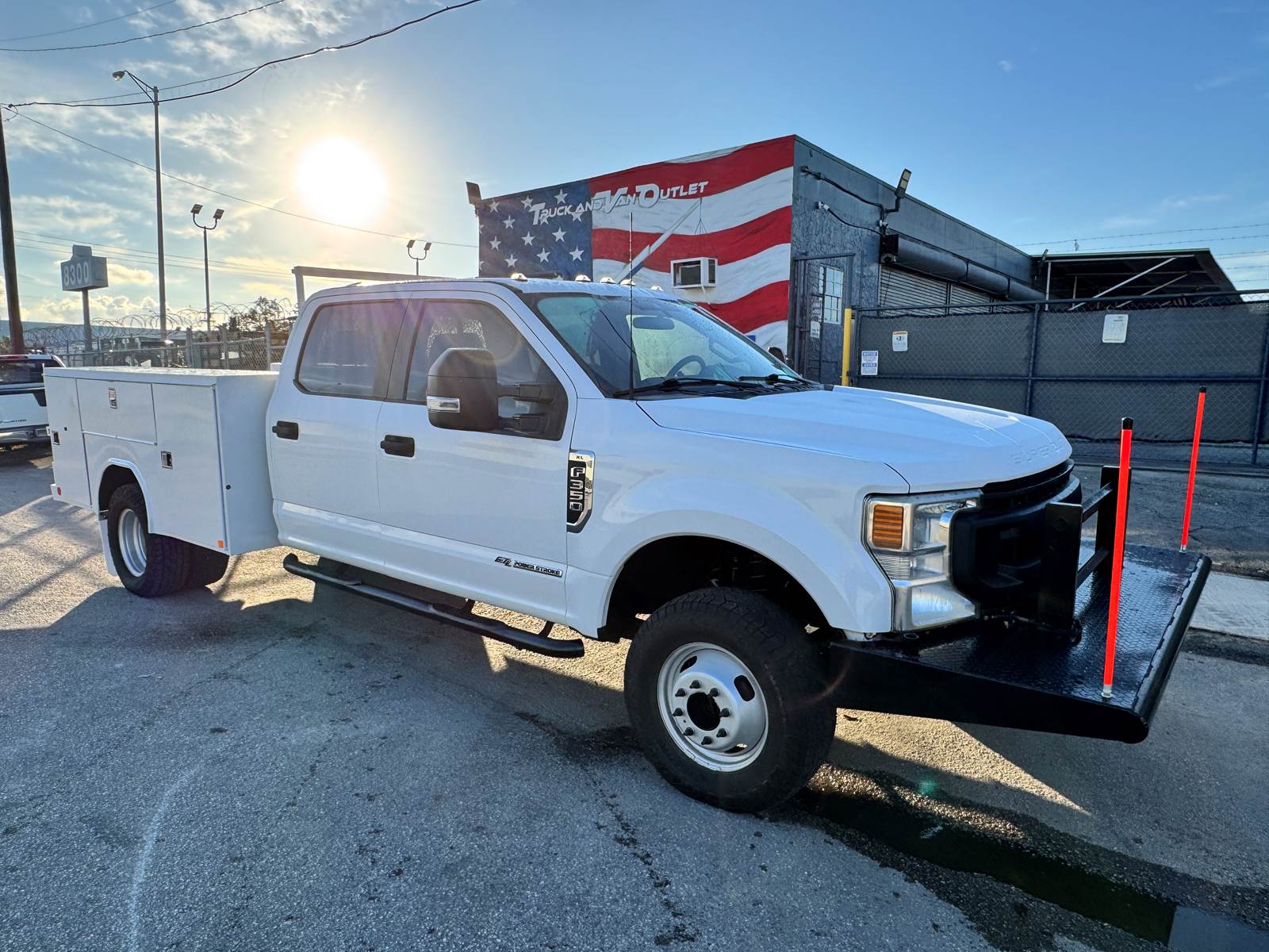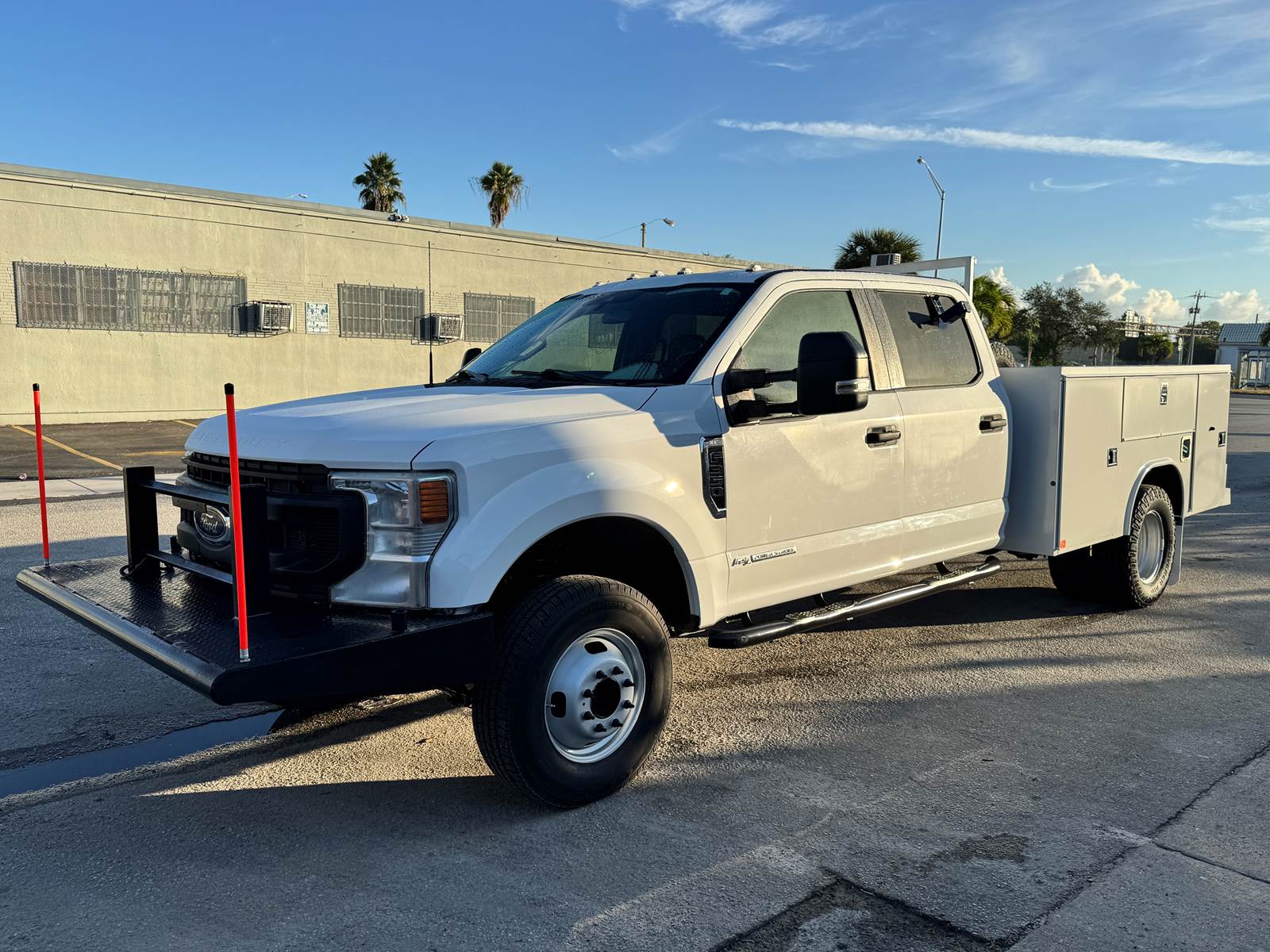 The 2022 Ford F-350 Super Duty Crew Cab is a professional-grade service utility truck engineered for heavy-duty field operations and maintenance work. Equipped with a 6.7L Power Stroke Turbo Diesel V8 engine producing 330 horsepower and mated to a TorqShift 10-speed automatic transmission, it delivers impressive torque, smooth shifting, and reliable performance across demanding job environments. The 4x4 drivetrain ensures superior traction and stability on rough or unpaved terrain, making it ideal for contractors, fleet operators, and utility companies.