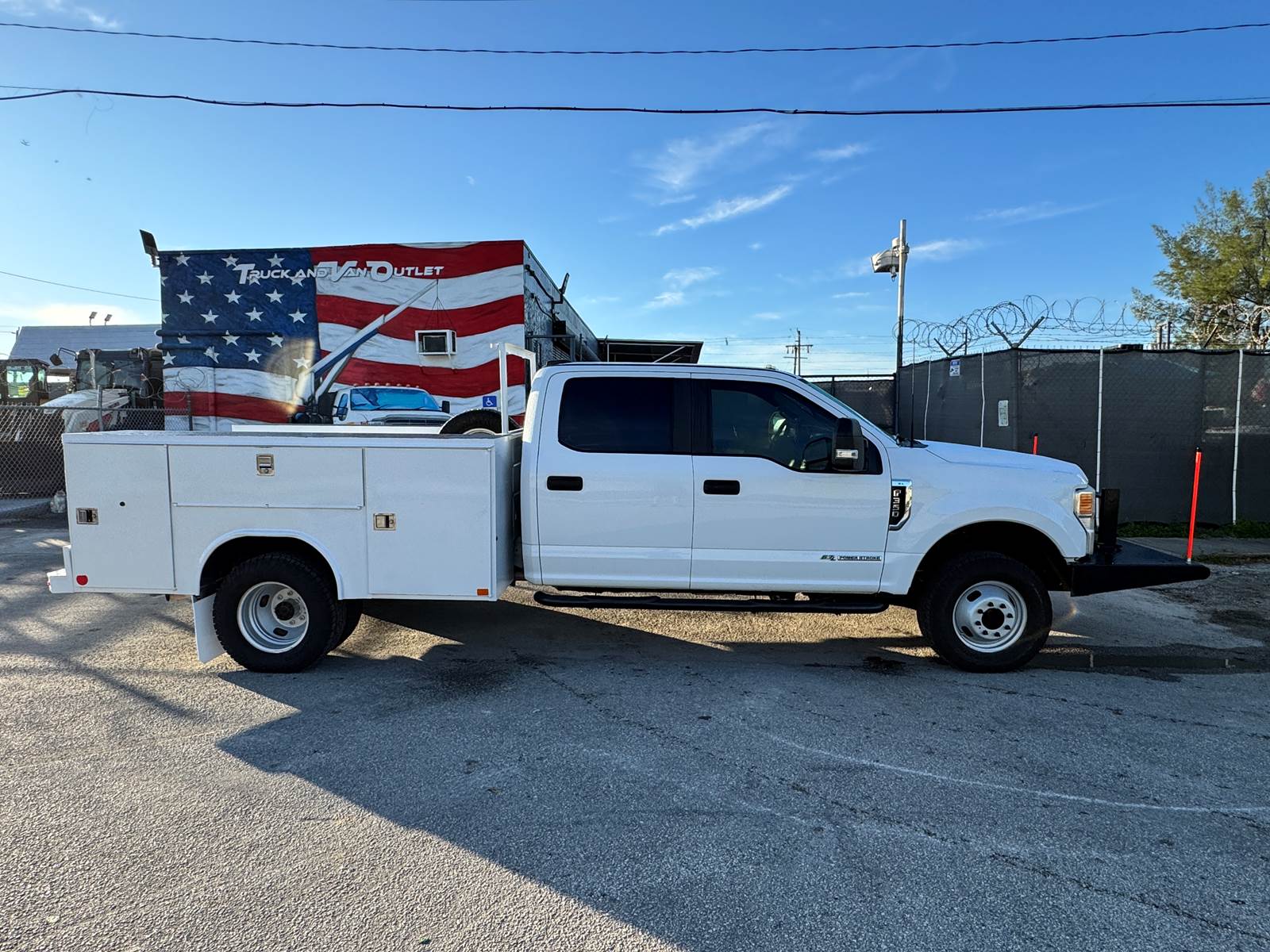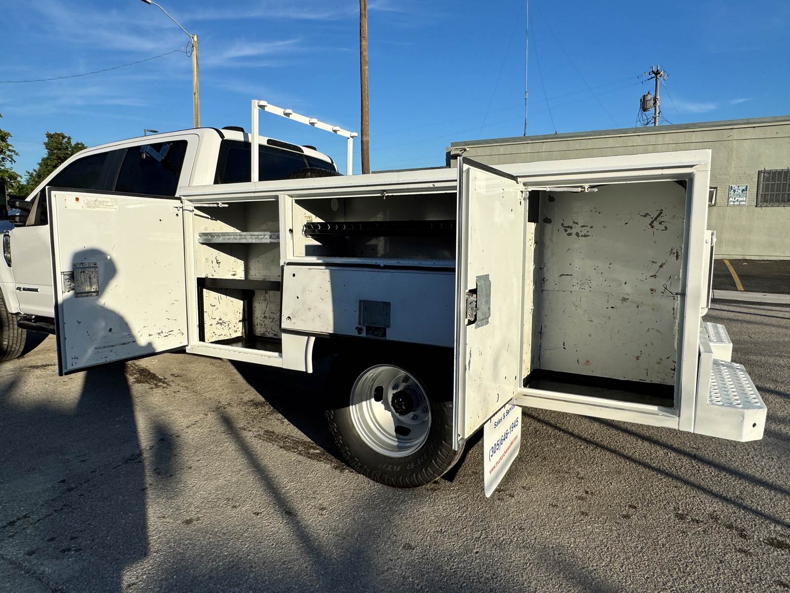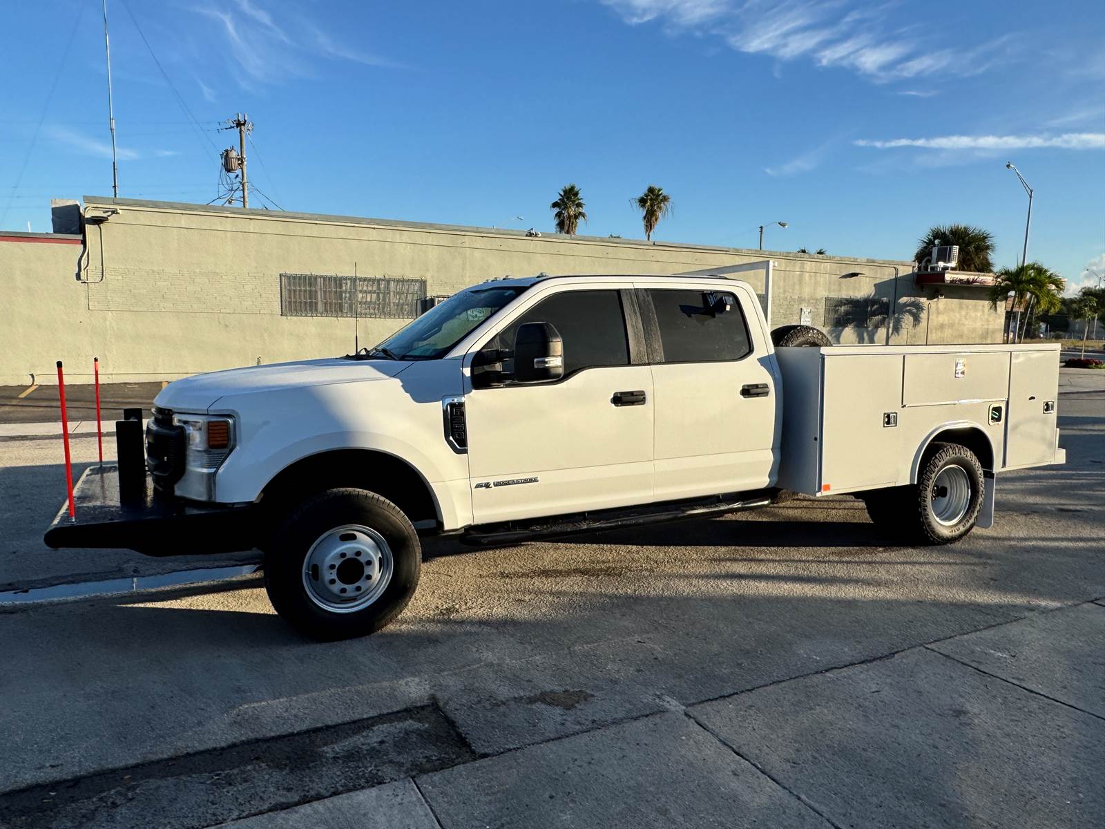 The 2022 Ford F-350 Super Duty Crew Cab is a professional-grade service utility truck engineered for heavy-duty field operations and maintenance work. Equipped with a 6.7L Power Stroke Turbo Diesel V8 engine producing 330 horsepower and mated to a TorqShift 10-speed automatic transmission, it delivers impressive torque, smooth shifting, and reliable performance across demanding job environments. The 4x4 drivetrain ensures superior traction and stability on rough or unpaved terrain, making it ideal for contractors, fleet operators, and utility companies.