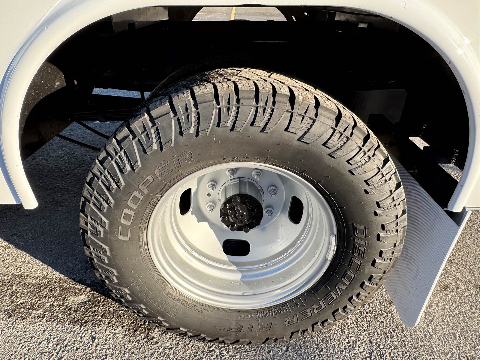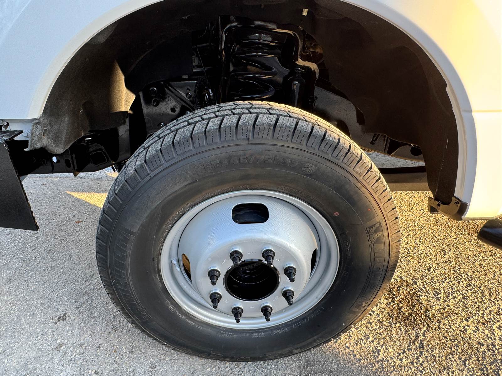 Outfitted with a 9-foot Reading steel service body, the truck features multiple lockable compartments for secure tool storage, a wide open bed for equipment transport, and a heavy-duty rear step bumper for accessibility. The body is built for long-term durability, with corrosion-resistant materials and reinforced compartment doors. Spring hydraulic single rear suspension enhances handling and load stability, while the truck’s 14,000 lb GVWR offers substantial payload and towing capacity for various service applications.
