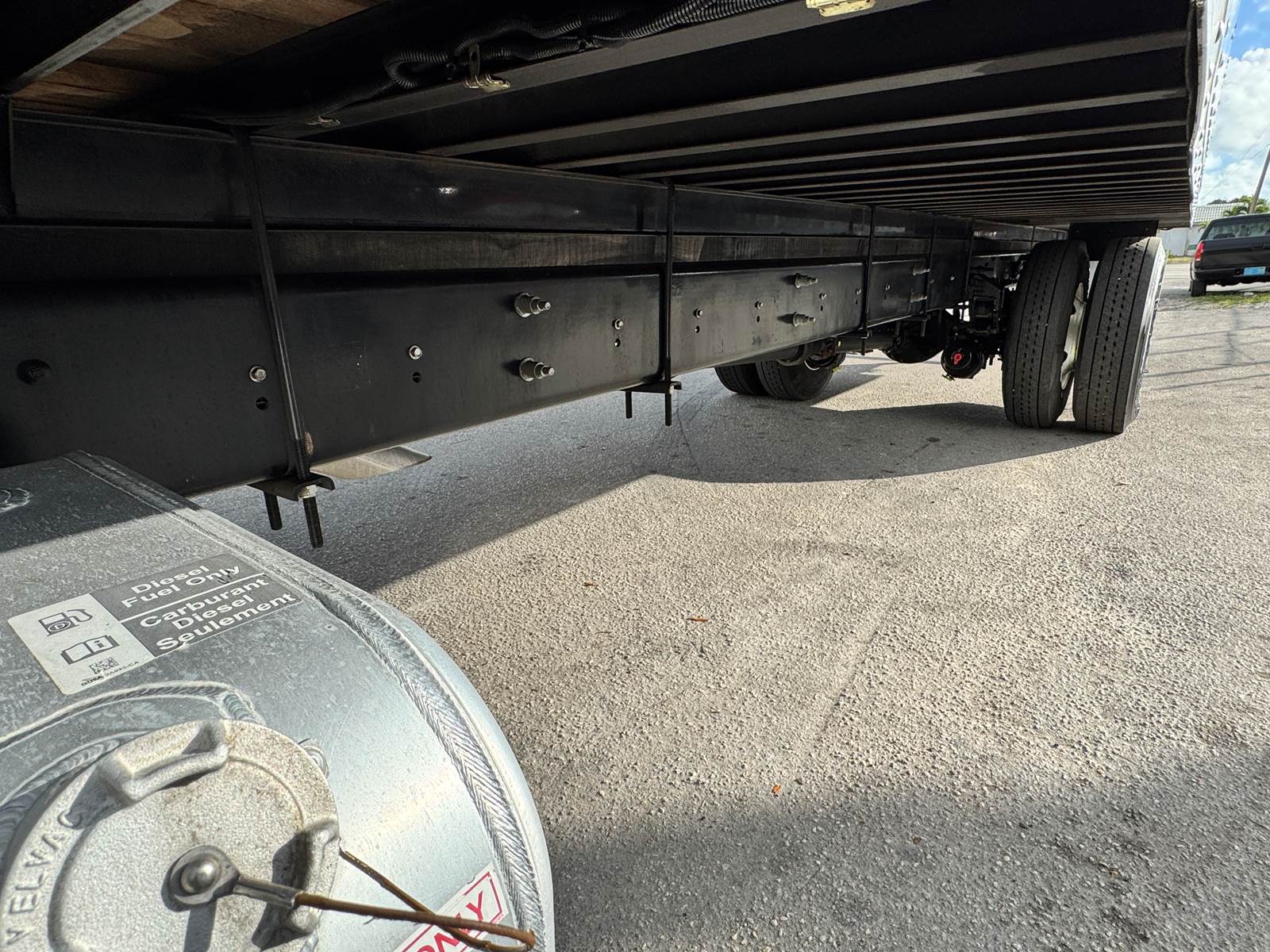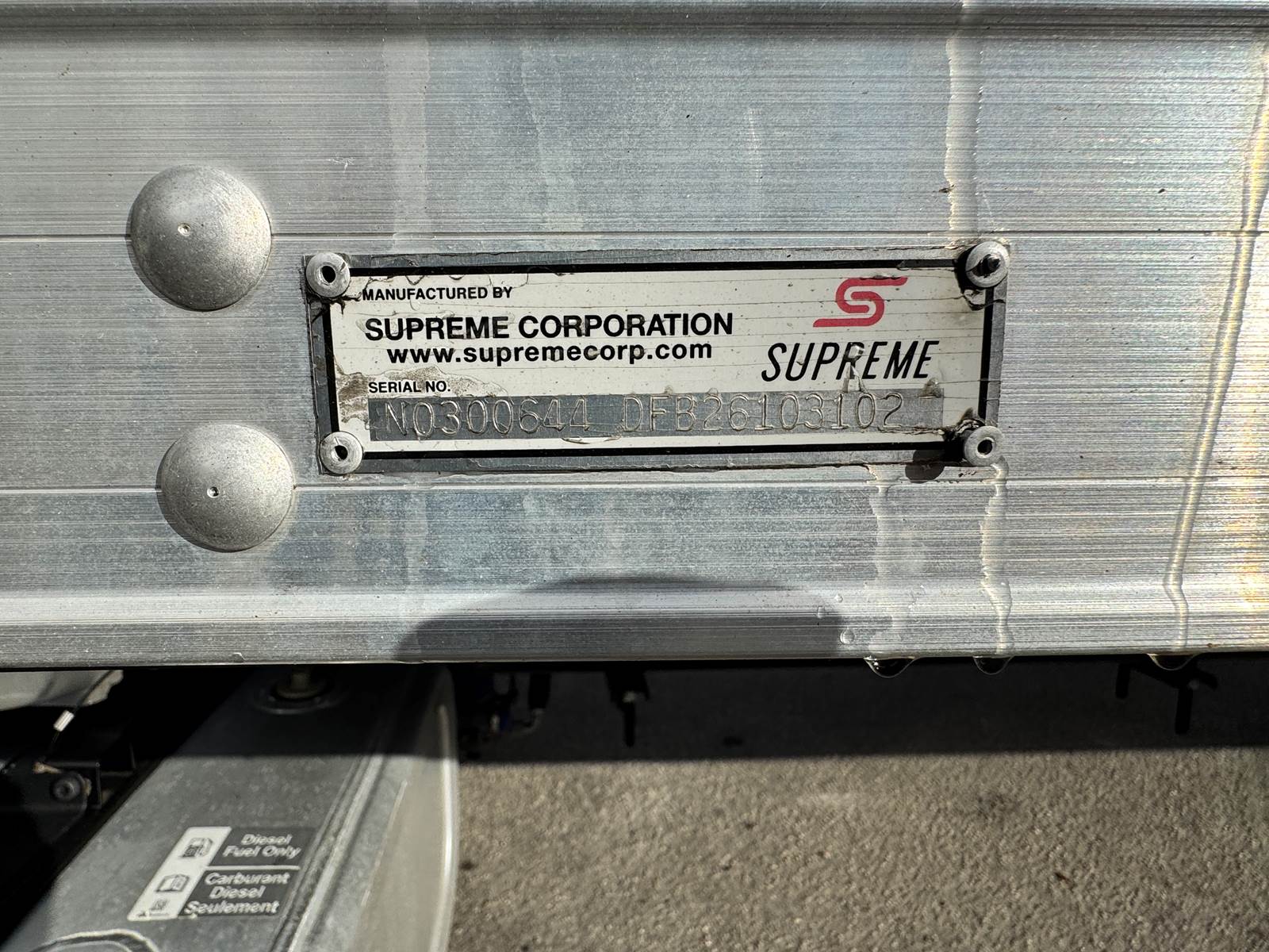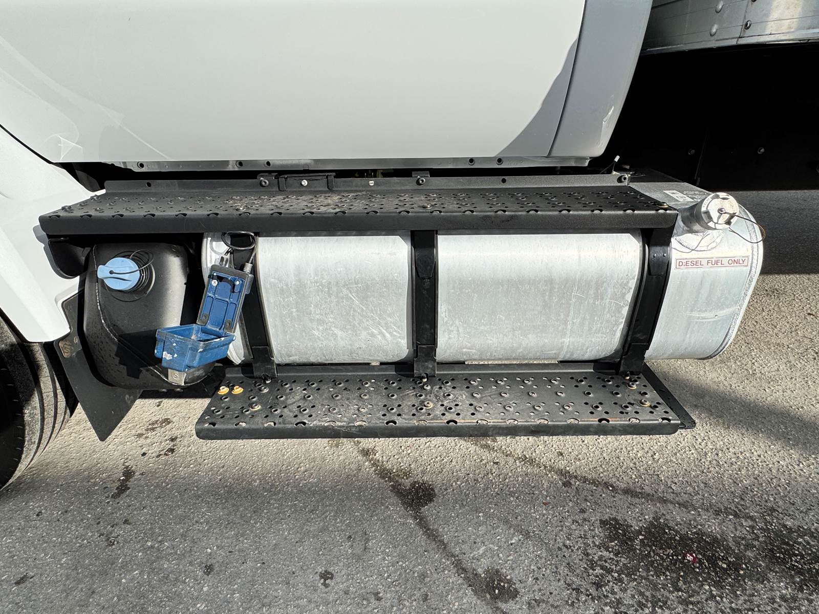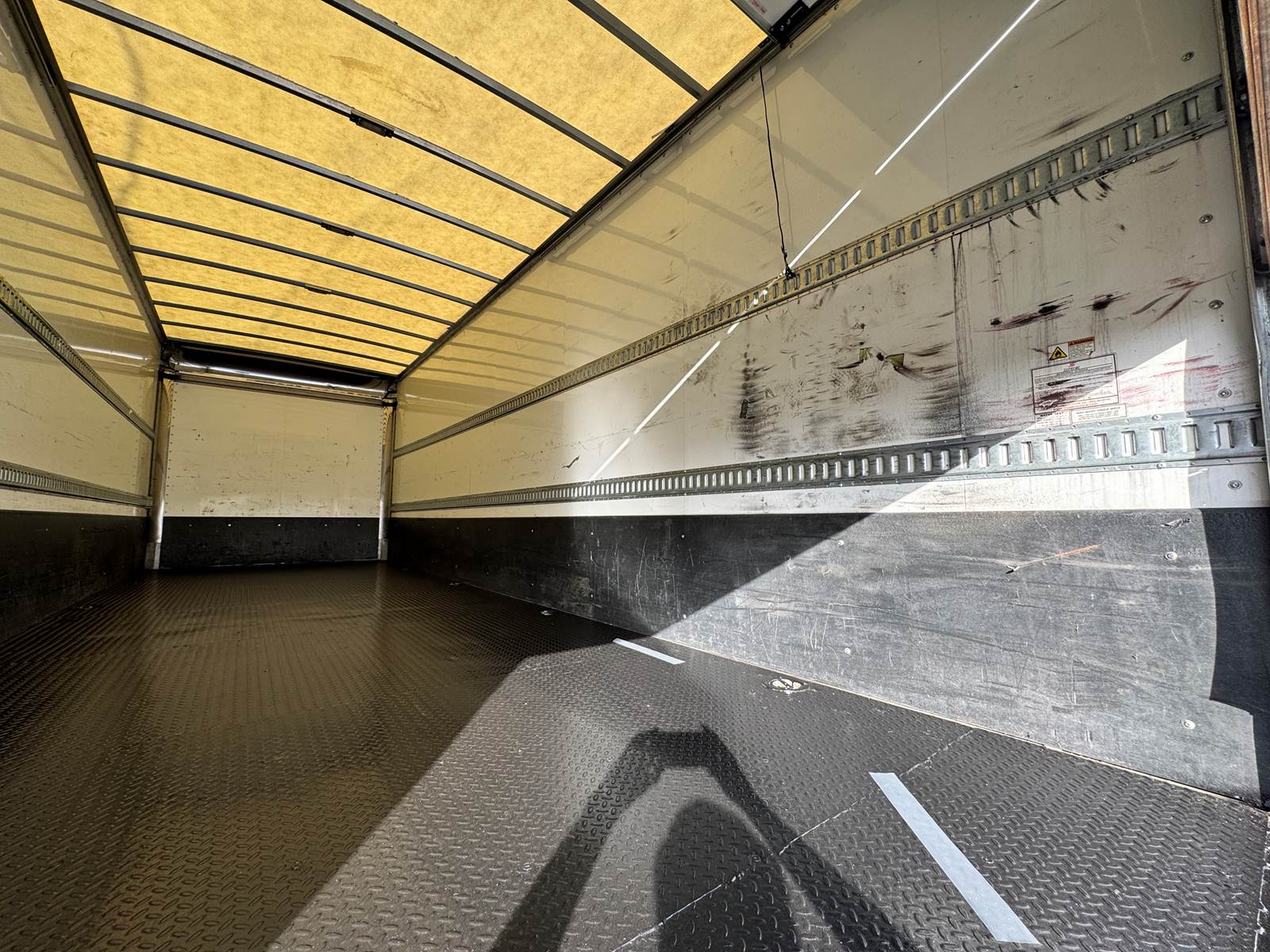 The truck is equipped with a 26-foot Supreme DFB26103102 dry van body featuring a roll-up rear door, hardwood floor, and a translucent aluminum roof that allows natural light into the cargo area. Measuring 102” wide and 103” high, it offers ample volume for freight, moving, or general delivery applications. The truck includes an air suspension system for superior ride comfort and stability, as well as dual aluminum fuel tanks totaling 70 gallons for extended range.