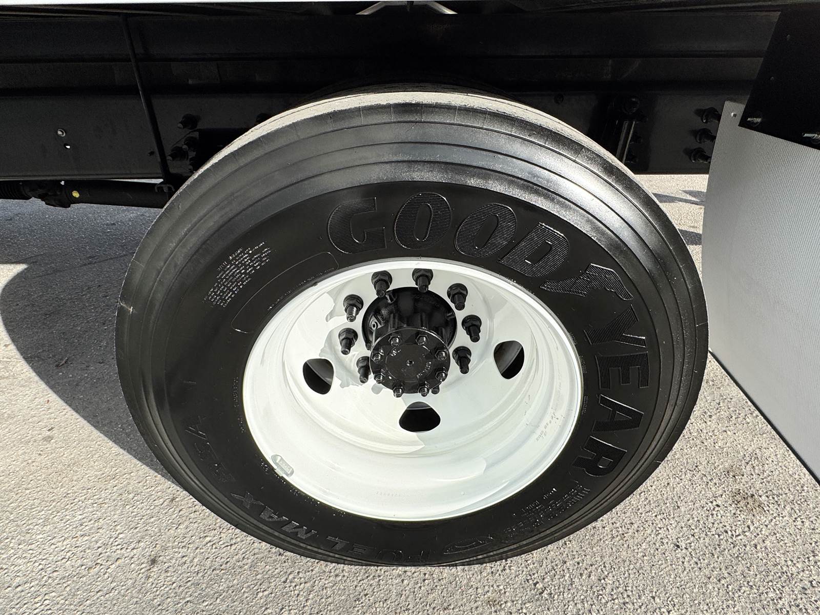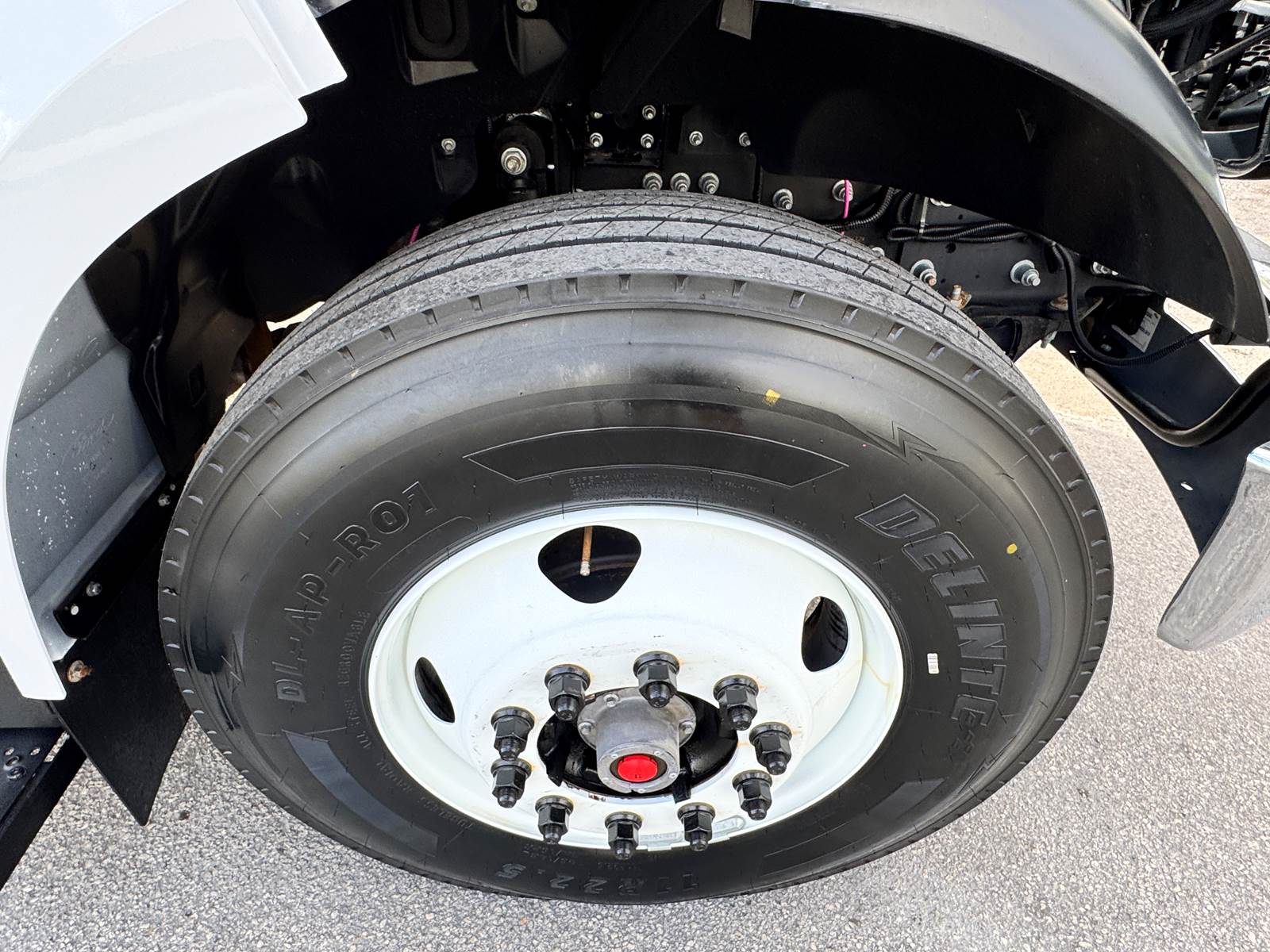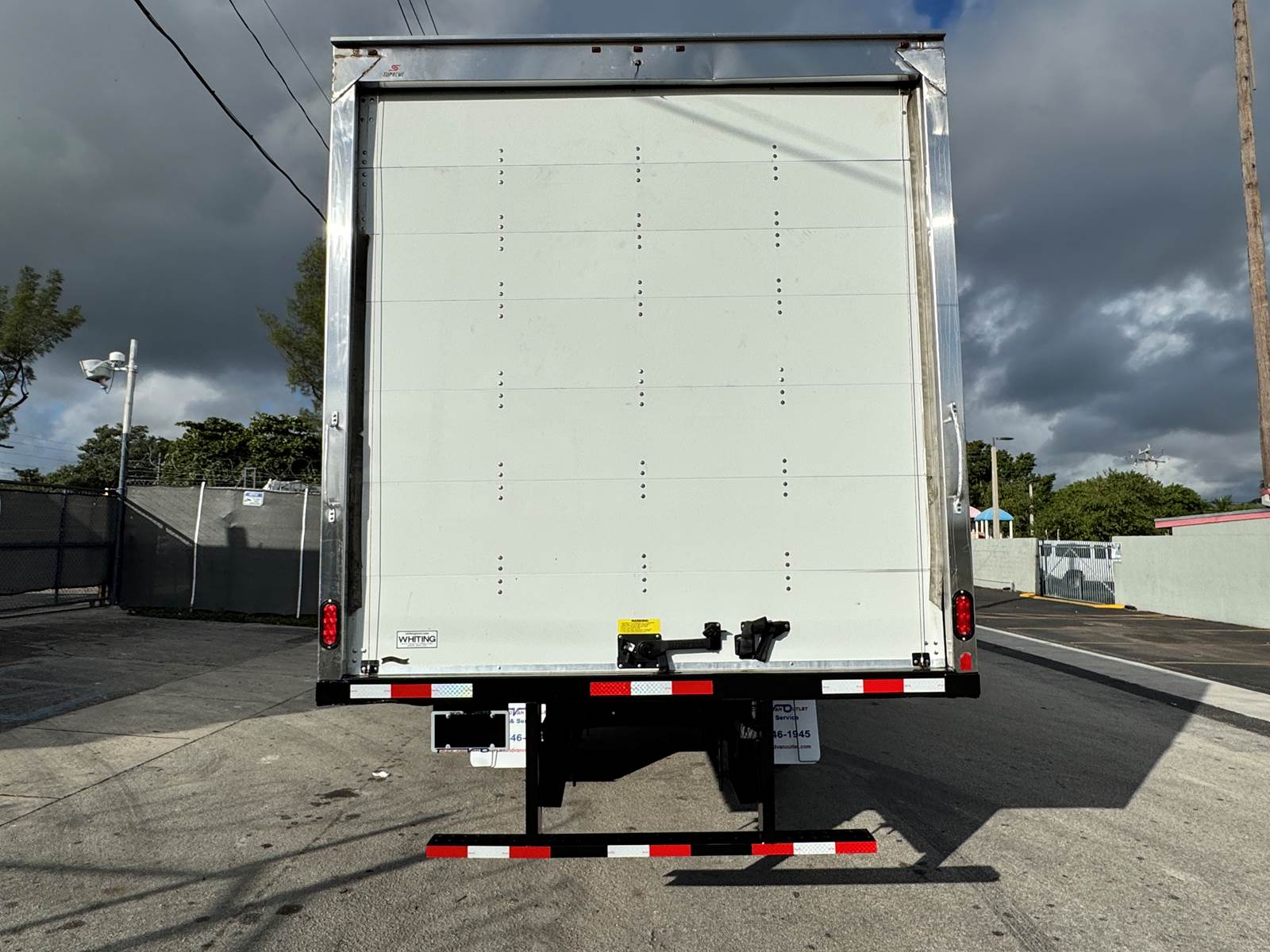 The truck is equipped with a 26-foot Supreme DFB26103102 dry van body featuring a roll-up rear door, hardwood floor, and a translucent aluminum roof that allows natural light into the cargo area. Measuring 102” wide and 103” high, it offers ample volume for freight, moving, or general delivery applications. The truck includes an air suspension system for superior ride comfort and stability, as well as dual aluminum fuel tanks totaling 70 gallons for extended range.