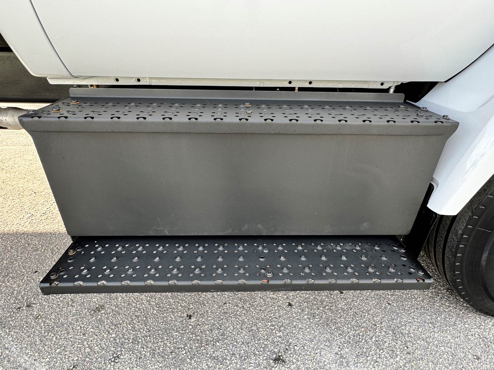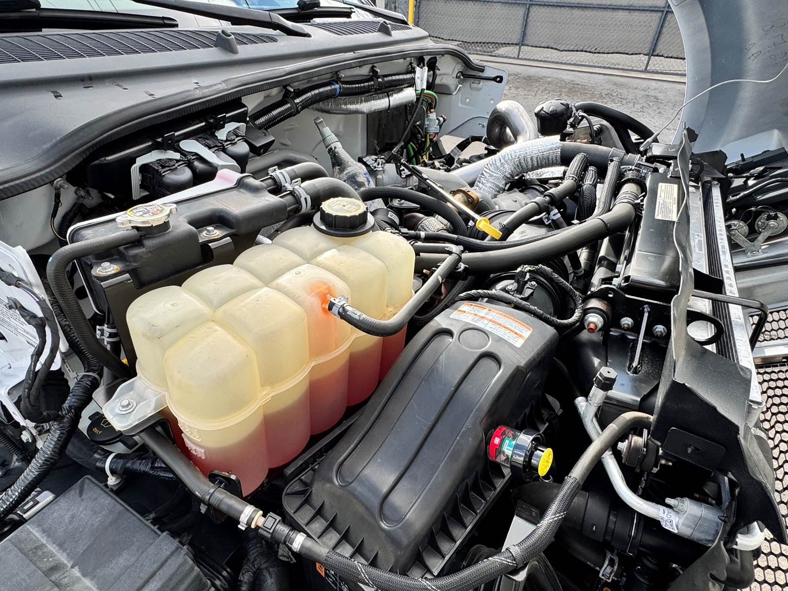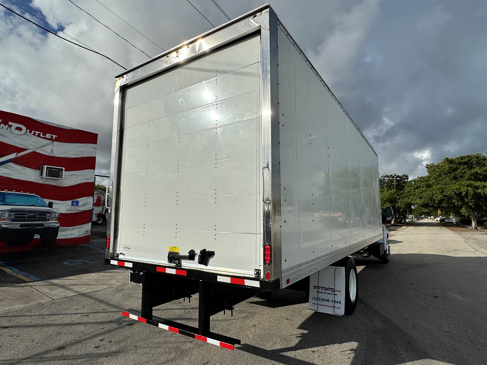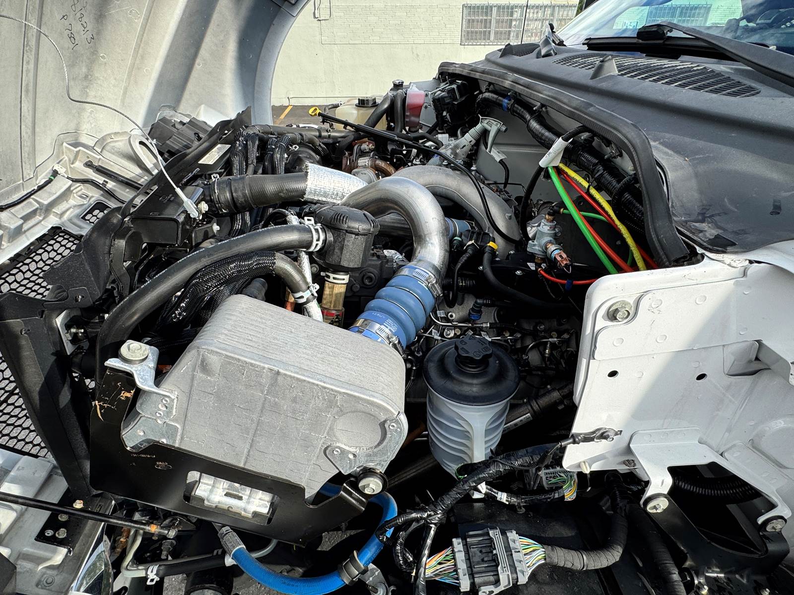 The truck is equipped with a 26-foot Supreme DFB26103102 dry van body featuring a roll-up rear door, hardwood floor, and a translucent aluminum roof that allows natural light into the cargo area. Measuring 102” wide and 103” high, it offers ample volume for freight, moving, or general delivery applications. The truck includes an air suspension system for superior ride comfort and stability, as well as dual aluminum fuel tanks totaling 70 gallons for extended range.