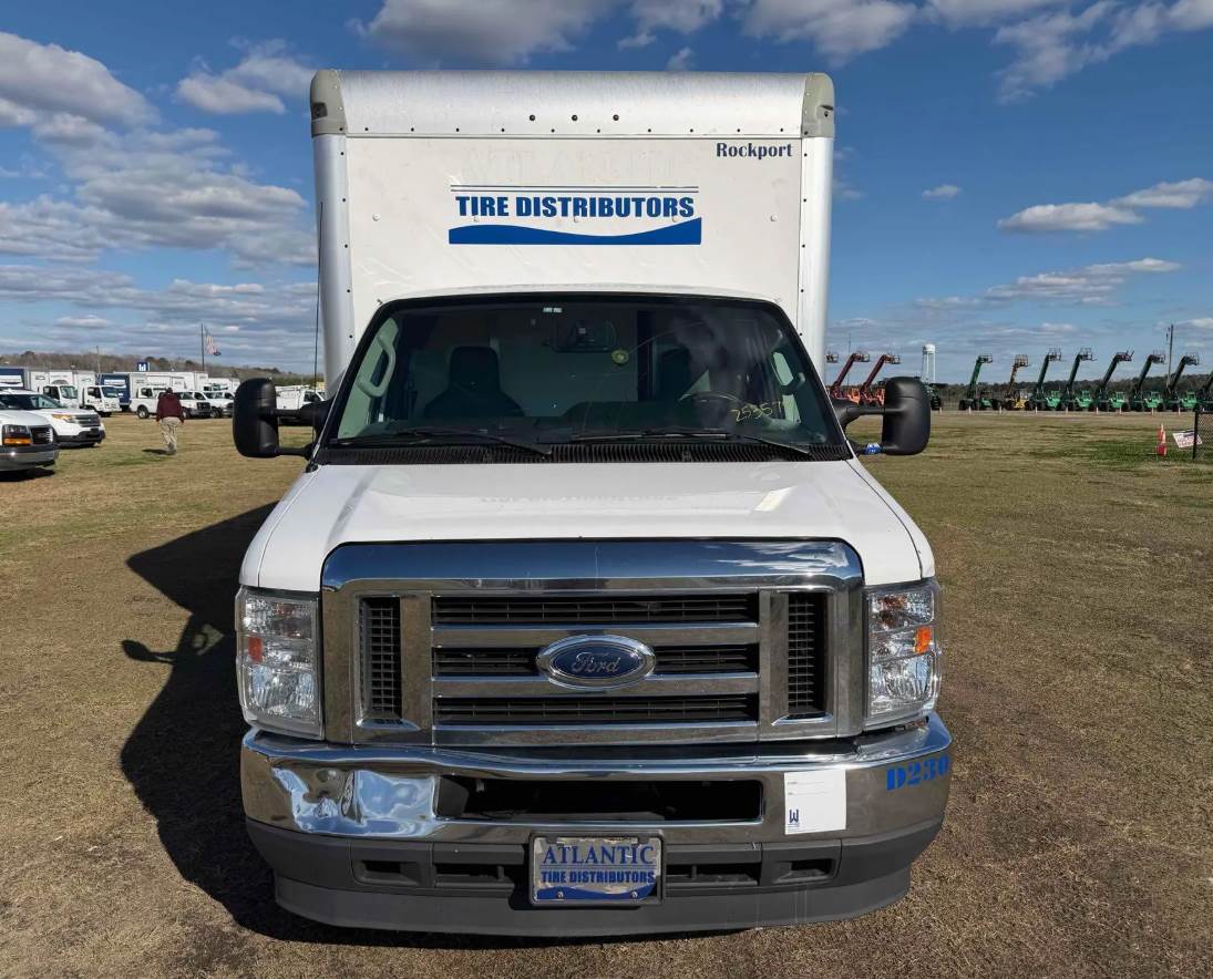 Offered for sale is a 2022 Ford E-350 Cutaway 16-foot box truck equipped with a Rockport aluminum parcel body, a reliable delivery platform designed for logistics companies, contractors, and commercial delivery operations requiring a durable and efficient cargo solution. This Class 3 light-duty box truck is powered by Ford’s robust 7.3L “Godzilla” V8 gasoline engine producing 300 horsepower and paired with a Ford 6-speed automatic transmission and 4x2 drivetrain. The naturally aspirated 8-cylinder engine operates on gasoline with a 40-gallon fuel capacity. The truck rides on Ford spring suspension with hydraulic brakes and utilizes a single rear axle configuration. It carries a 12,500 lb GVWR supported by a 4,200 lb front axle rating and an 8,500 lb rear axle rating along with a 176-inch wheelbase and steel wheels.