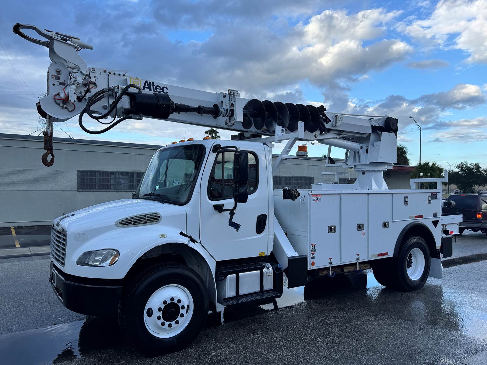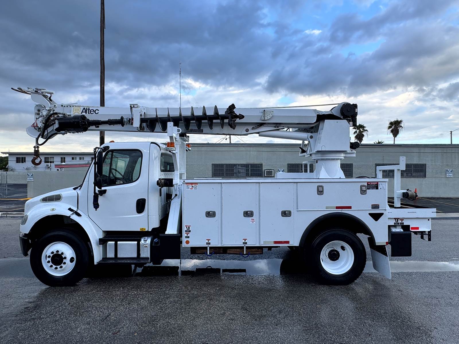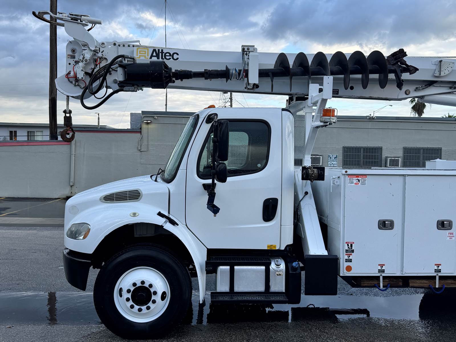 For sale is a well-maintained 2019 Freightliner M2 106 equipped with an Altec DC47-TR digger derrick. This heavy-duty unit is powered by a Cummins ISB 6.7L engine delivering 250 horsepower, paired with an Allison 3500RDS automatic 6-speed transmission. Built with durability and performance in mind, it offers a 33,000 lb GVWR and a 190” wheelbase, making it a reliable workhorse for utility, construction, and line service operations.