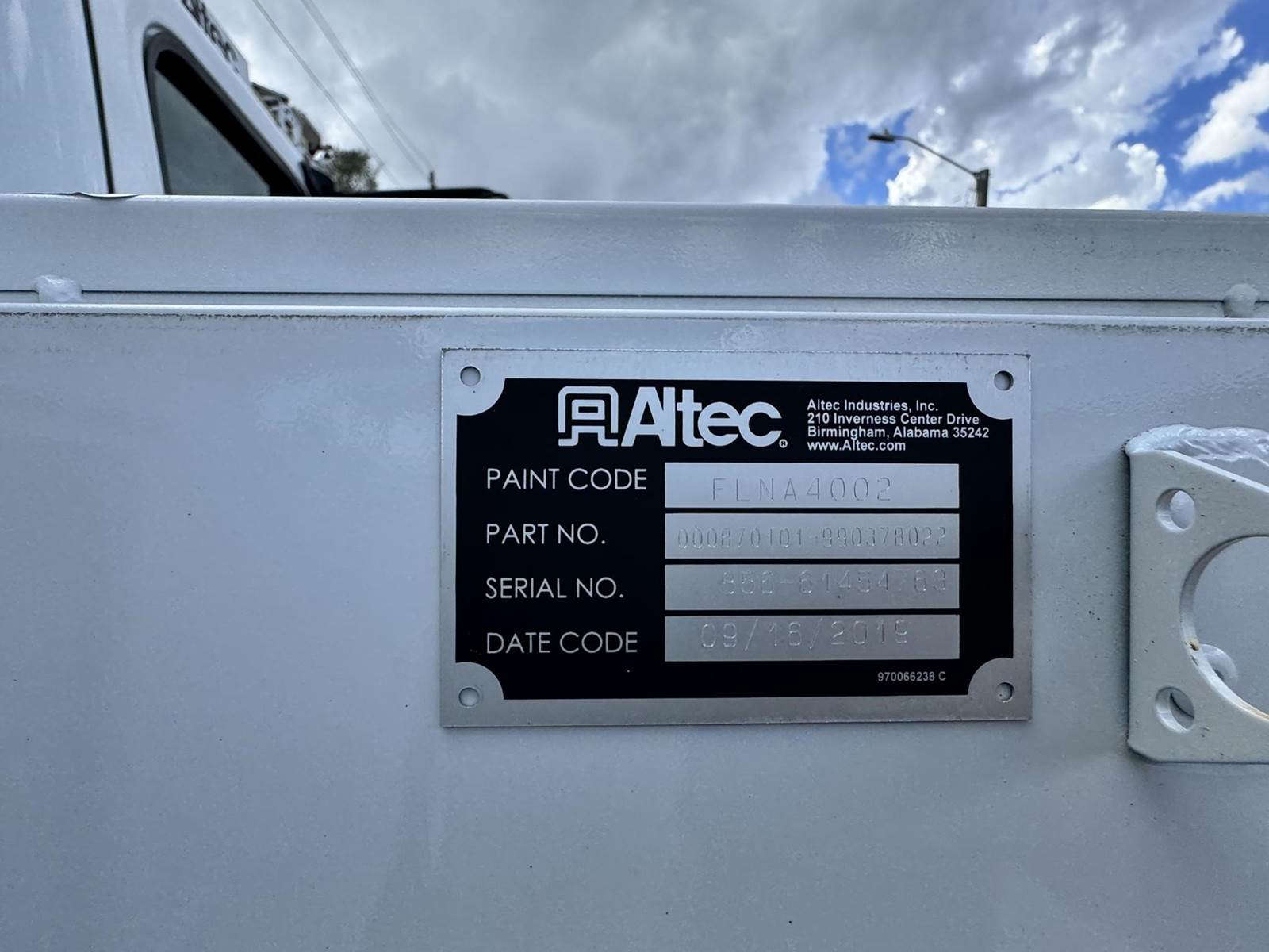 The 2020 Freightliner M2 106 is a heavy-duty utility truck equipped with an Altec DM47B-TR digger derrick, built for line construction, pole setting, and demanding service applications. It is powered by a Cummins ISB 6.7L diesel engine delivering 250 horsepower, paired with an Allison 3500RDS 6-speed automatic transmission for dependable performance. With a GVWR of 33,000 lbs, a 190-inch wheelbase, and axle ratings of 13,220 lbs in the front and 21,000 lbs in the rear, the truck provides excellent load balance and stability. Spring suspension and a 50-gallon aluminum fuel tank further enhance durability and jobsite efficiency