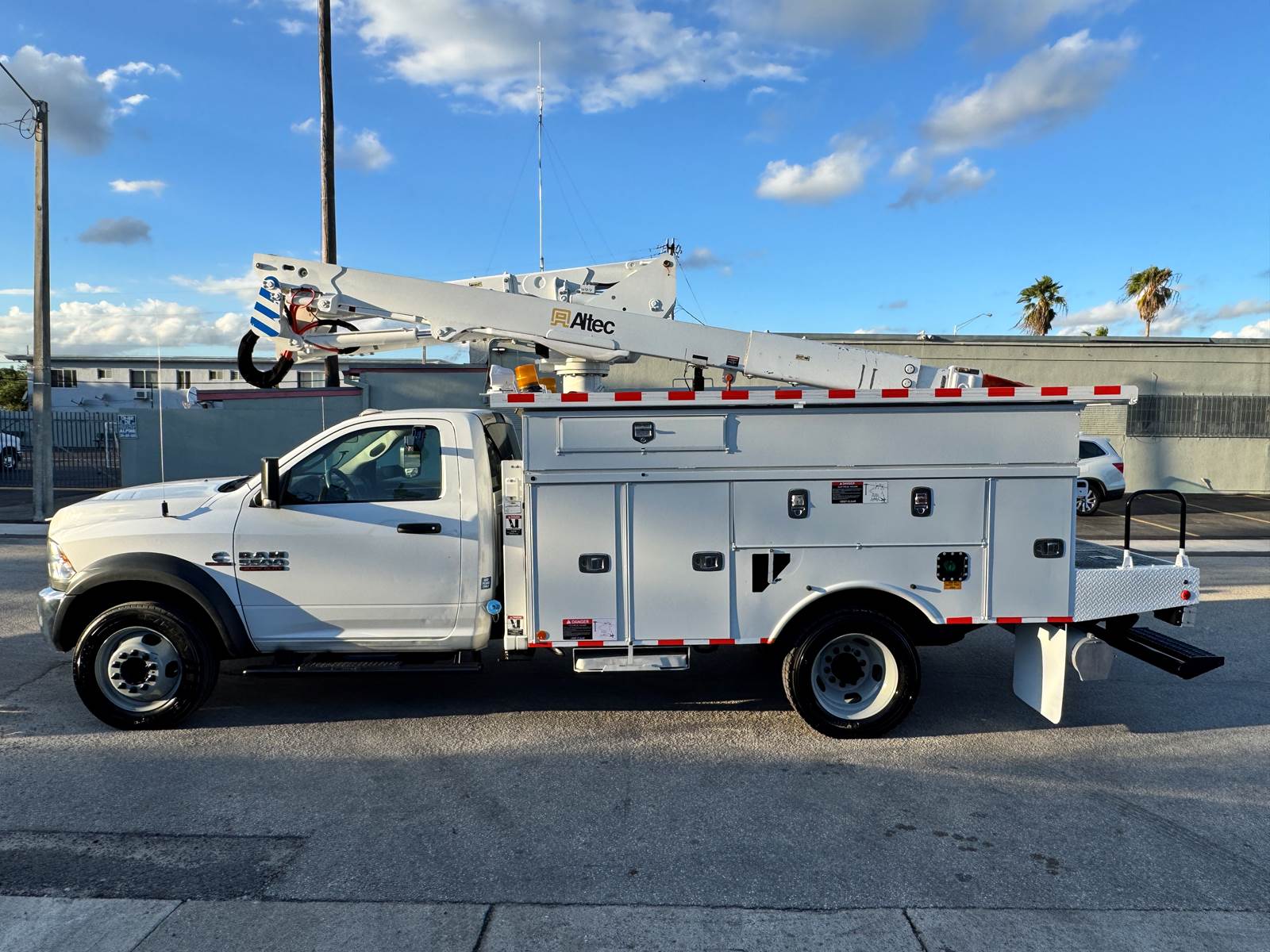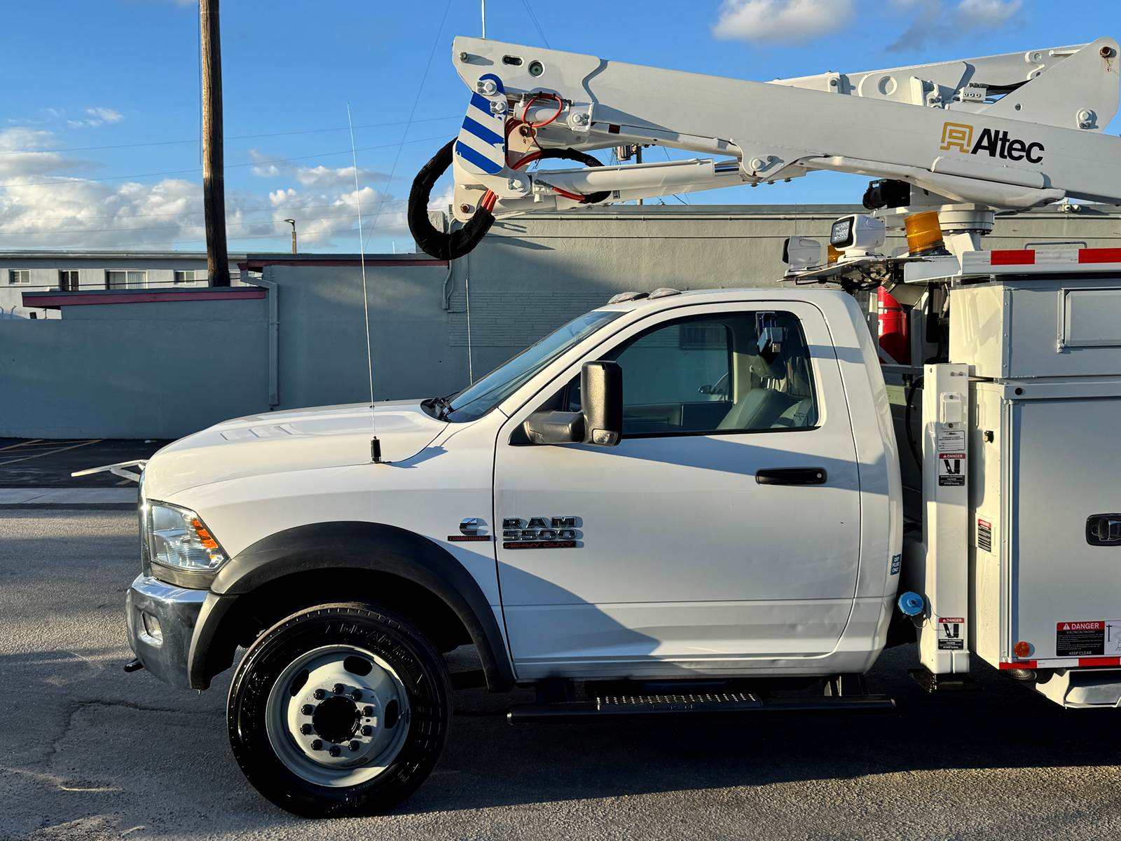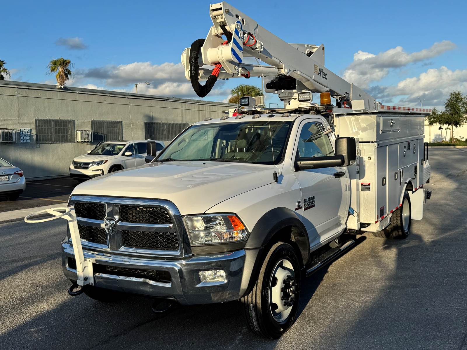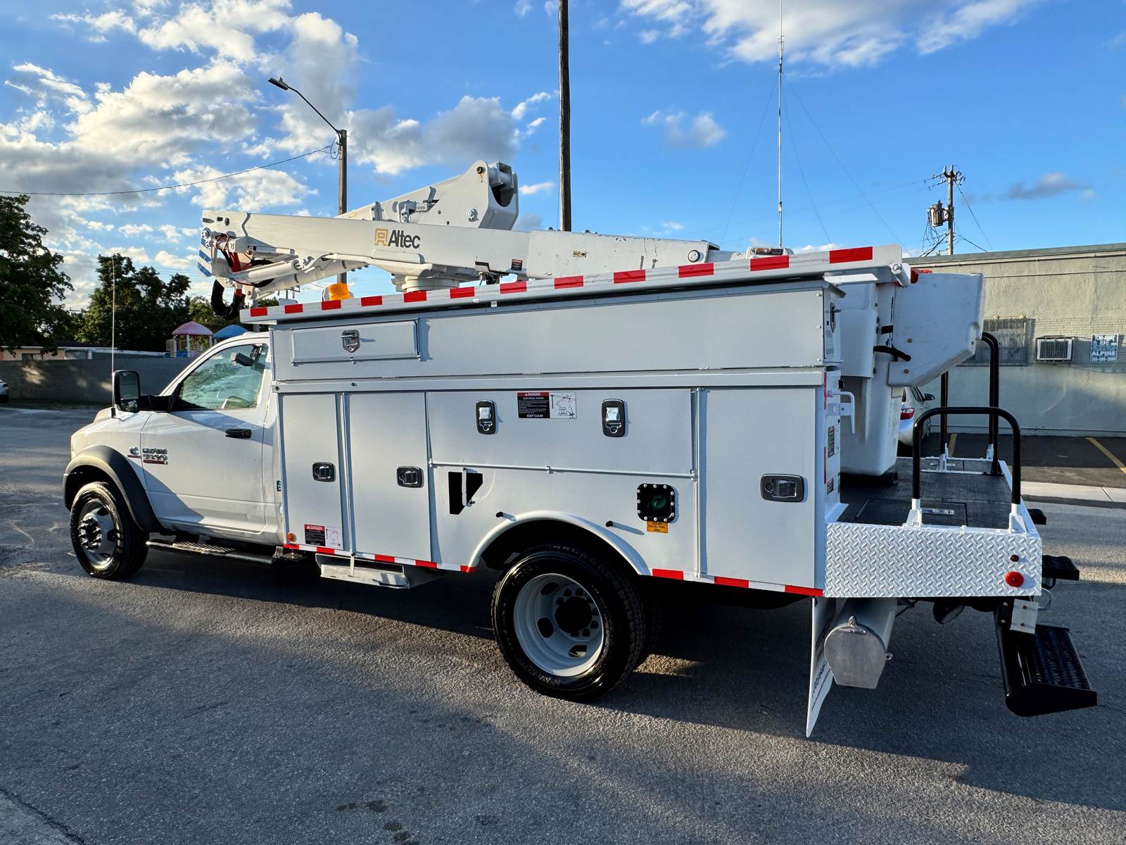 For sale is a 2018 RAM 5500 fitted with an Altec AT40G articulating and telescopic boom, designed for utility, forestry, and line work applications. This medium-duty truck is powered by a Cummins ISB 6.7L engine producing 325 horsepower, paired with an Aisin 6-speed automatic transmission. With a 19,500 lb GVWR and a 168.5” wheelbase, it provides the balance of strength, maneuverability, and reliability to handle demanding jobsite conditions.