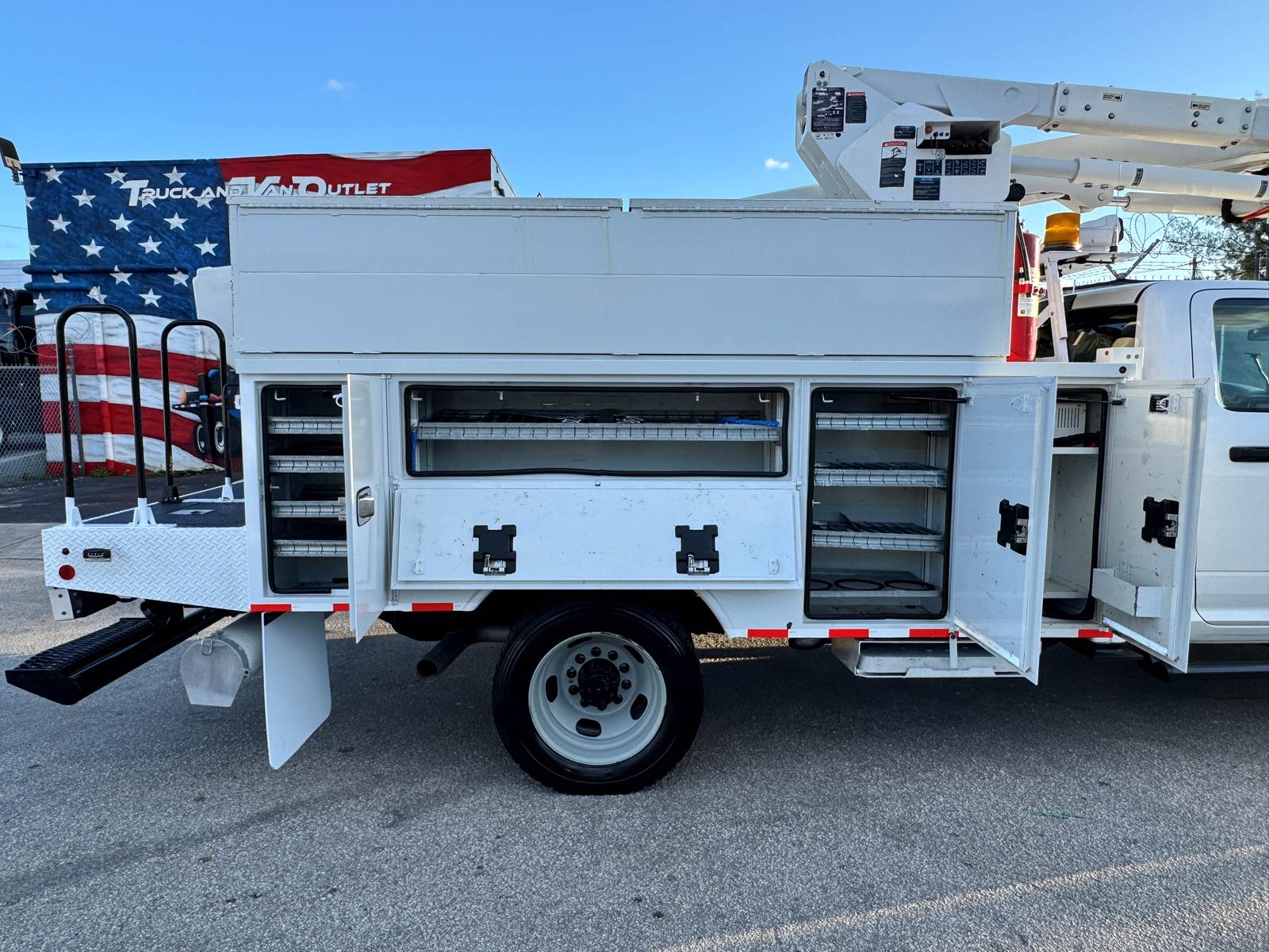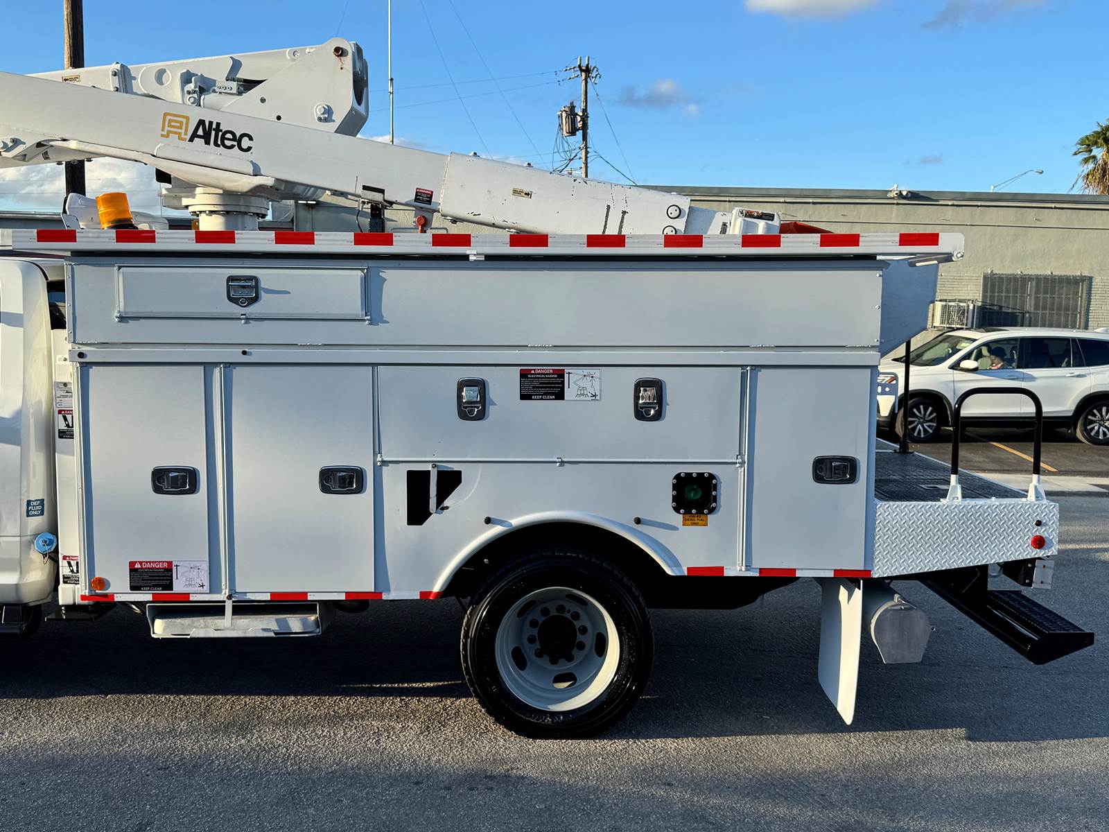 This unit is a single-owner truck with a clean CARFAX, documented fleet maintenance, and an exceptionally clean condition inside and out. Finished in white with a gray interior, it represents a dependable, work-ready option for utility and service companies looking for a high-performance aerial unit.
